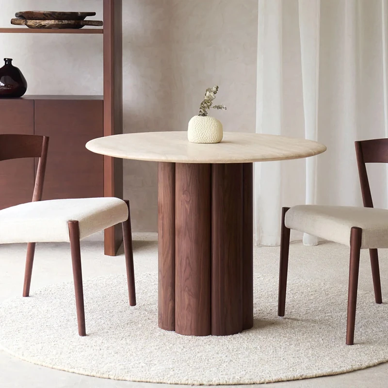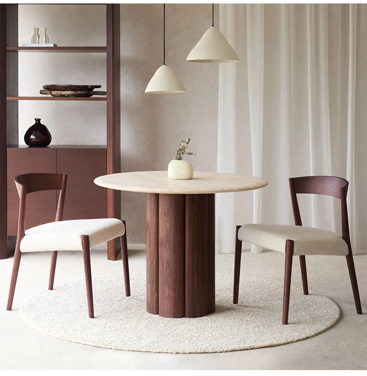 Designer Round Dining Table with Natural Stone Top, Creative Small Space Solution, Solid Wood Base, French Wabi-Sabi Style – Perfect for Contemporary Dining Rooms