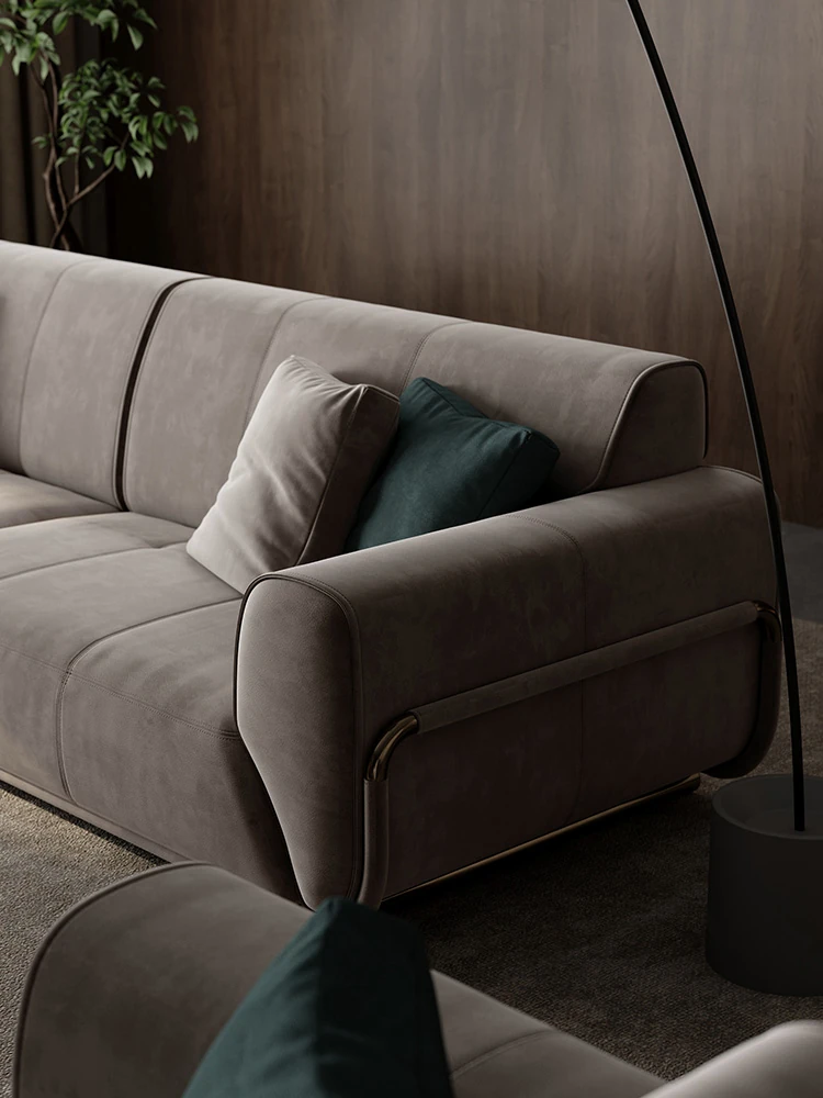 Italian Elegant Leather Sofa for Modern Living Rooms - Luxurious Minimalist Design for Villas and Spacious Apartments - Perfect Blend of Style and Comfort