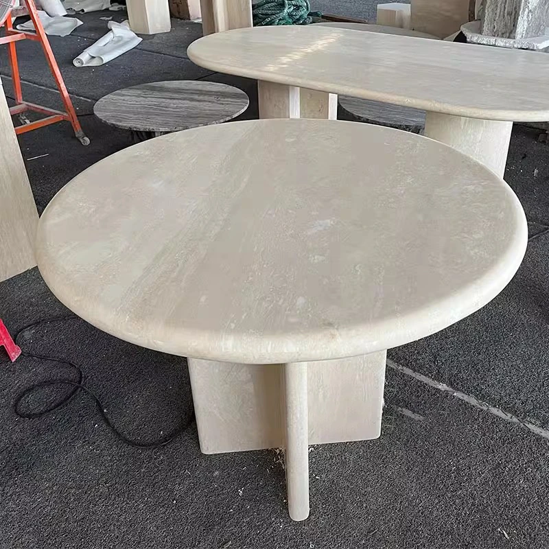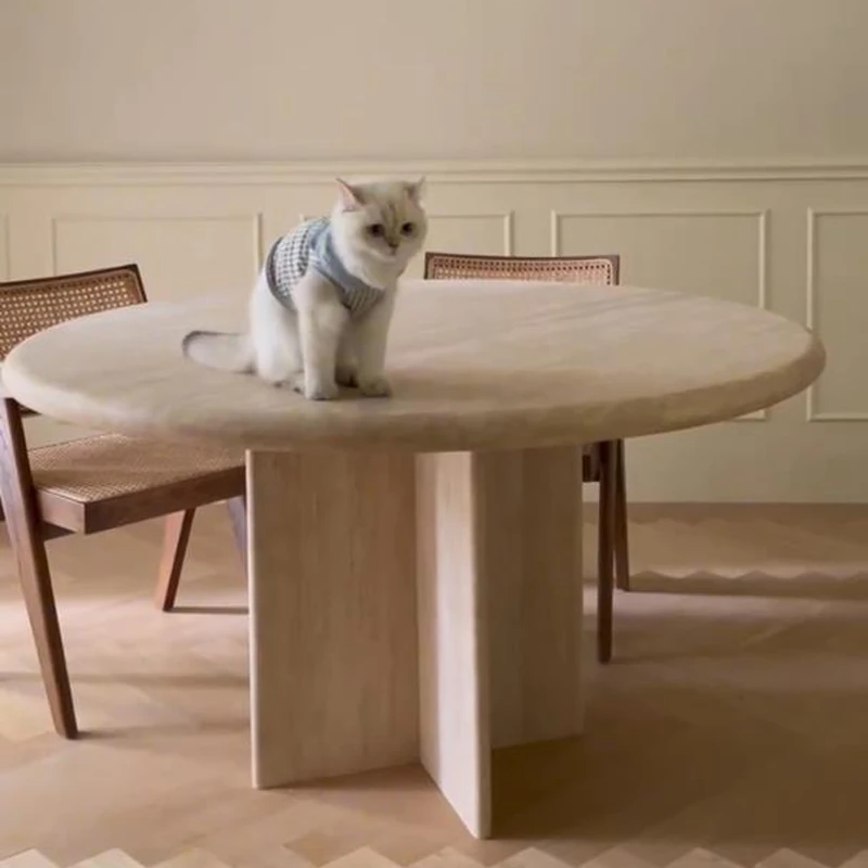 Italian Natural Stone Dining Table - Designer Coffee Shop Luxury Round Table in Cream Wabi-Sabi Style for Elegant Dining Experience