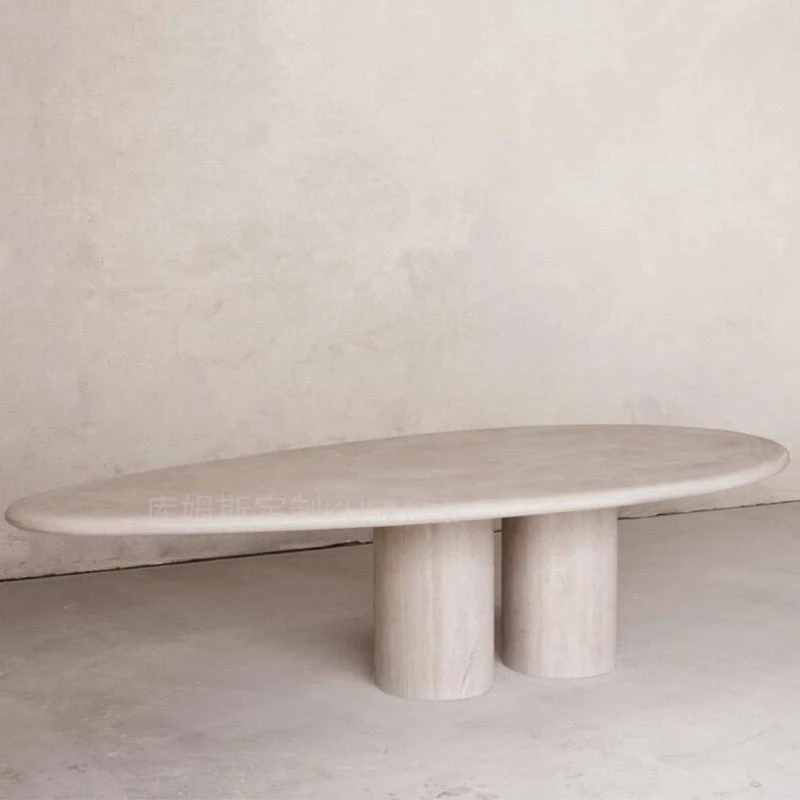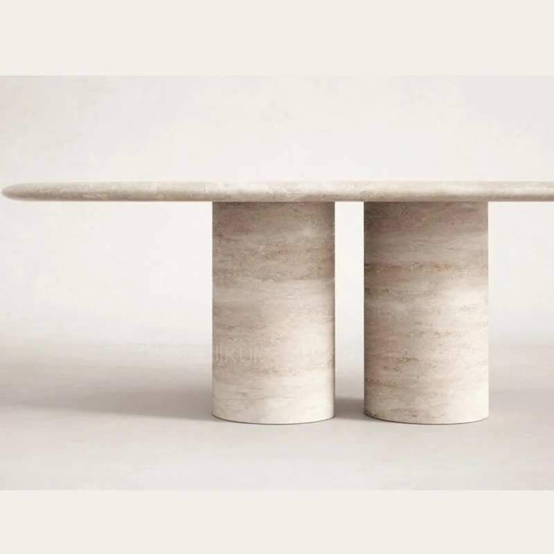 Kooms Elegant Natural Stone Round Dining Table - Italian Marble Wabi-Sabi Style for Small Spaces