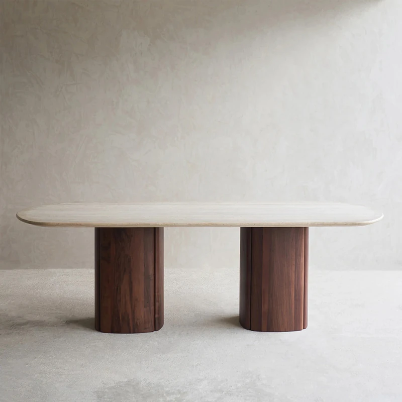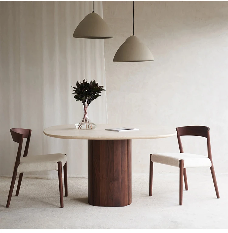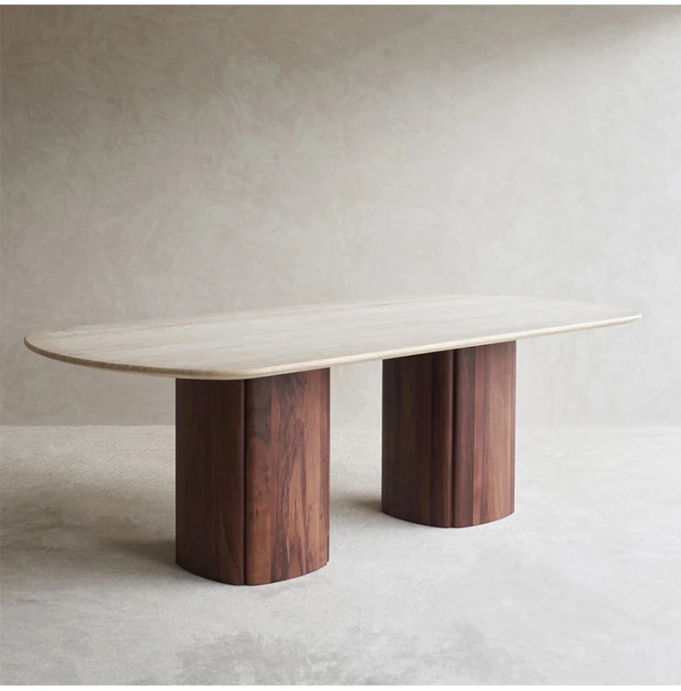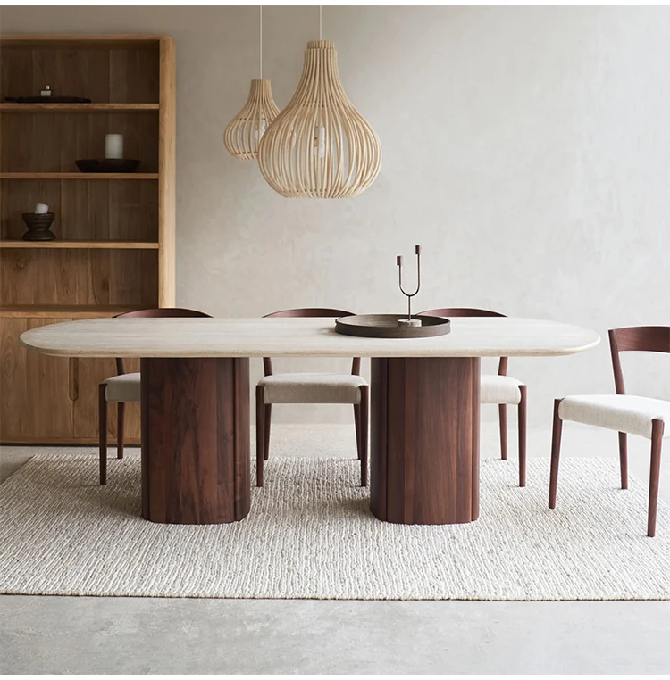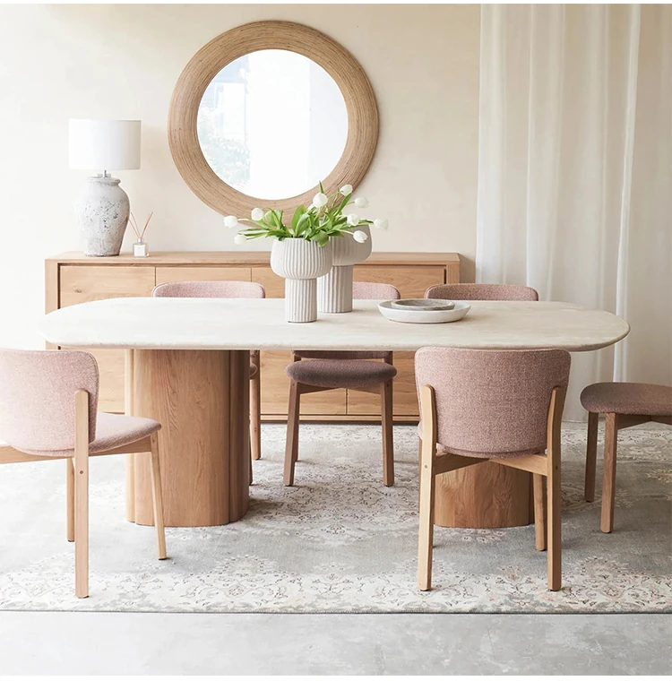 Natural Stone Oval Dining Table for Villas - Elegant French Wabi-Sabi Style, Perfect for Luxurious Dining Experiences in Spacious Homes.