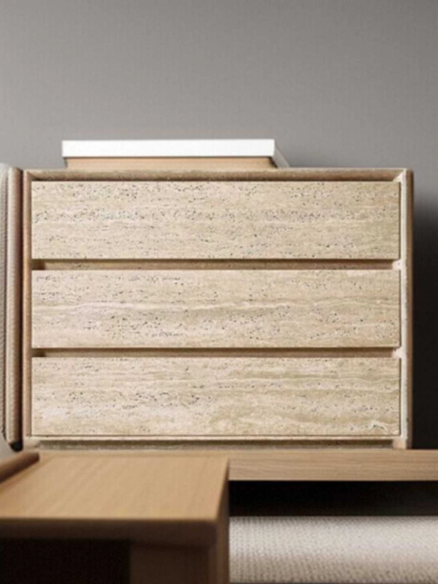 Nordic Natural Stone Drawer Nightstand – Creative Marble Side Table for Living Room and Bedroom, Perfect for Sofa or Corner Use