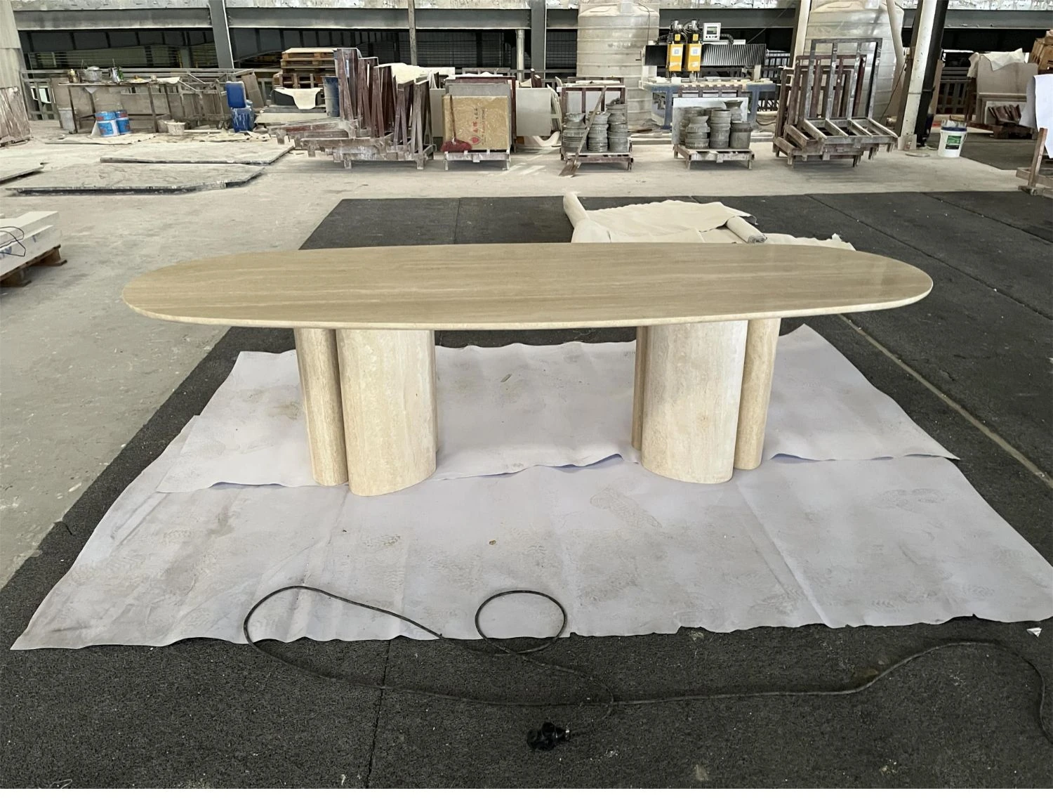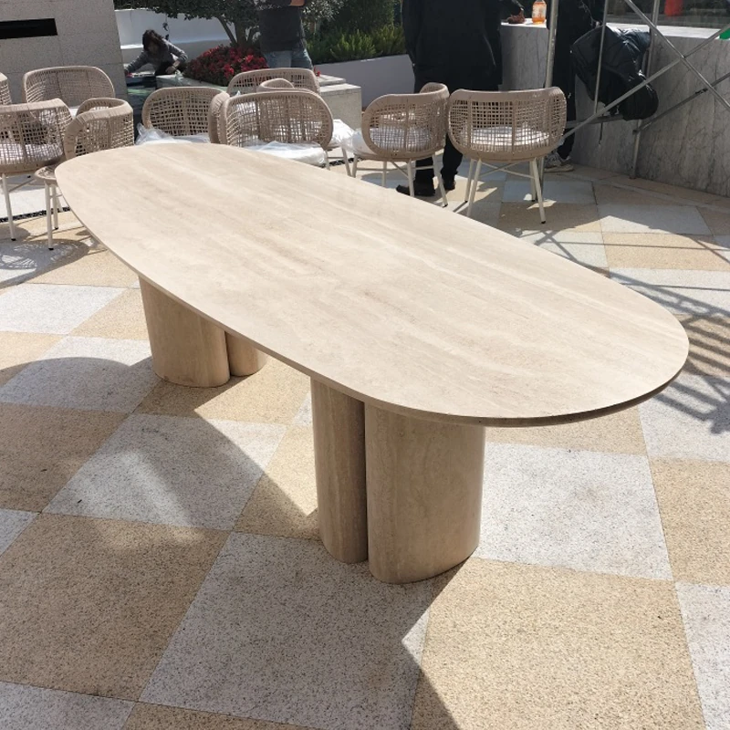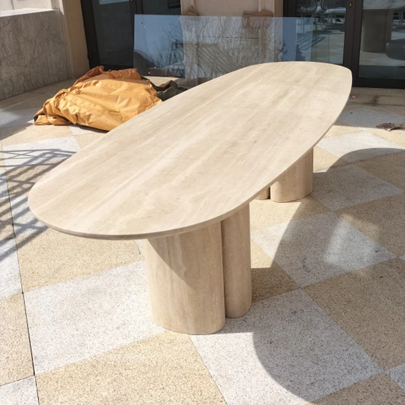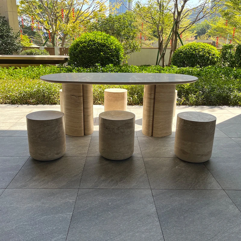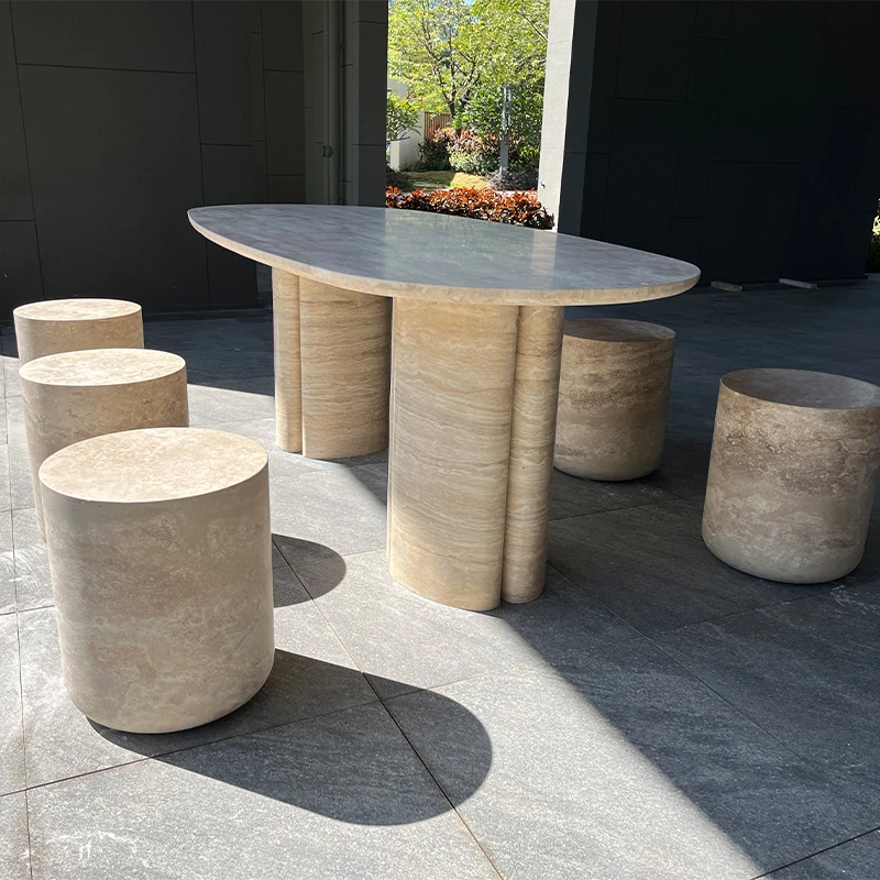"Rustic Elegance: Wabi-Sabi Inspired Natural Stone Marble Dining Table for Long Meals – Perfect for Modern Villas and Sample Homes, Ideal for Upscale Restaurants"