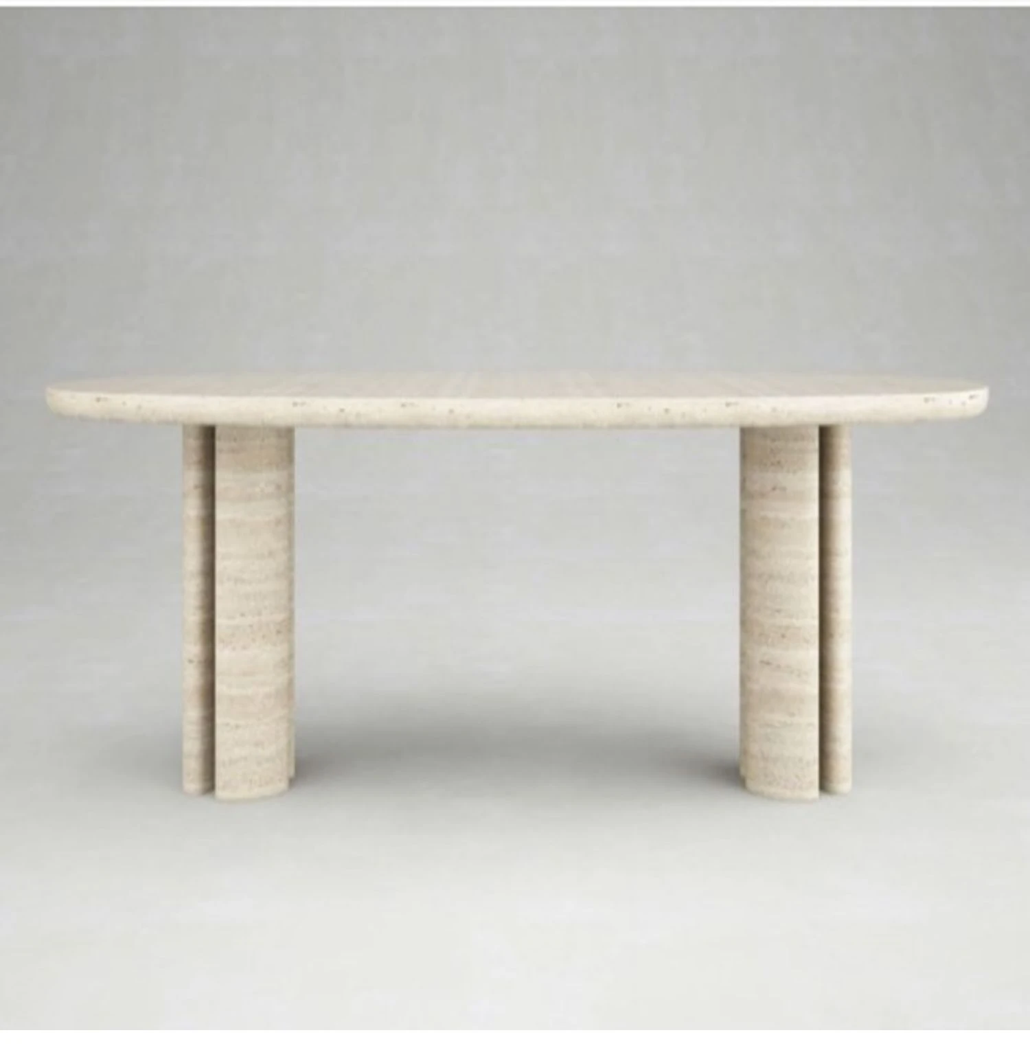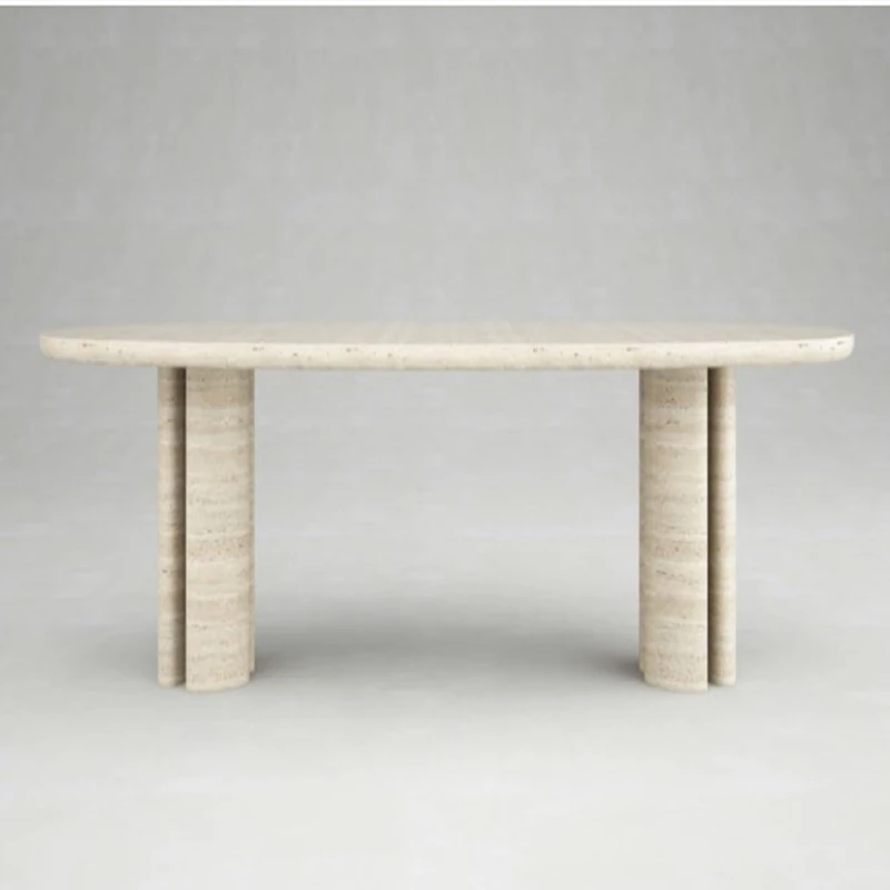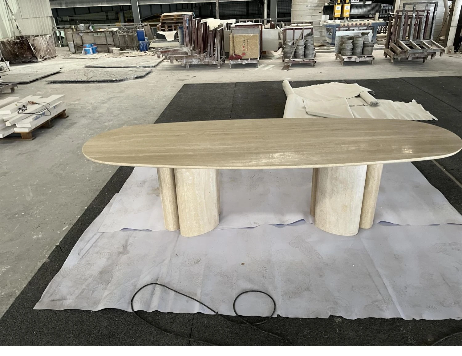 "Rustic Elegance: Wabi-Sabi Inspired Natural Stone Marble Dining Table for Long Meals – Perfect for Modern Villas and Sample Homes, Ideal for Upscale Restaurants"