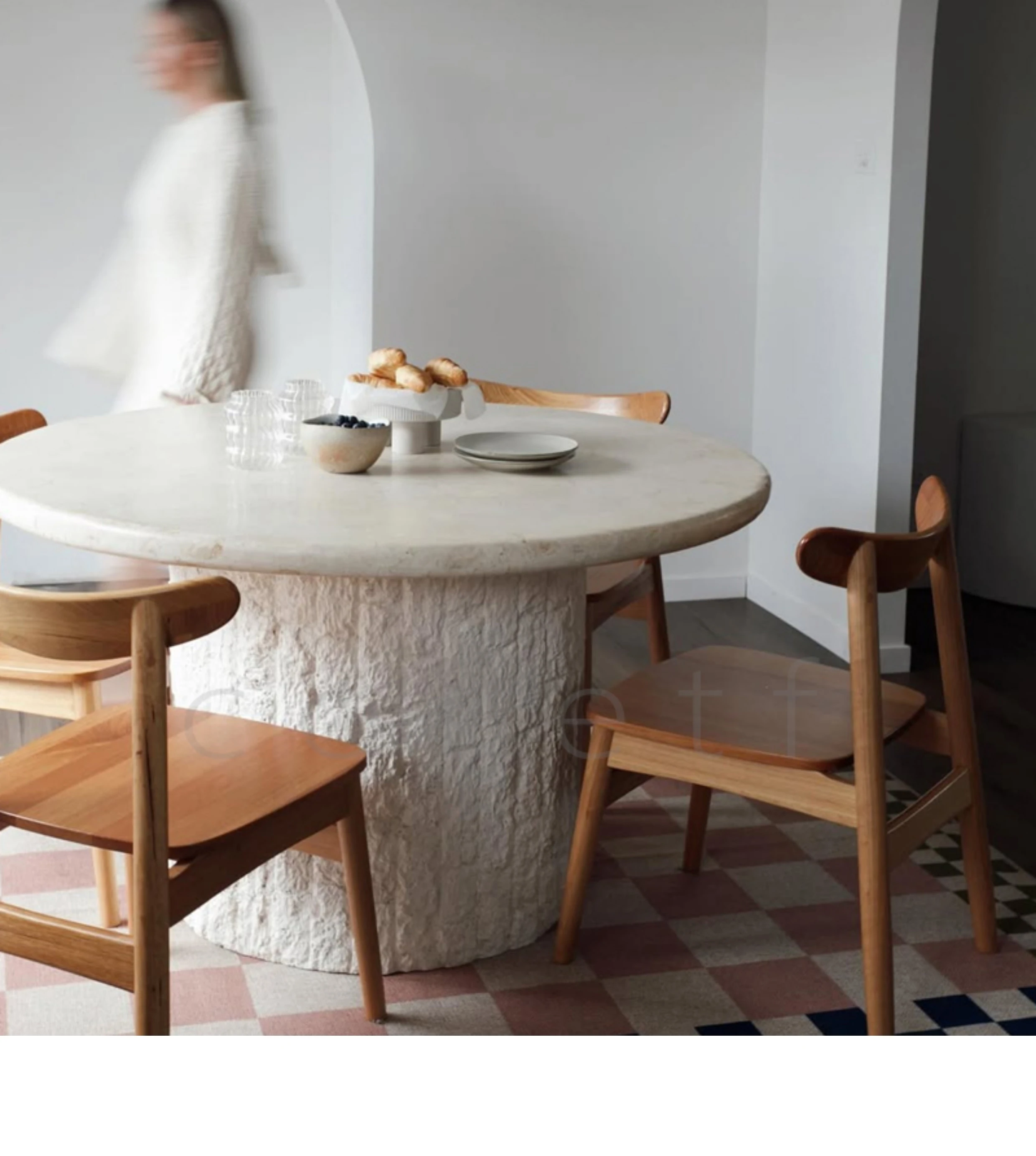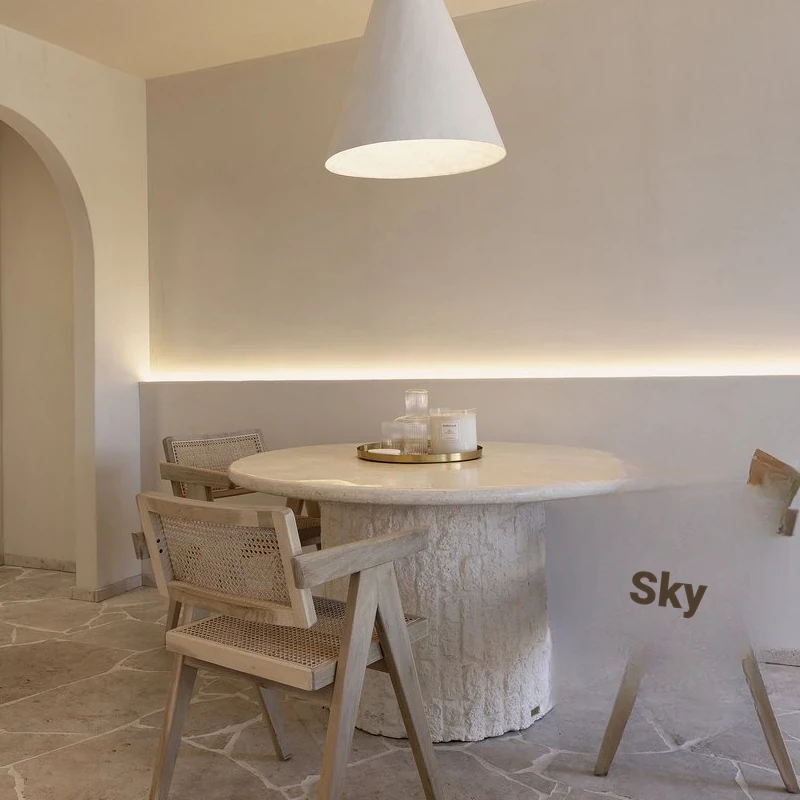 Wabi-Sabi Style Natural Roman Cave Stone Marble Round Dining Table - Designer French Large Table for Home and Villa Elegance