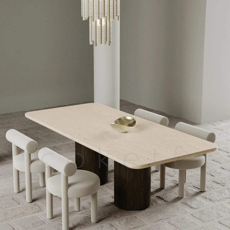 Bova Palmaイタリアンミニマリスト大理石ダイニングテーブル - ヴィラ風デザインの長方形テーブルで、洗練された雰囲気を演出。おしゃれなリビングにぴったりな一品。