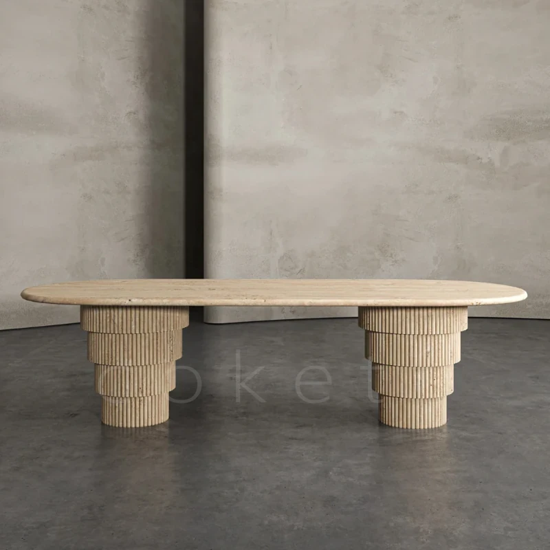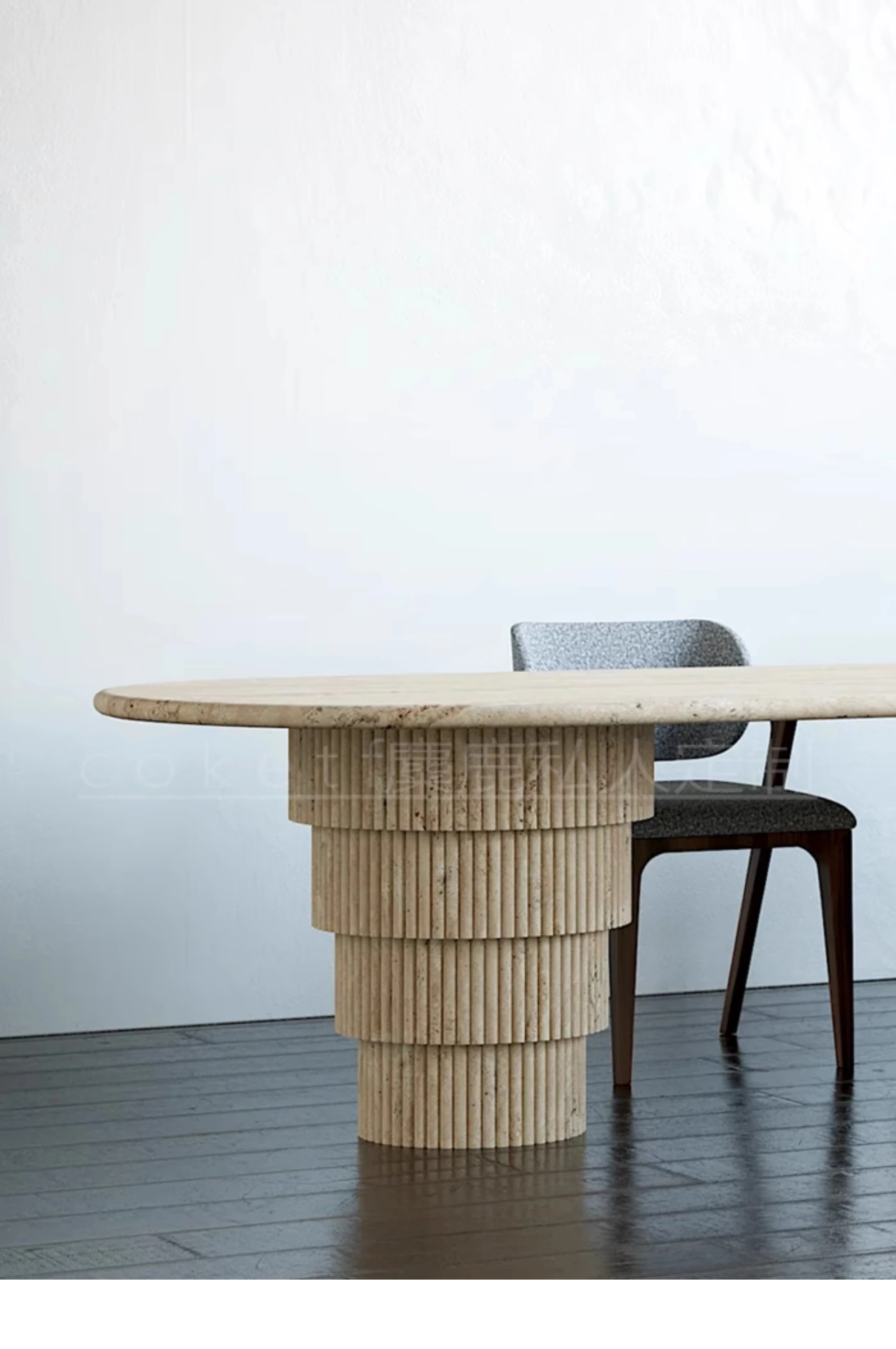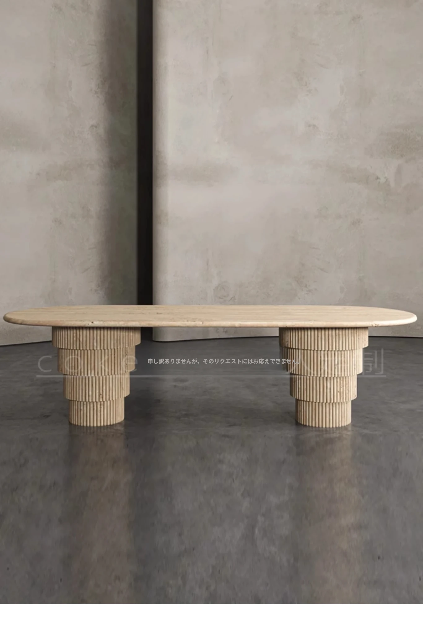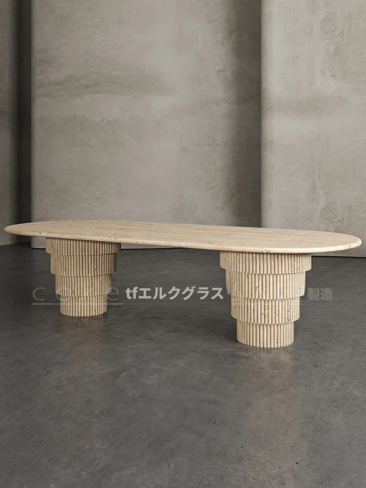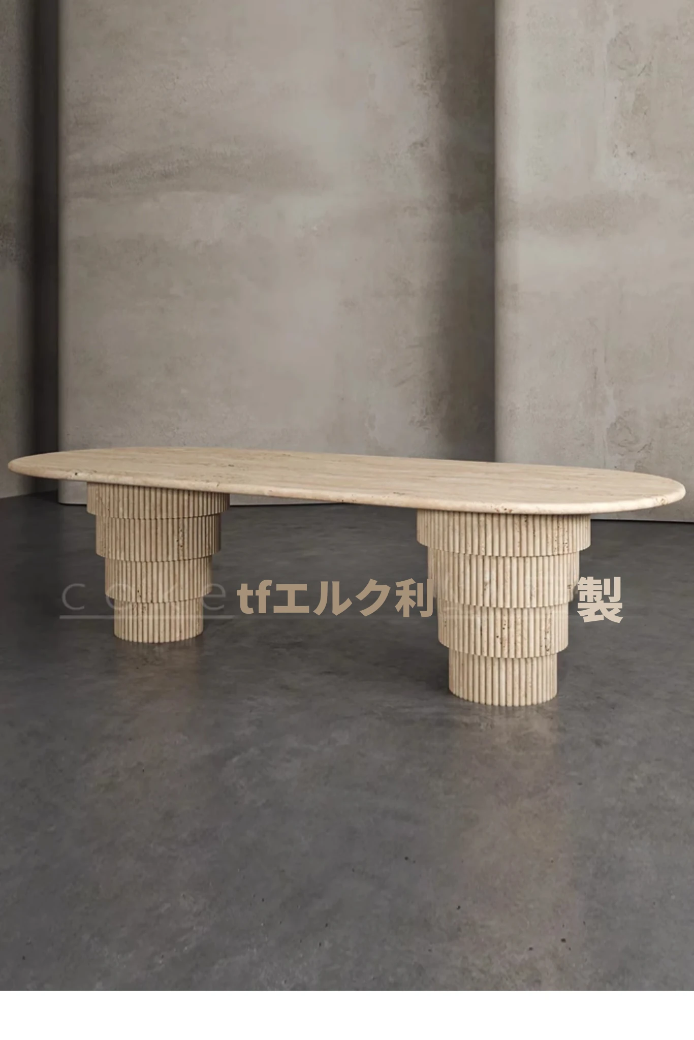 COKETF イタリア製天然洞石ダイニングテーブル デザイナーズモデル 大型長方形テーブル ホテルや別荘に最適なラグジュアリーなインテリアアイテム