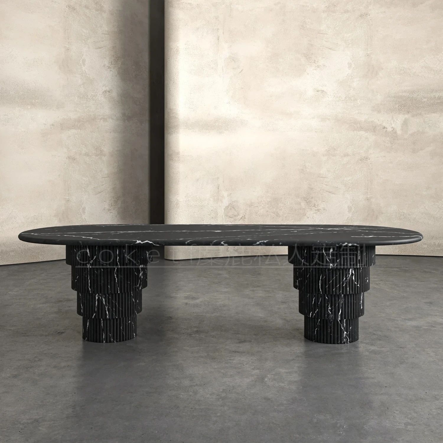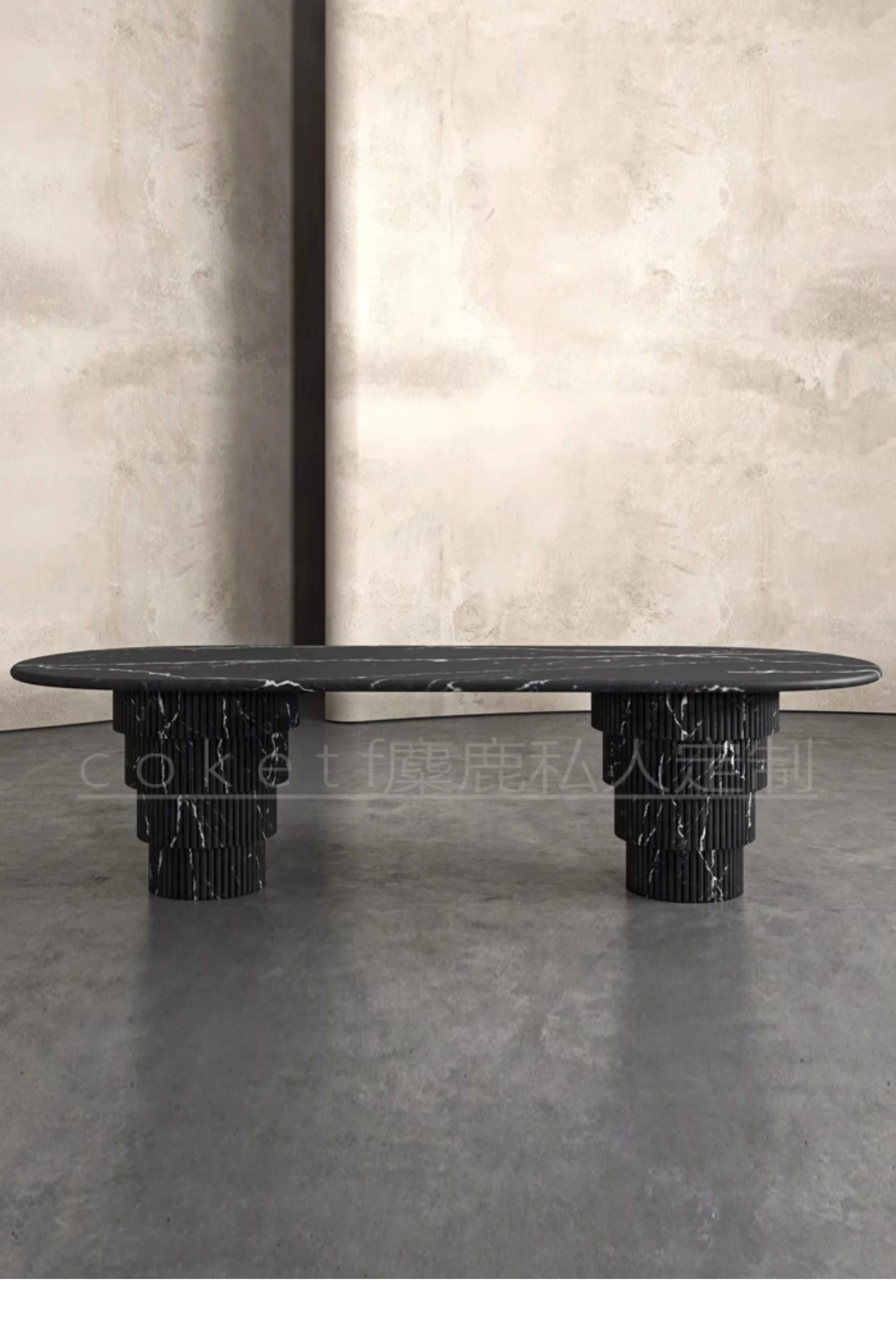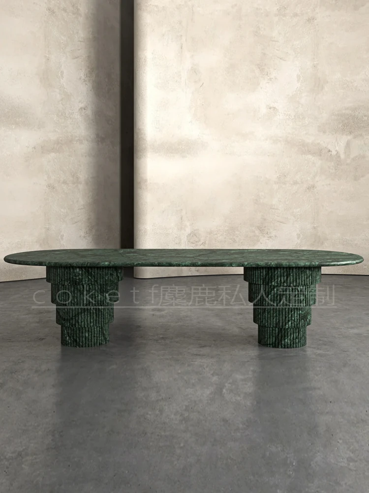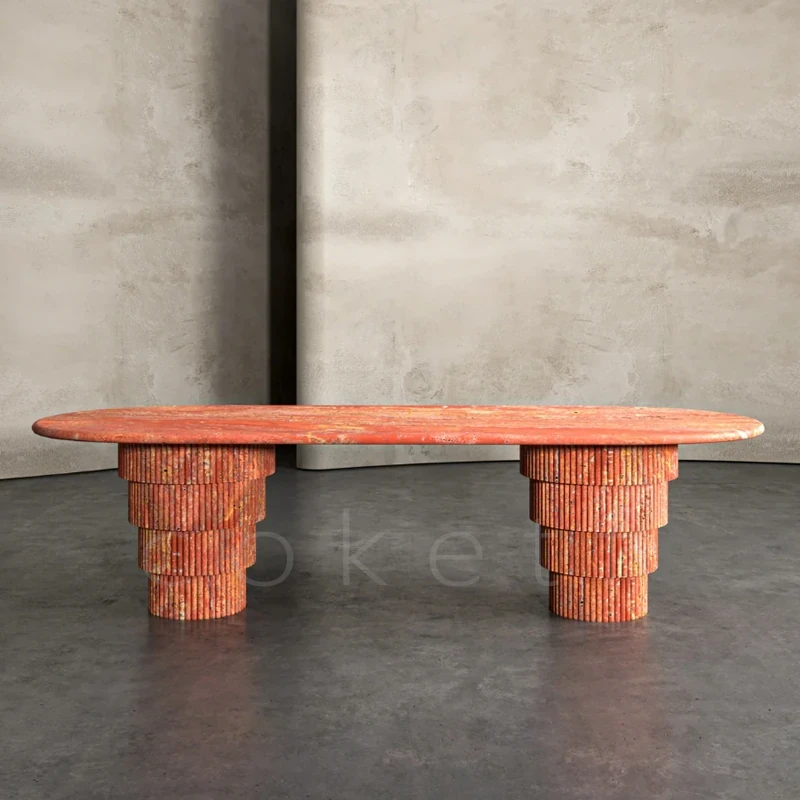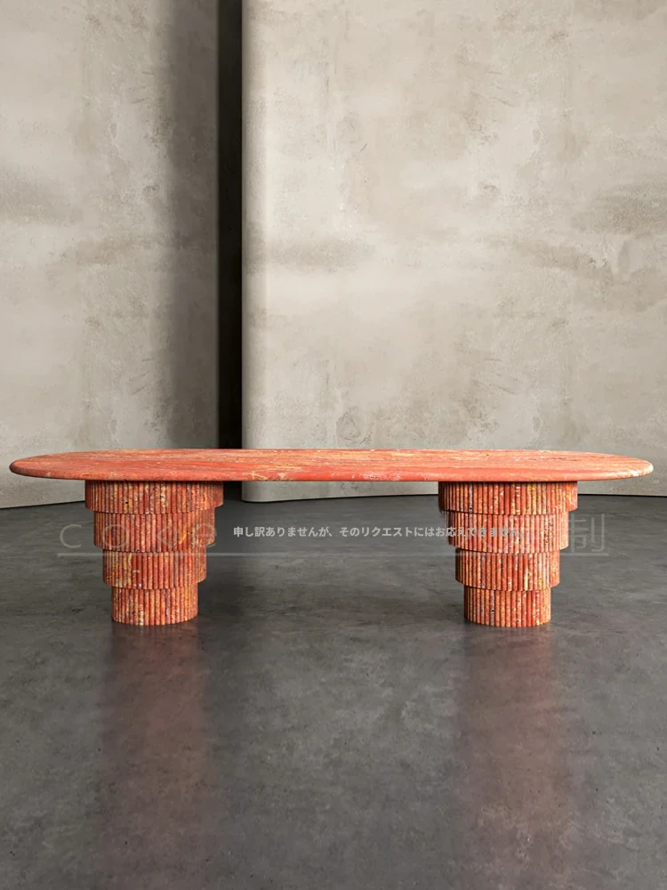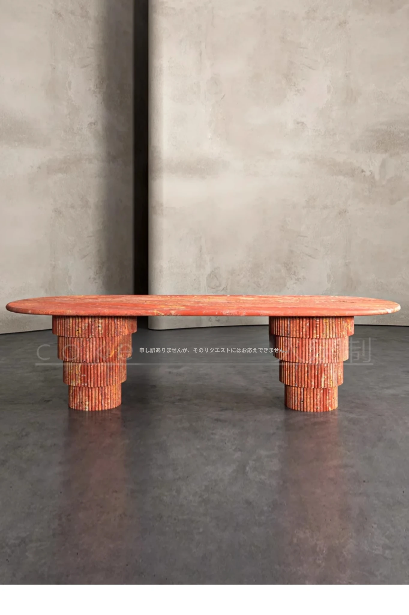 COKETF イタリア製天然洞石ダイニングテーブル デザイナーズモデル 大型長方形テーブル ホテルや別荘に最適なラグジュアリーなインテリアアイテム