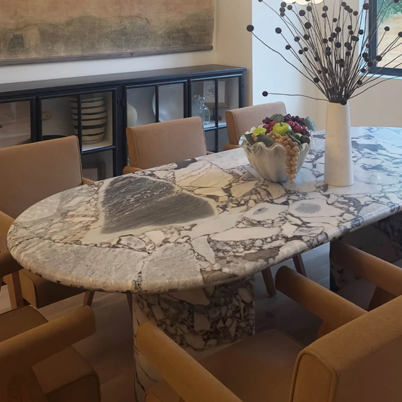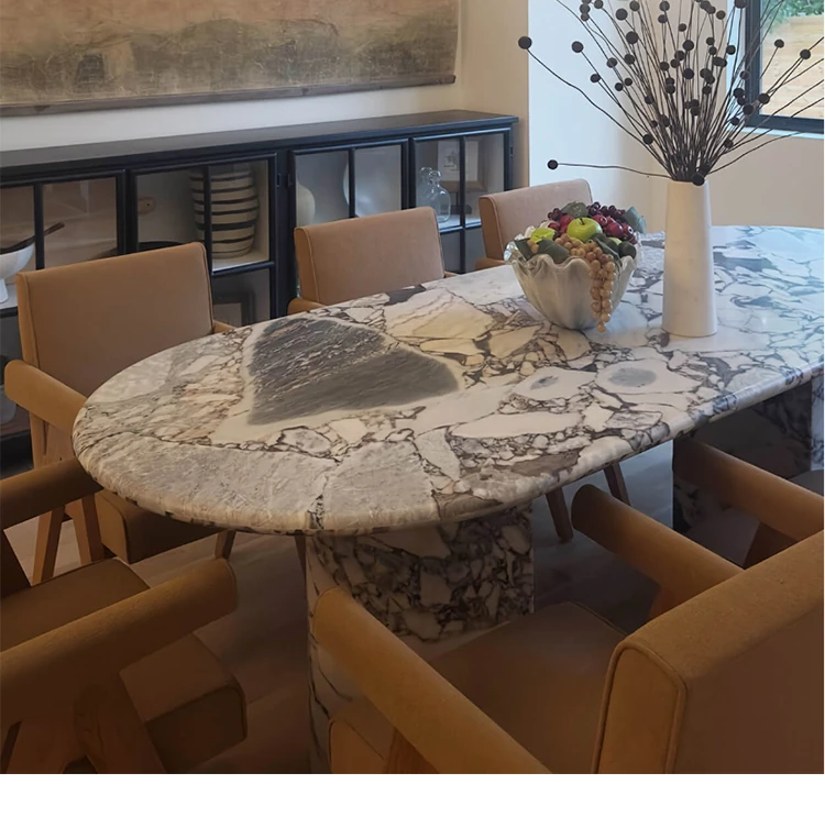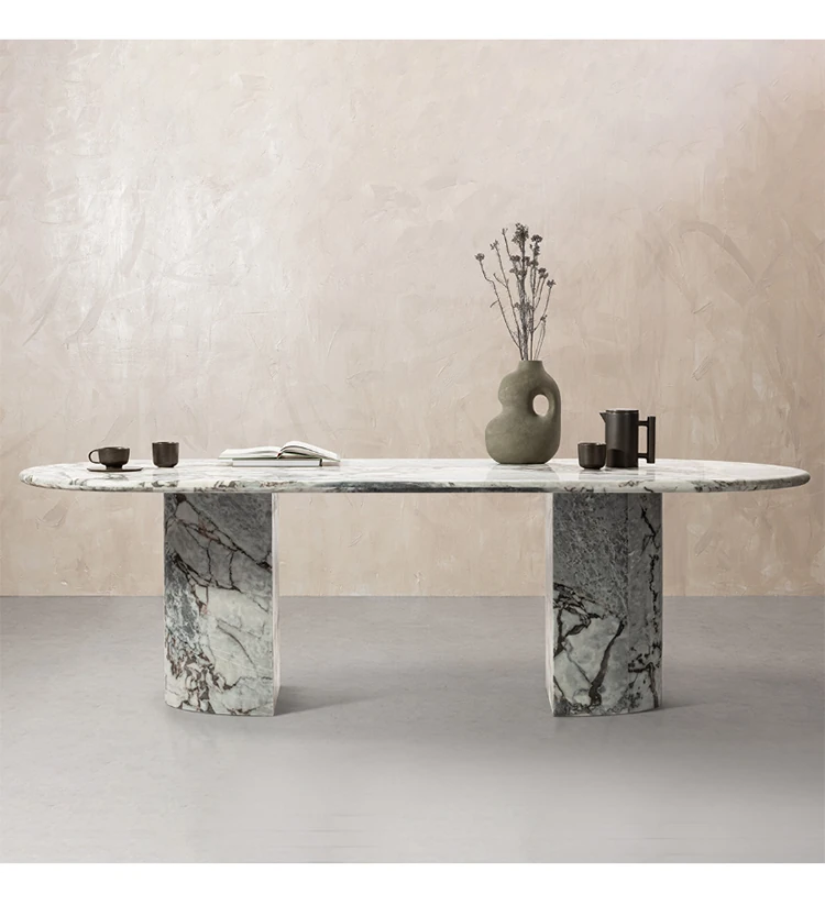 天然大理石のデザイナーズモダンミニマリストダイニングテーブル - イタリアンラグジュアリーで洗練されたリビング&ダイニングにぴったりの高級食卓!