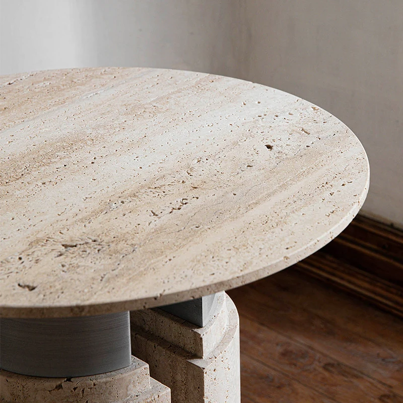 天然洞石デザインのモダンシンプルアートラグジュアリー家庭用テーブル、クリエイティブな大理石オーバルテーブルで、スタイリッシュなインテリアを演出!