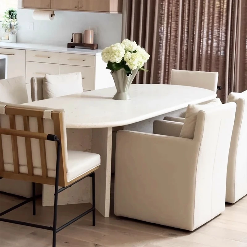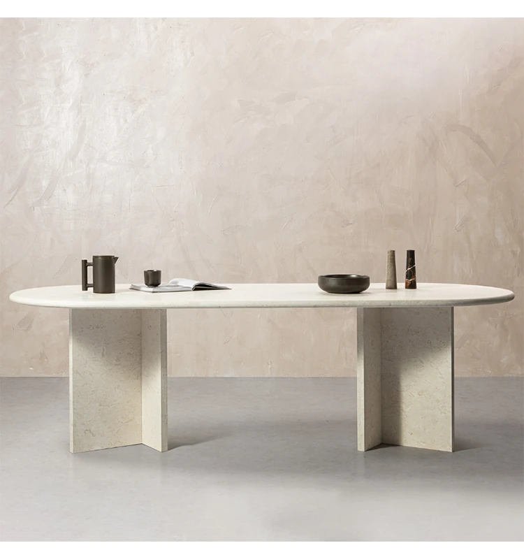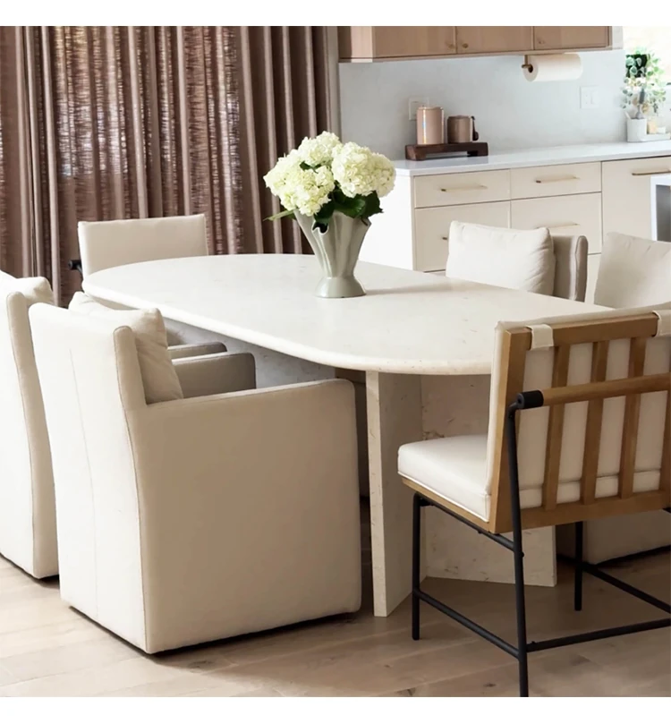 天然洞石のダイニングテーブル - デザイナーズモダンスタイル、シンプルで洗練されたイタリアン侘寂風。心地よい雰囲気で、家庭の食卓を特別に演出します。