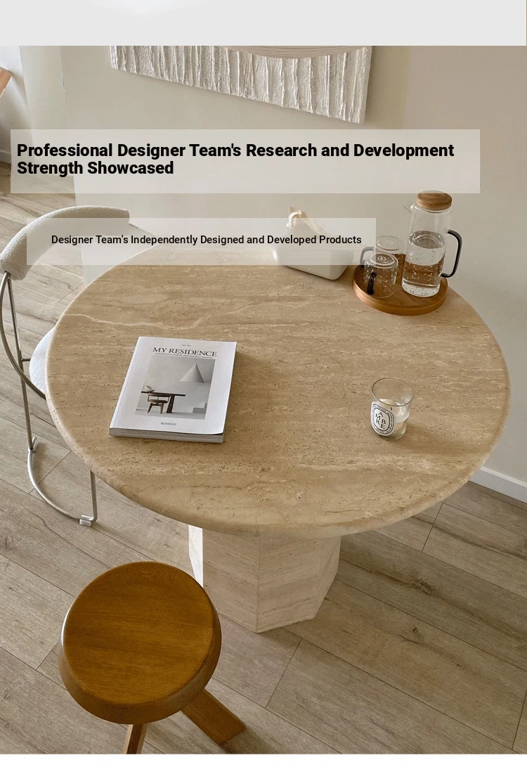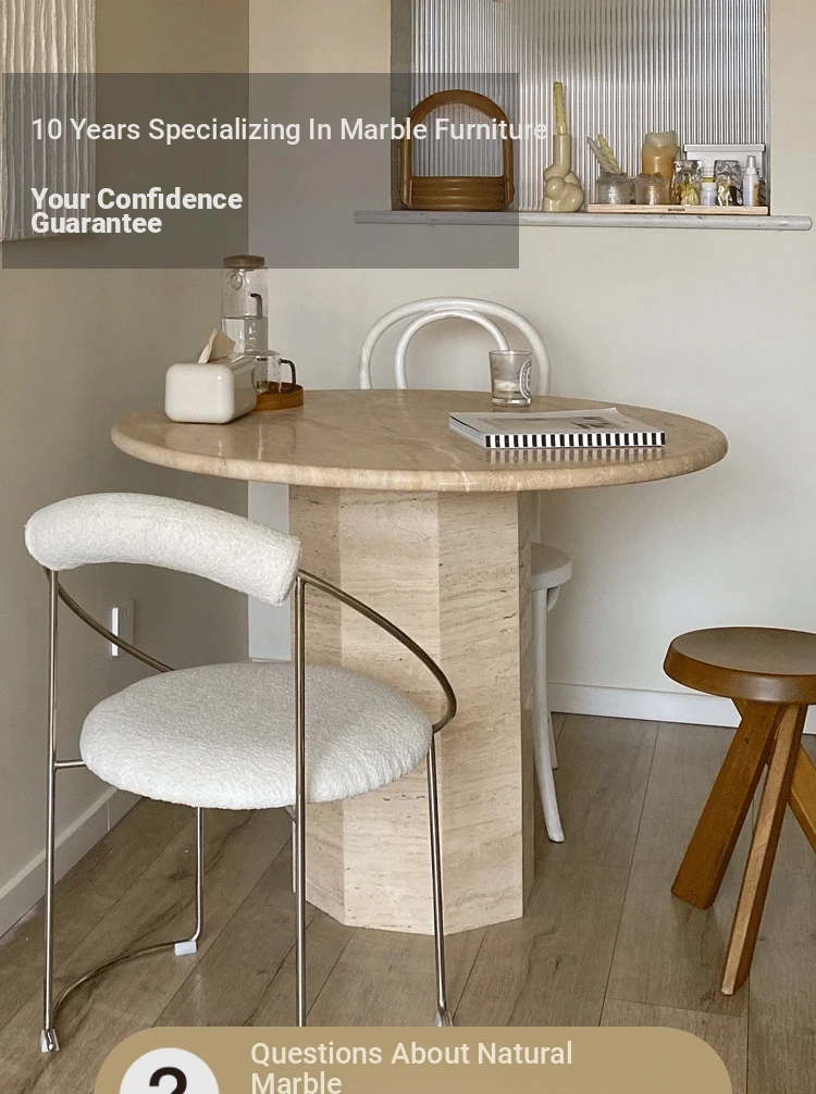 Designer Natural Marble Dining Table - Wabi-Sabi Style - Imported Round Table in Light Marble - Perfect for Modern Living Rooms and Chic Interiors.