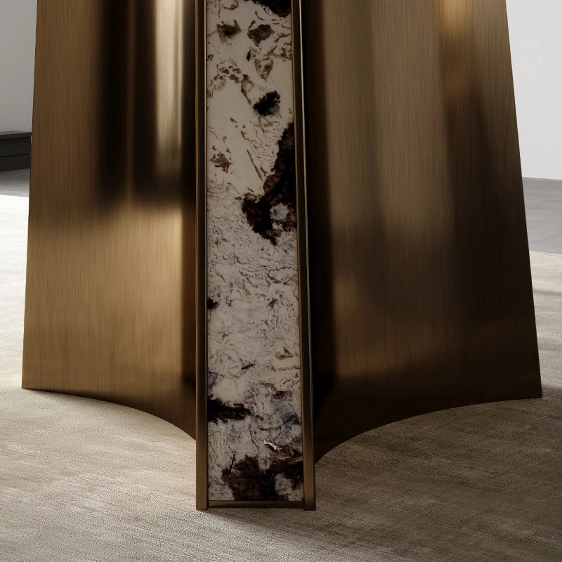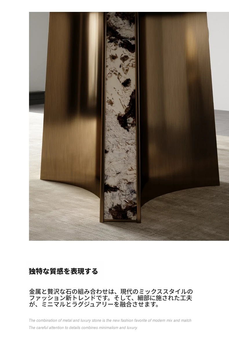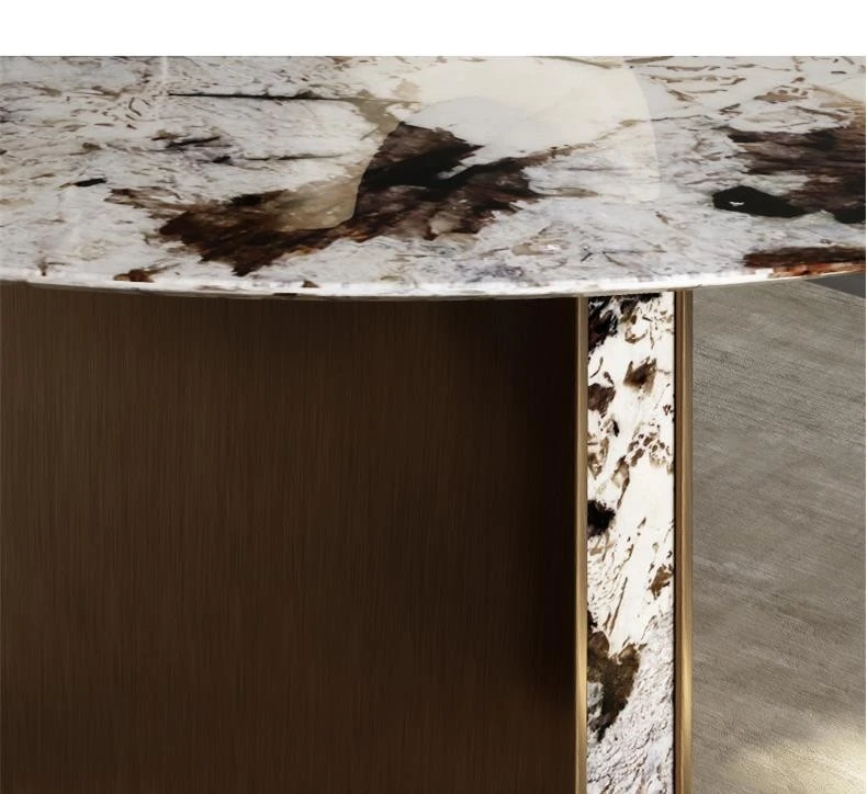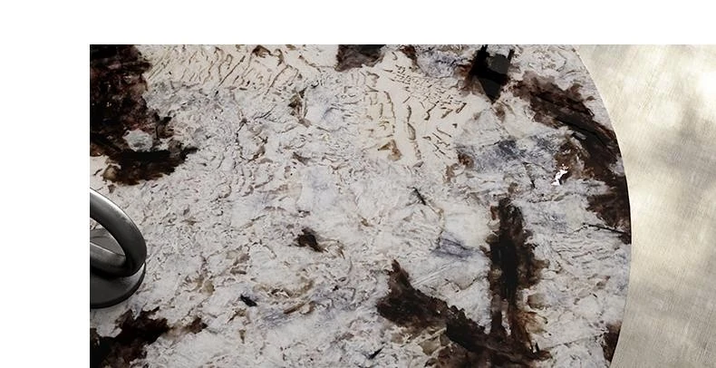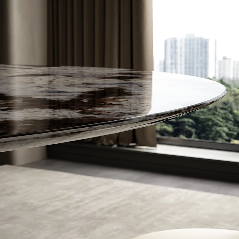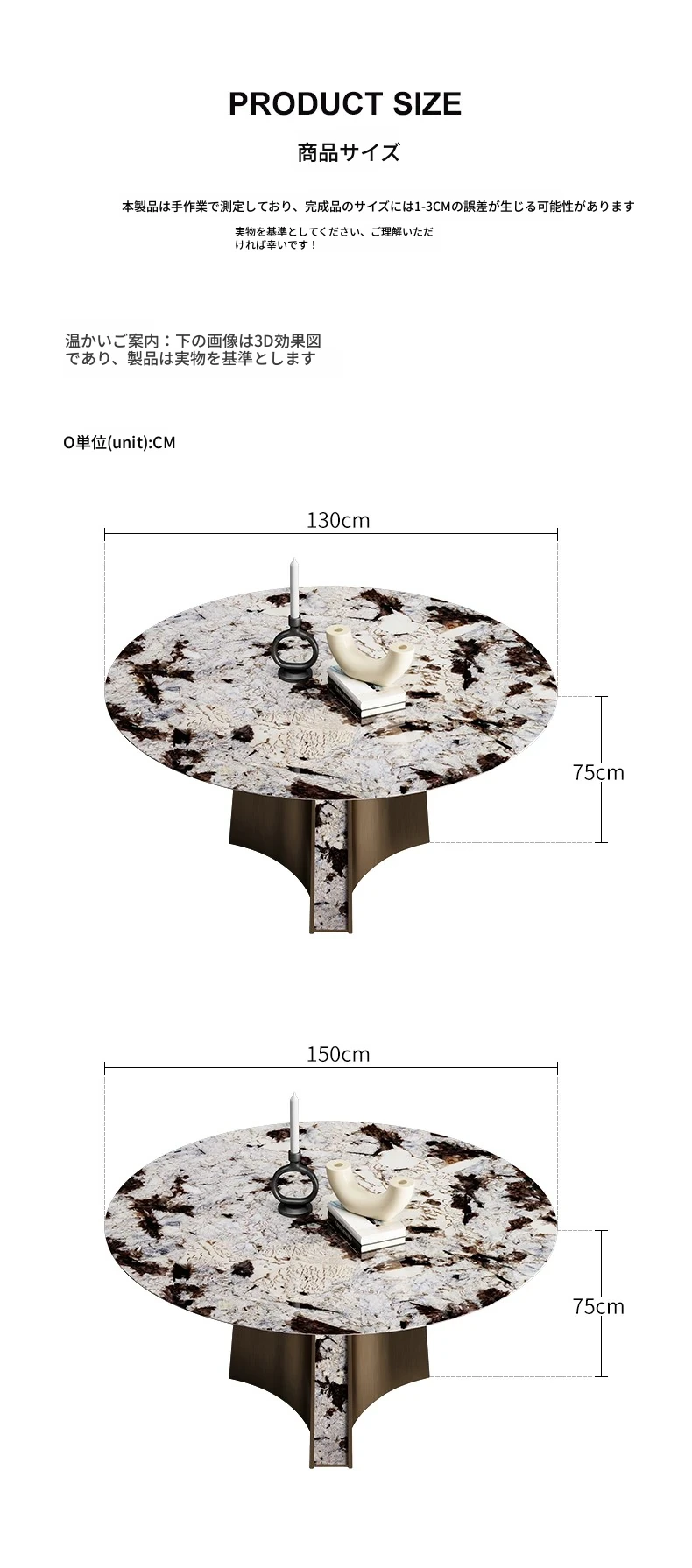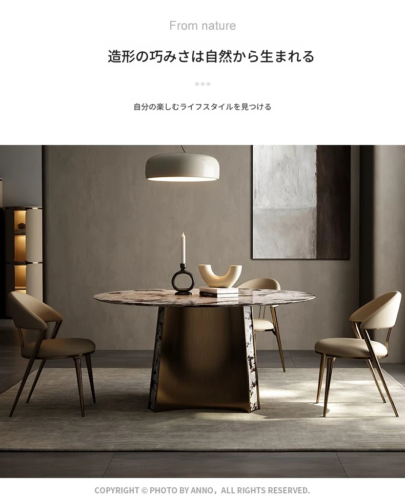 天然大理石製のラウンドダイニングテーブル - デザイナーズラグジュアリー、モダンな高級ヴィラ向け、広々としたリビングにぴったりなイタリアンスタイルの円形テーブル。食事を特別なひとときに演出します!
