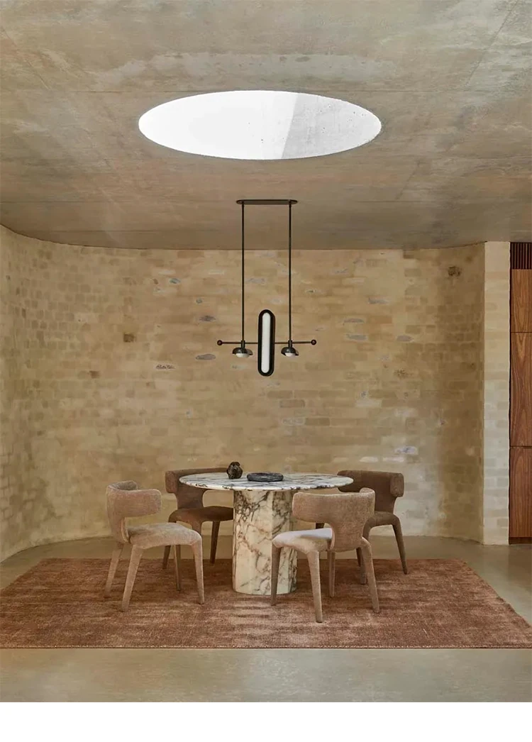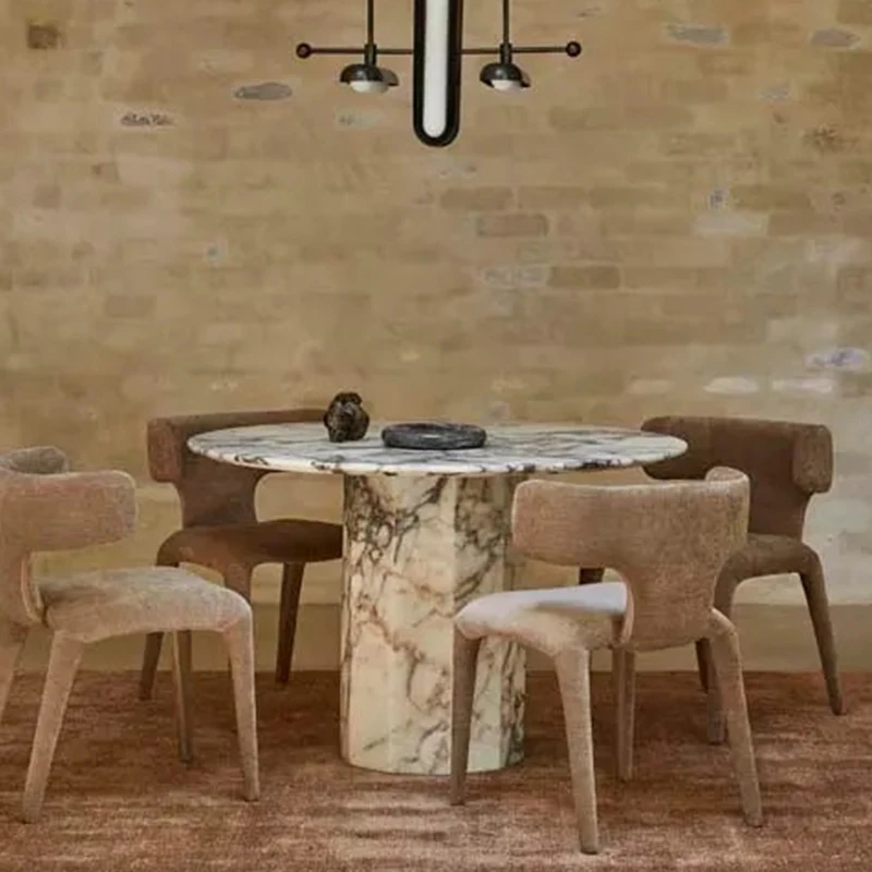 天然大理石のデザイナーズラウンドダイニングテーブル - モダンでシンプル、和の美しさを感じるフランス風ラグジュアリーな食卓で、あなたの家を一層引き立てます。