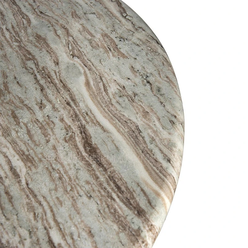 個性的なラウンド天然大理石ダイニングテーブル - デザイナー仕様の軽やかなラグジュアリー、モダンなシンプルさが魅力の別荘やリビングにぴったりな食卓!