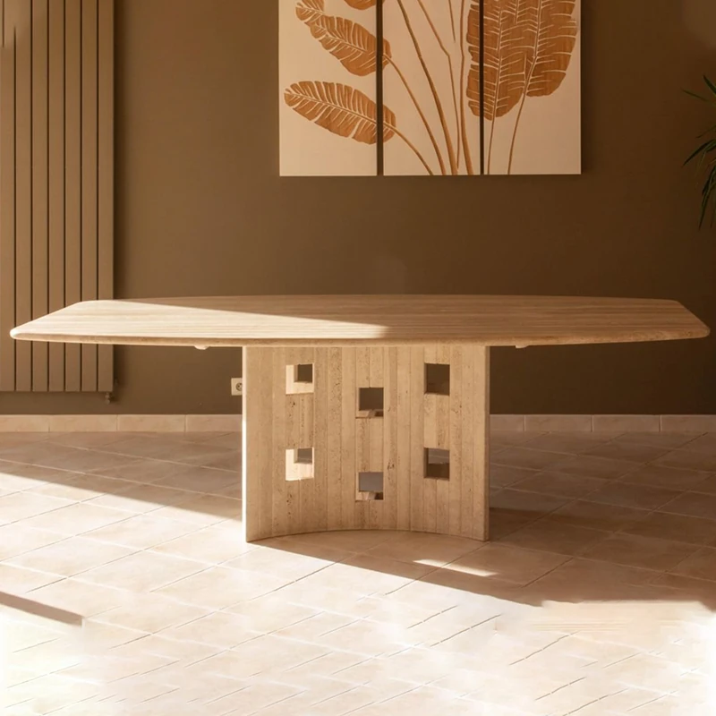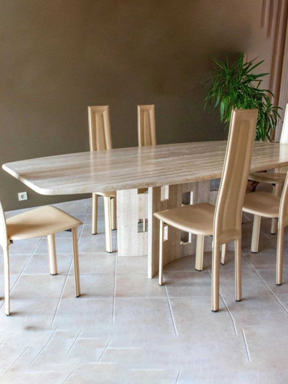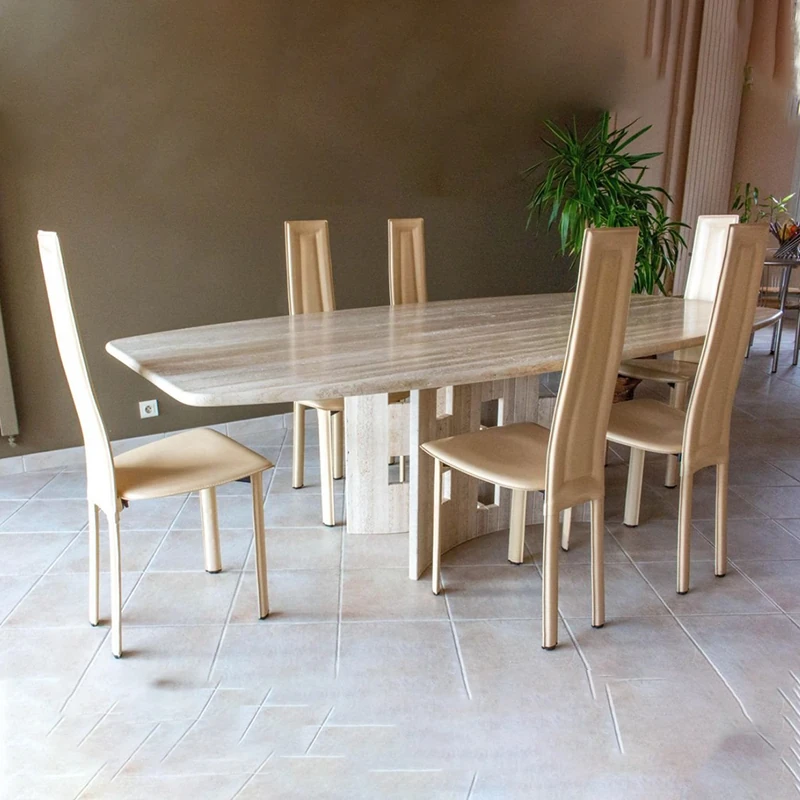 高級感溢れる欧式大理石ダイニングテーブル - 北欧スタイルの洗練された長方形デザインで、贅沢な食卓を演出。家族や友人との特別なひとときを彩ります。