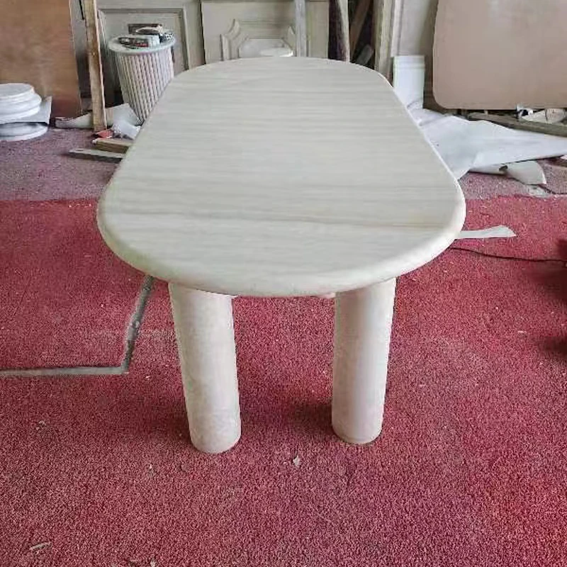 エレガントな小型欧州スタイルの天然大理石ダイニングテーブル - シンプルで洗練された侘び寂び風の楕円形デザイン、どんな食空間にもぴったり。洞石の美しさが引き立つ、心地よい食事のひと時をお届けします。