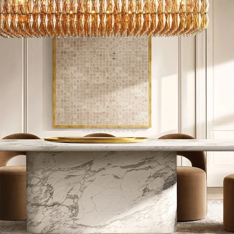 イタリアンラグジュアリー大理石オーバルデザインダイニングテーブル - 高級感あふれるホテルやヴィラにぴったりのミニマルスタイルで、特別な食事体験を演出します。