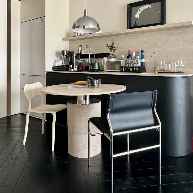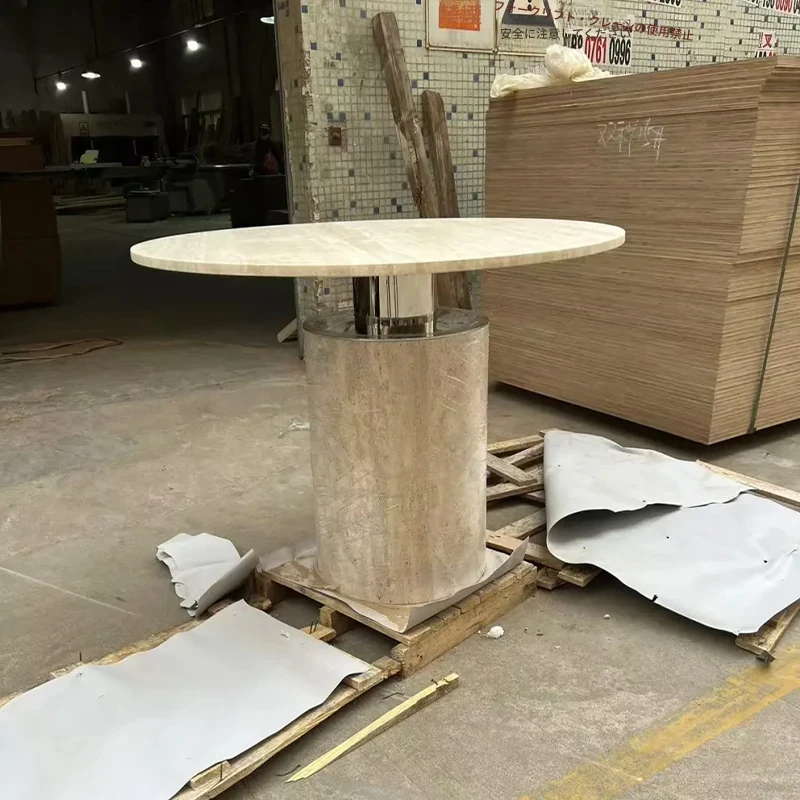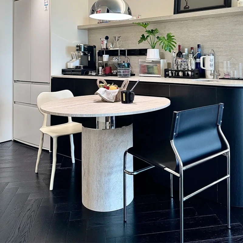 ナチュラルな大理石を使用したモダンミニマリストの円形ダイニングテーブル - 洗練されたデザインで、別荘や家庭にぴったり!
