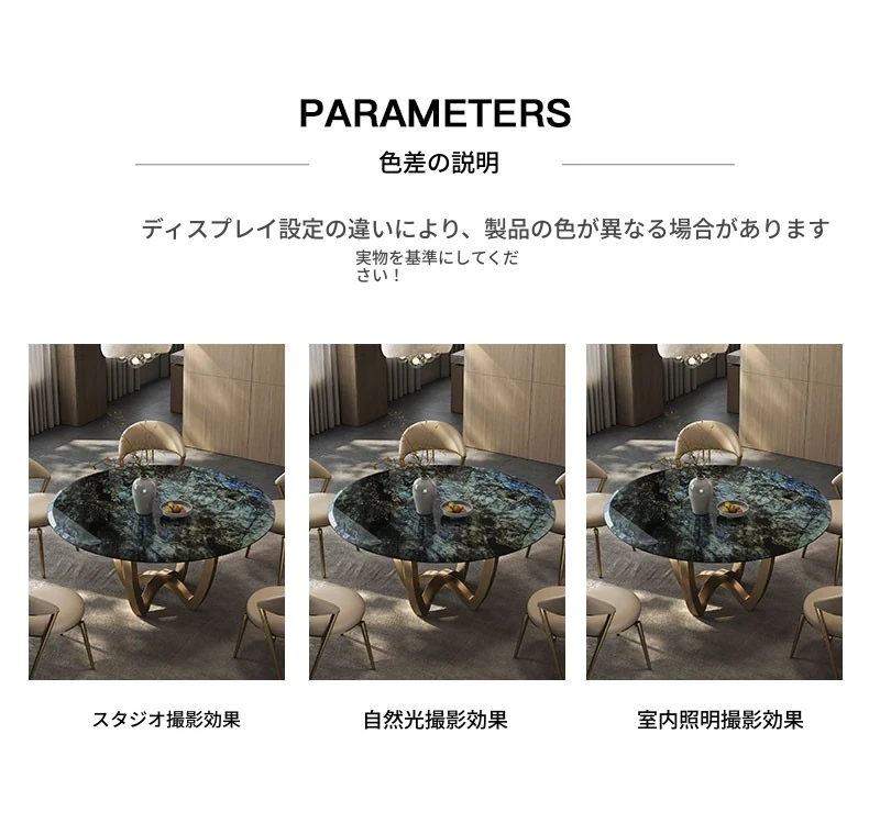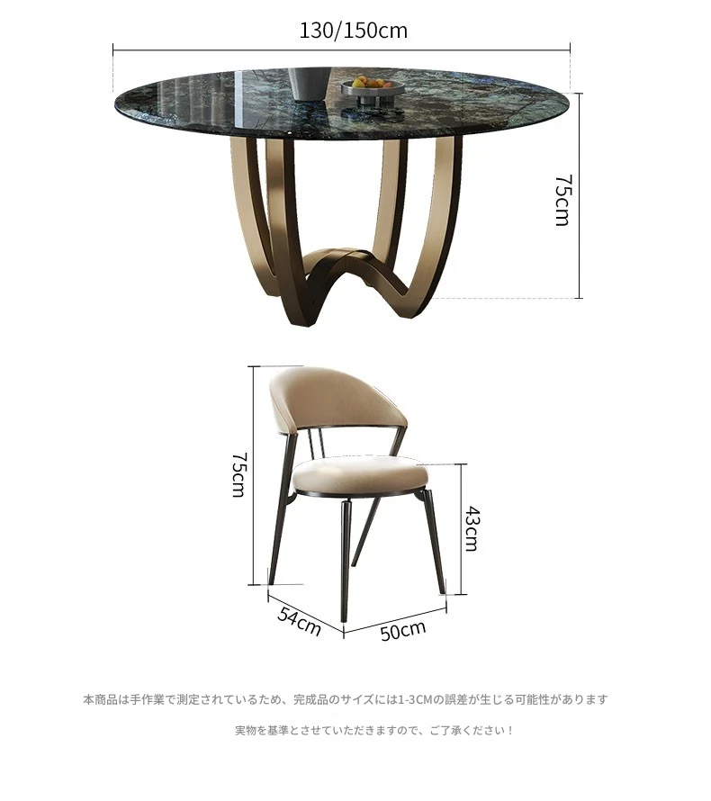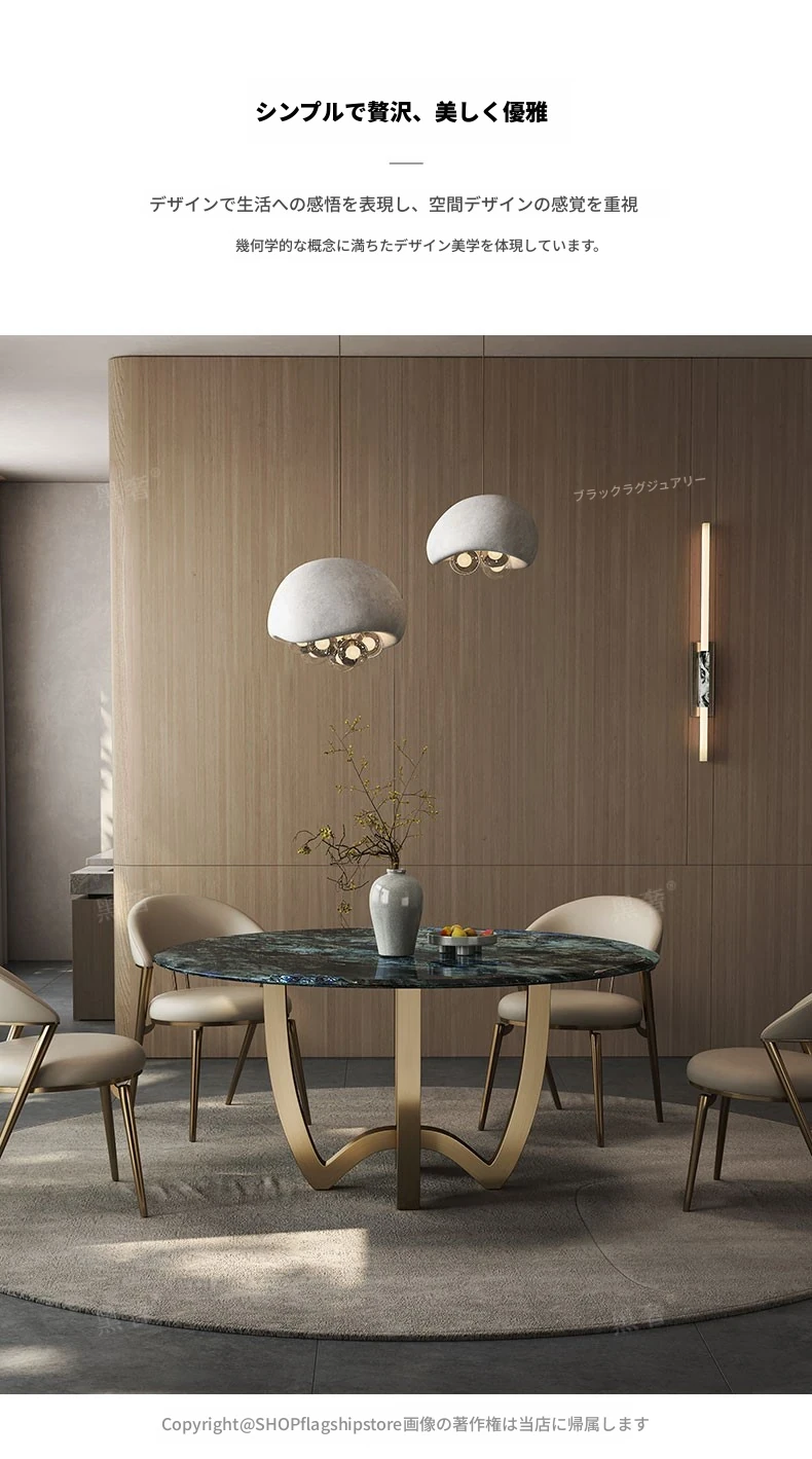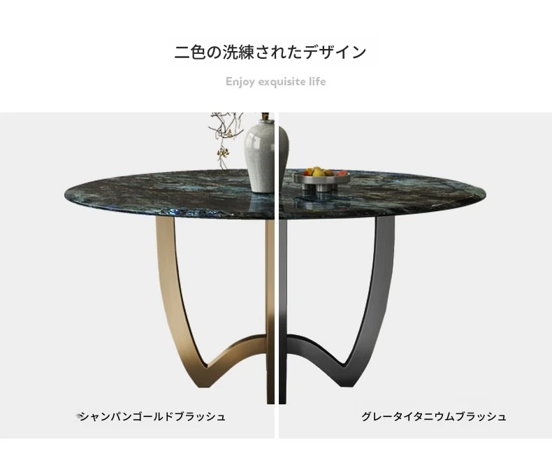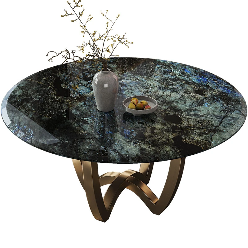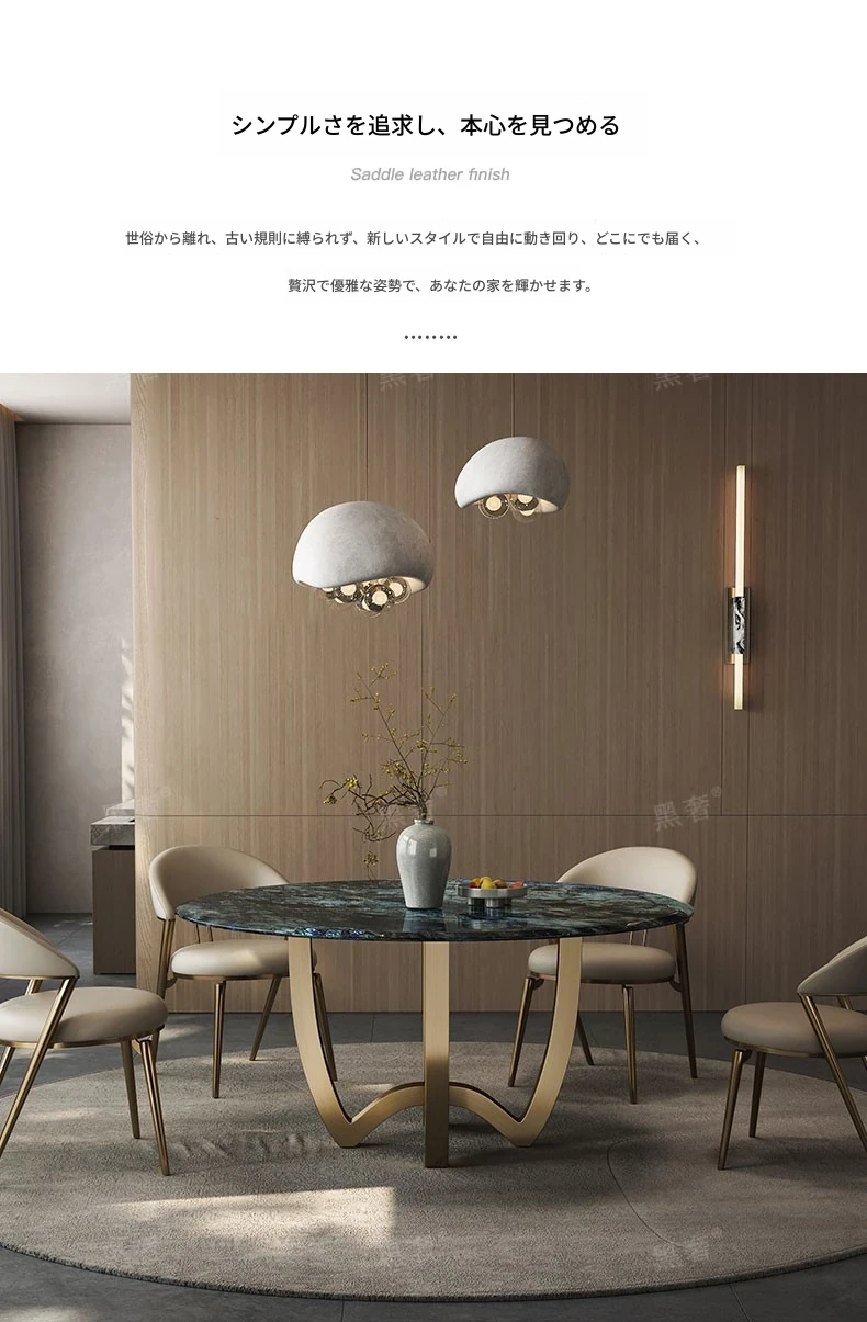ラグジュアリー感あふれる大理石のラウンドダイニングテーブル|天然のサファイアを使用したイタリアンモダンスタイルの別荘向けテーブル&チェアセット