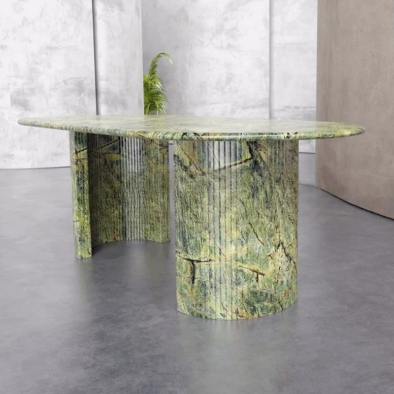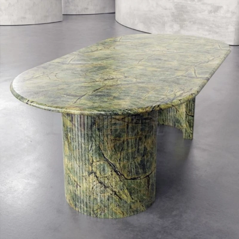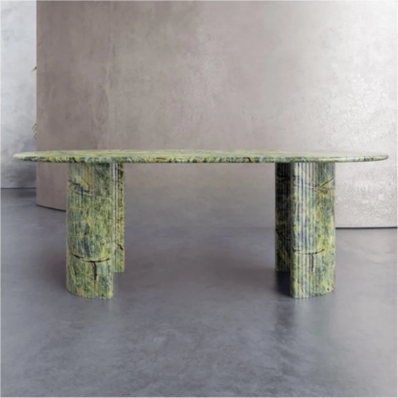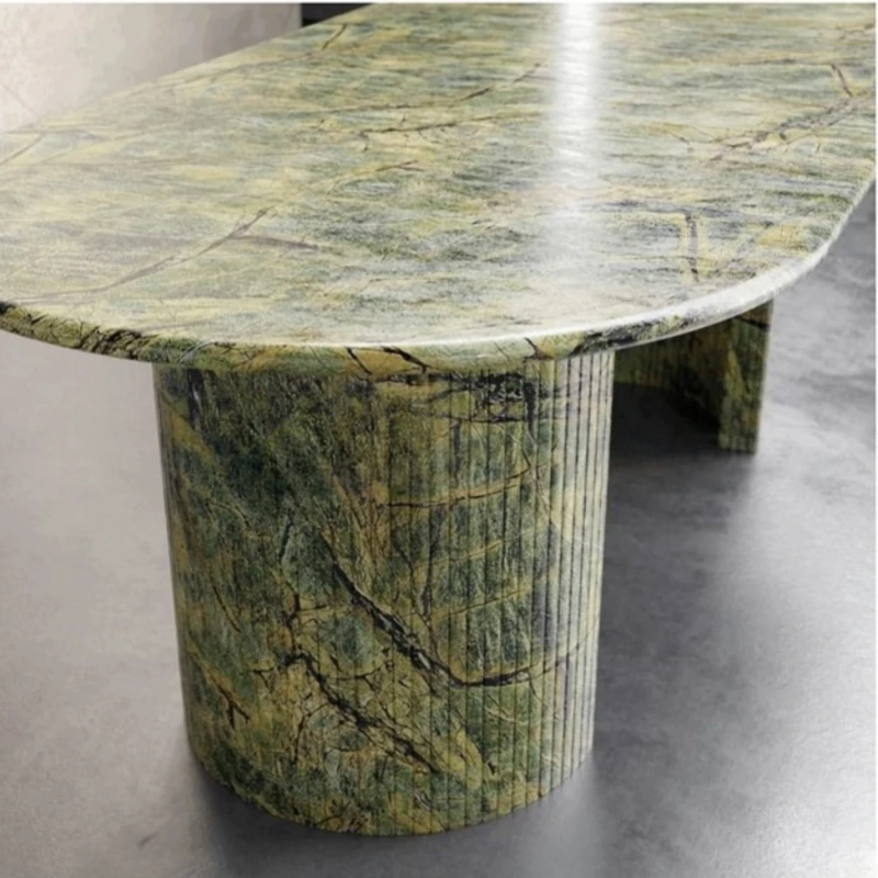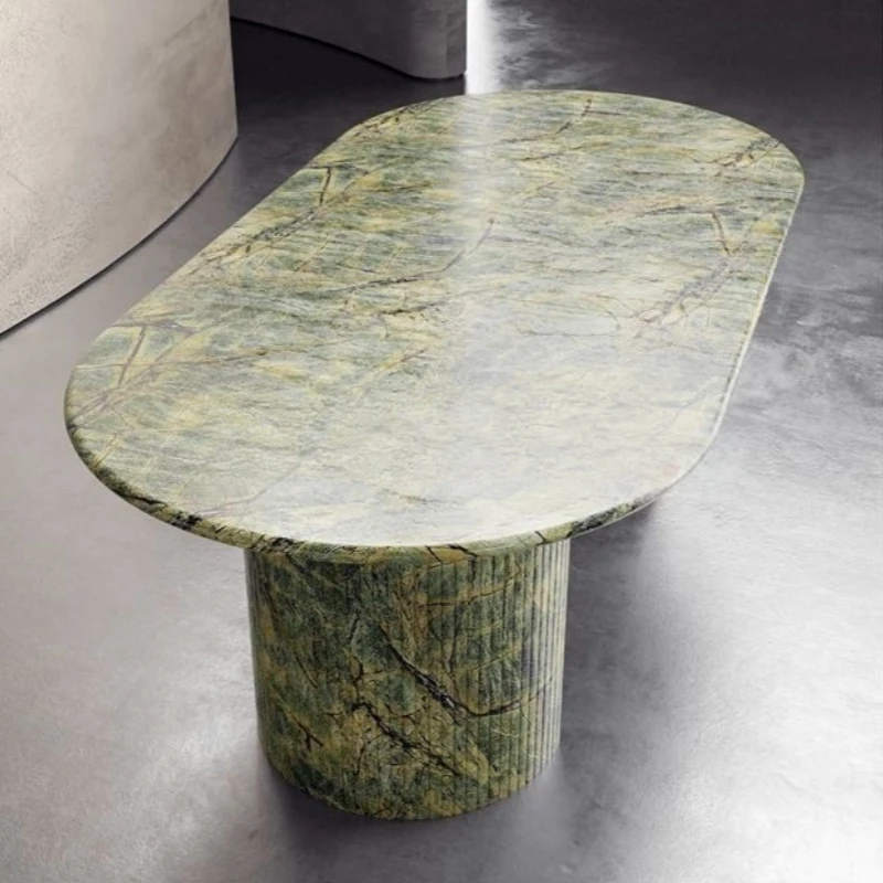 天然大理石使用の高級感あふれるエレガントなオーバル型ダイニングテーブル - ラグジュアリーなデザイナーによるイタリアンミニマリズムスタイル!おしゃれで洗練された空間を演出します。