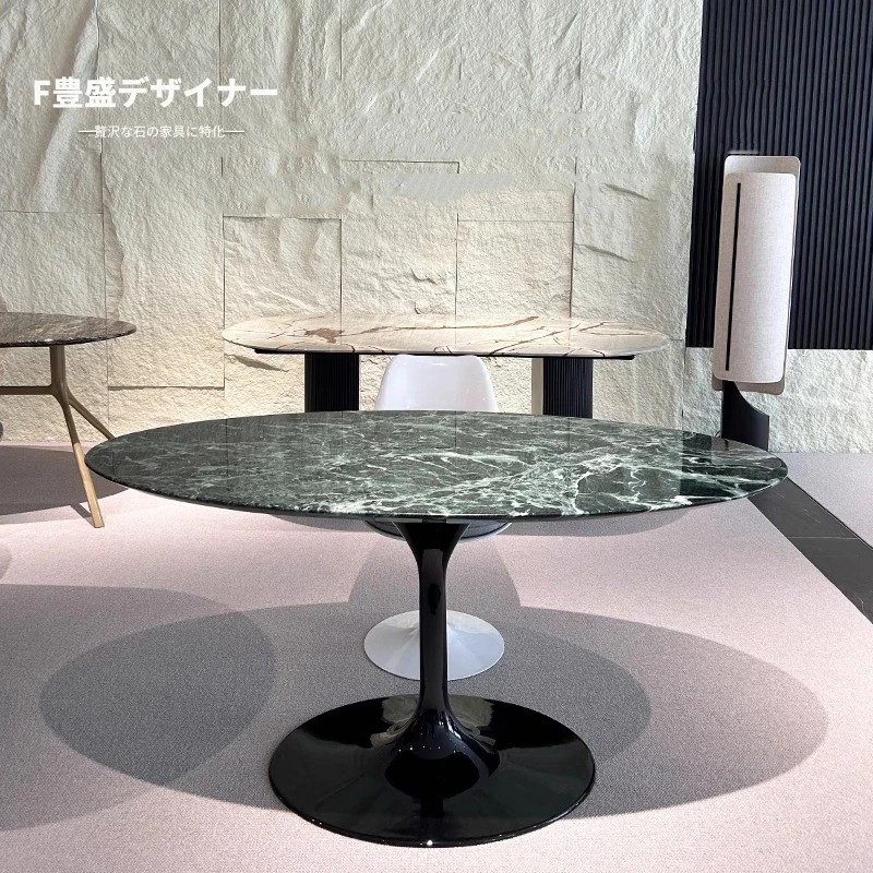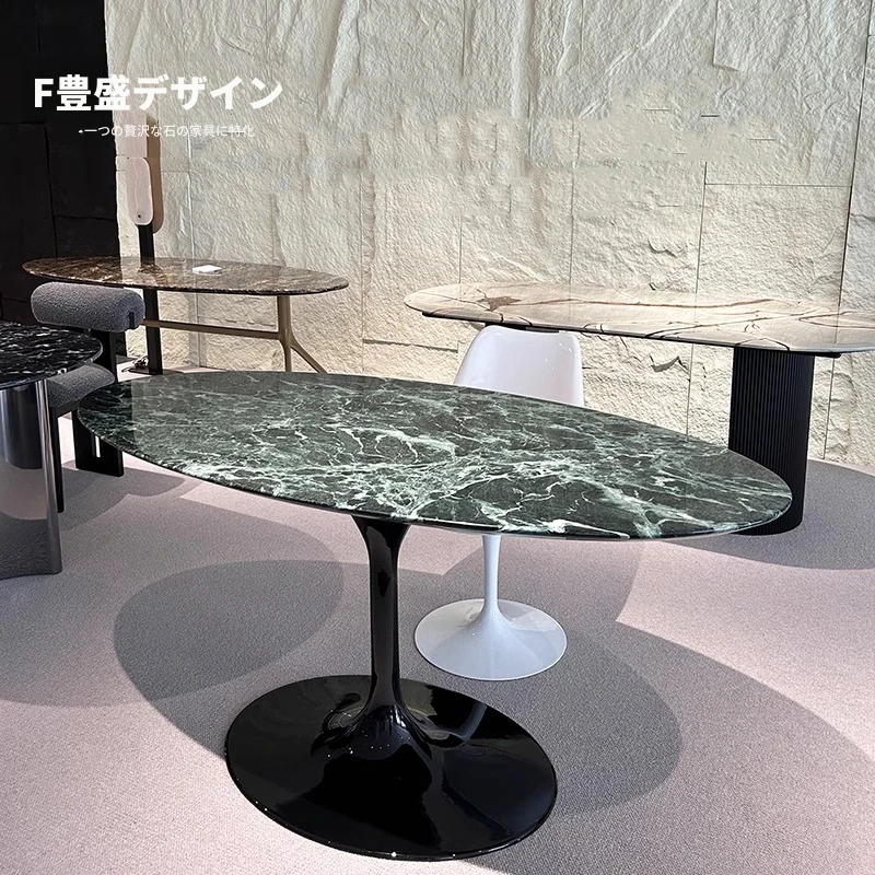 輸入品・エレガントな天然大理石の楕円形ダイニングテーブル|イタリアンミニマリズムの高級感あふれる長方形テーブル|豪華な住空間にぴったりな家庭用ダイニングテーブル!