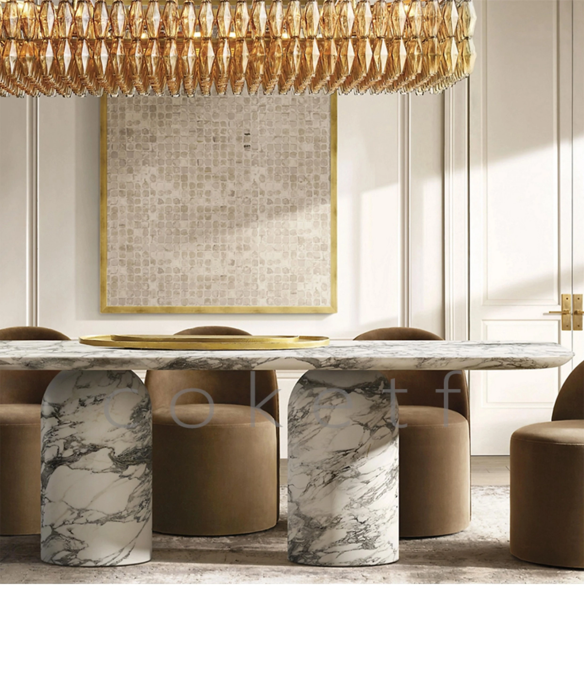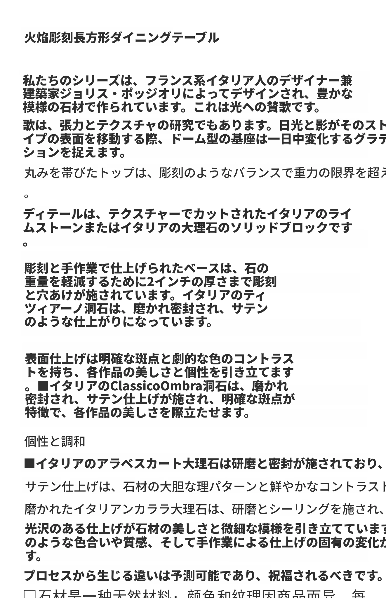 イタリアンデザインの天然大理石を使用した豪華な彫刻長方形ダイニングテーブル。優雅な大花模様で、食卓を一層華やかに演出!上質なインテリアにぴったりの一品です。