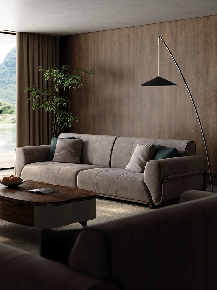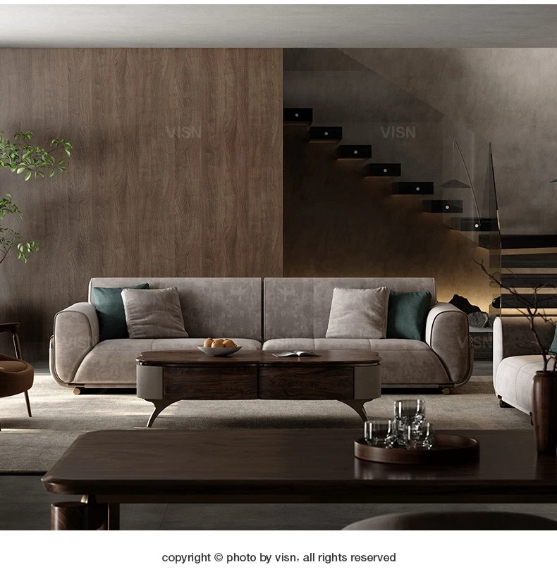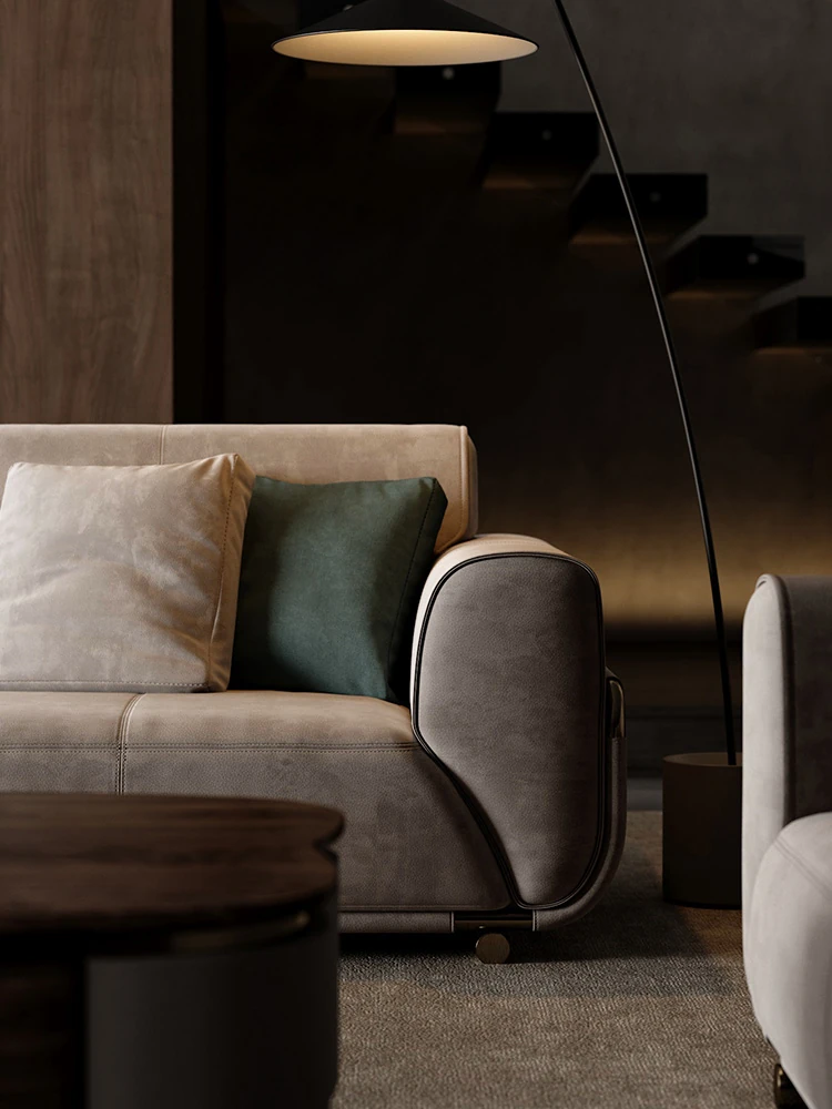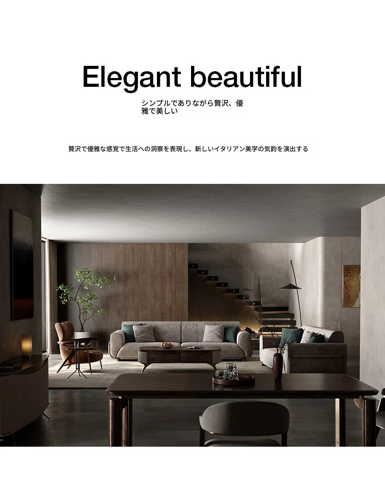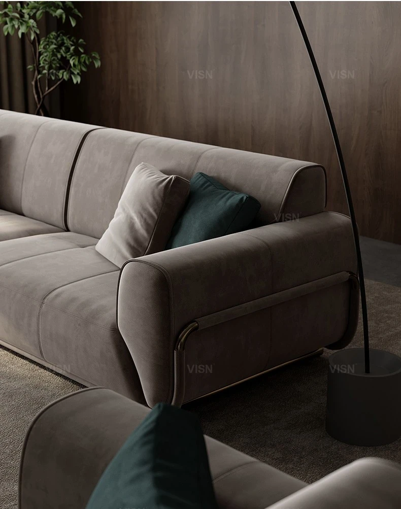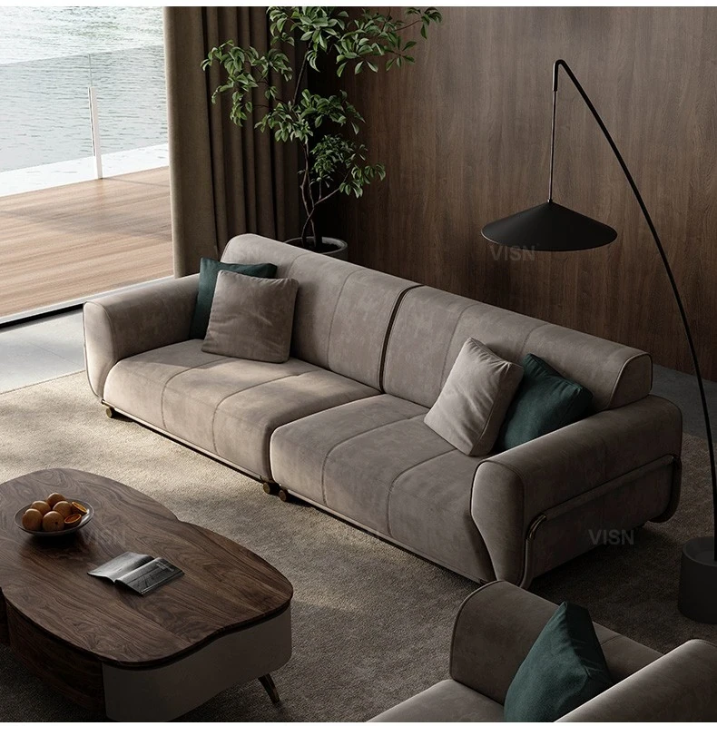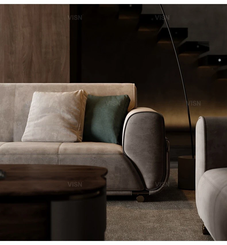 イタリアンラグジュアリーソファ|現代的で洗練されたリビング空間にぴったりな本革ソファ|広々としたヴィラや大平面にも最適なシンプルデザイン!