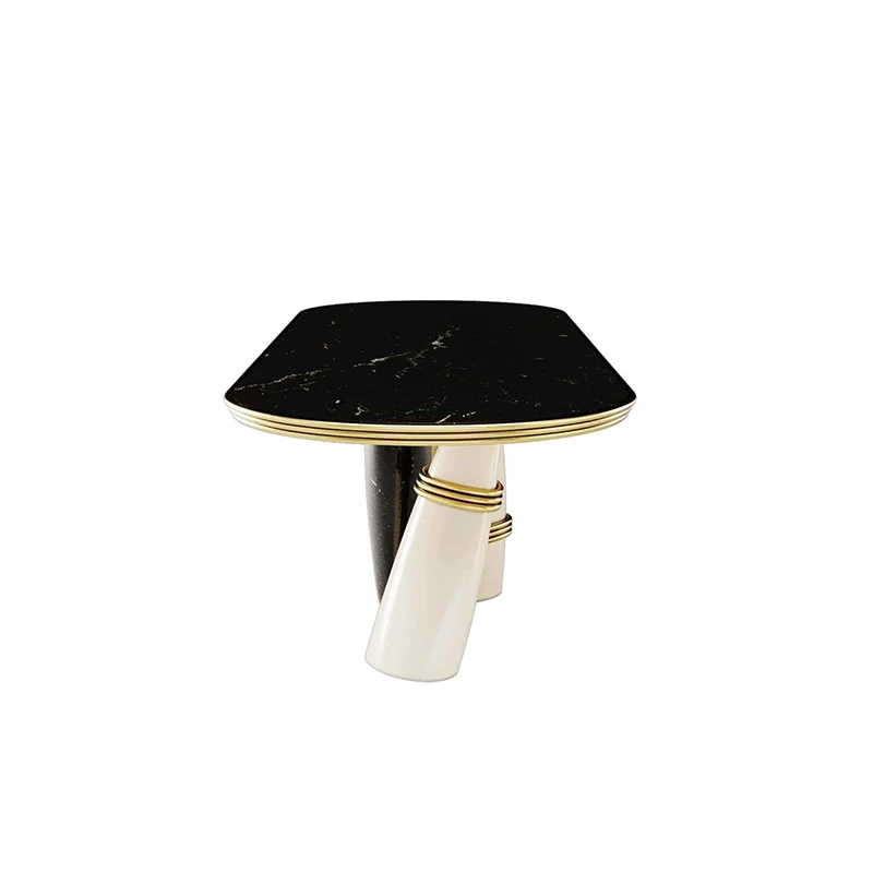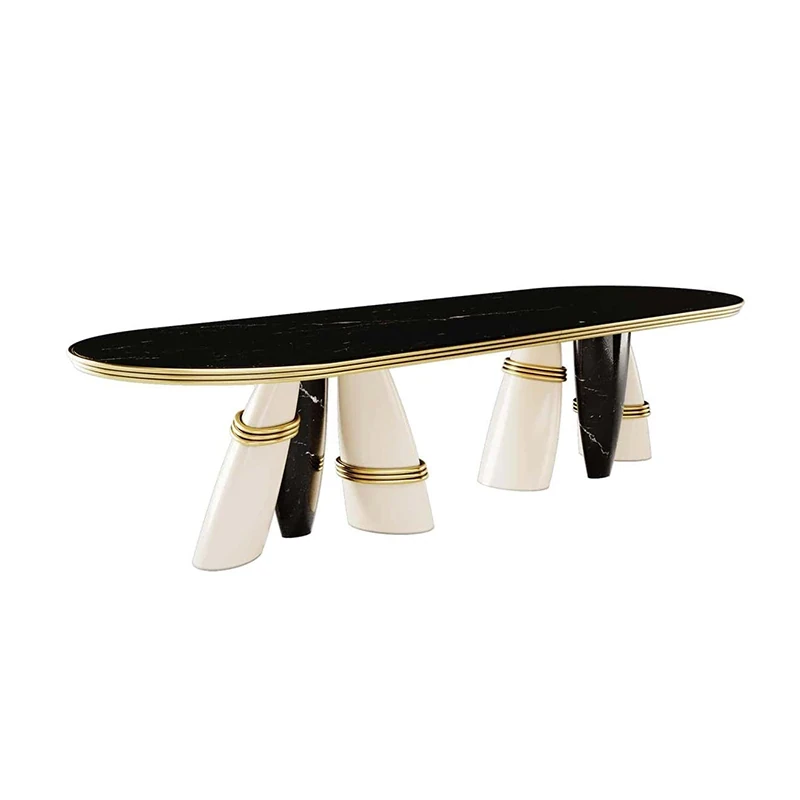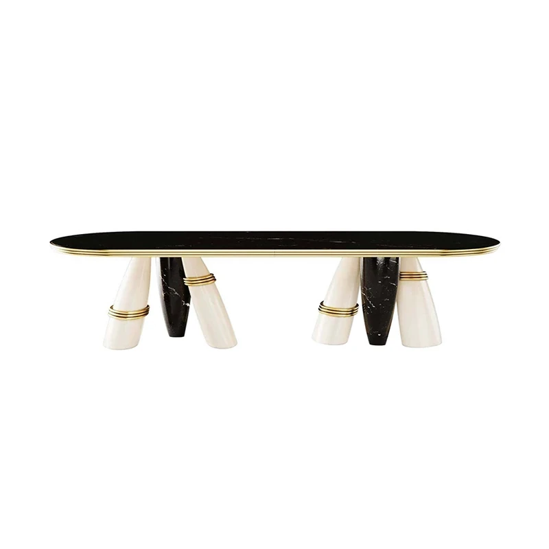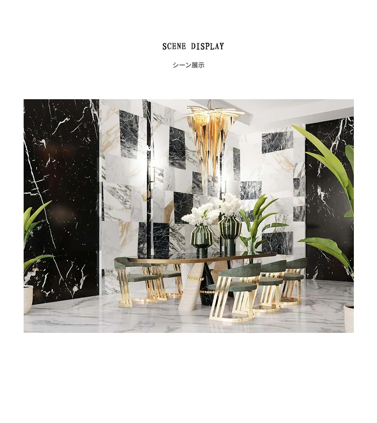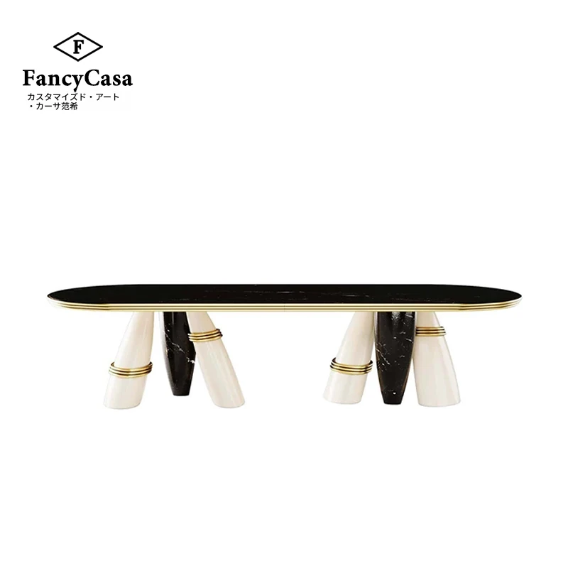 イタリアン・ラグジュアリー ダイニングテーブル&チェアセット - エレガントな楕円形、8人掛け、大理石の美しいグリーン模様と高級ステンレスベースの組み合わせで、特別な食卓を演出します。