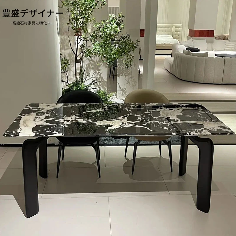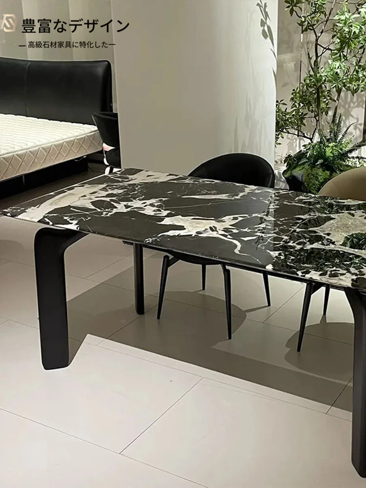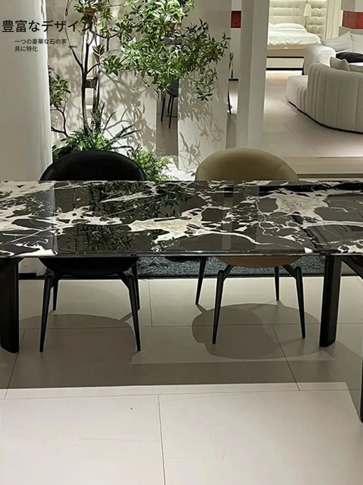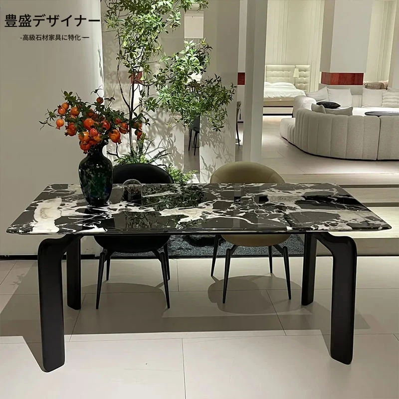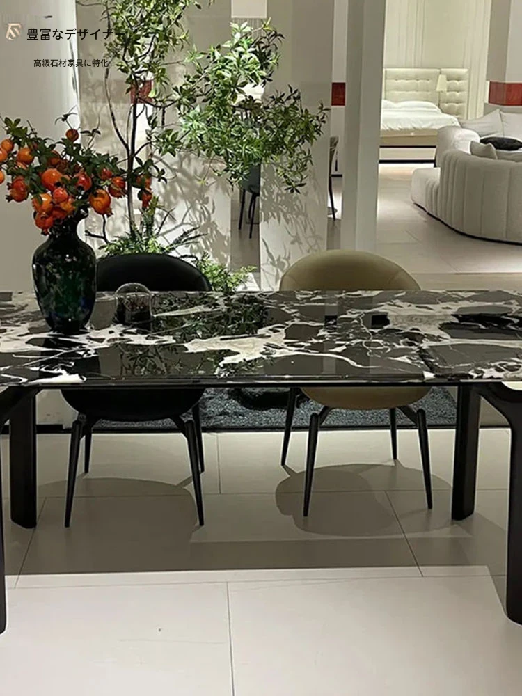 イタリアンミニマリズムの天然大理石ダイニングテーブル - 高級アート別荘向け、広々としたリビングにぴったりな長方形デザインで、贅沢な食事体験を提供します。