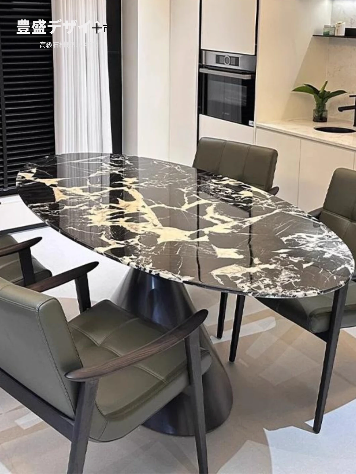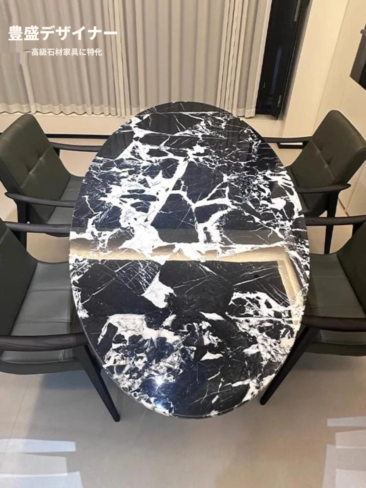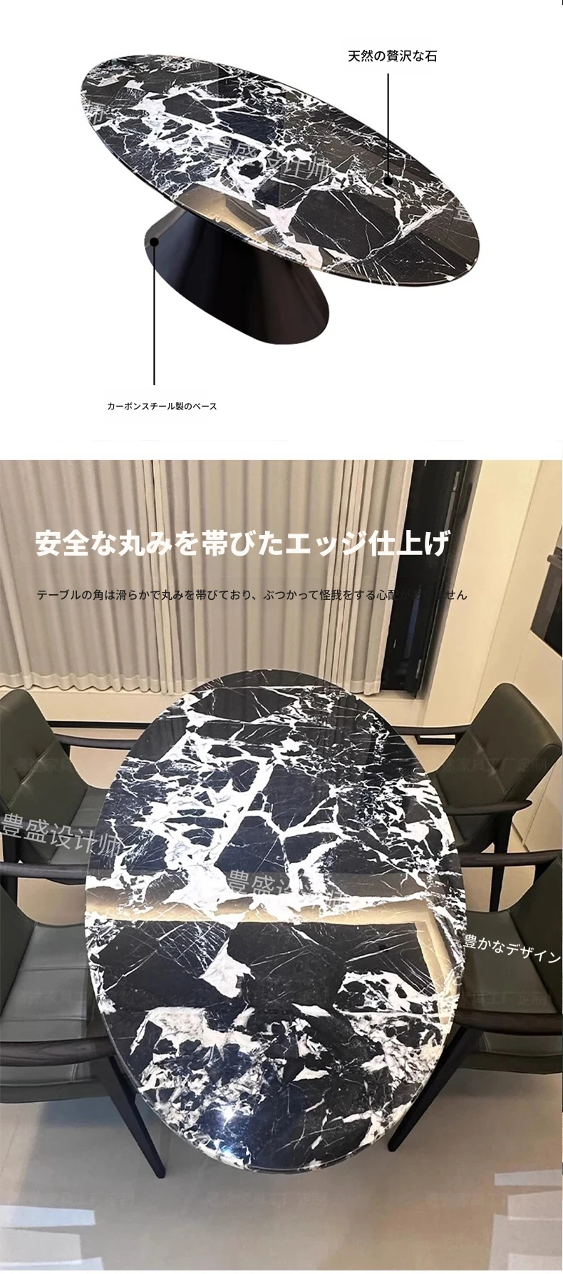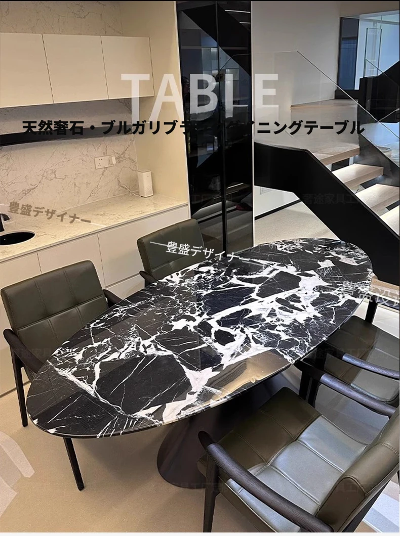 イタリアンミニマルデザイン 天然大理石製オーバルダイニングテーブル 輸入高級ストーン 豪華な住まいにぴったりのスタイリッシュな大理石テーブル