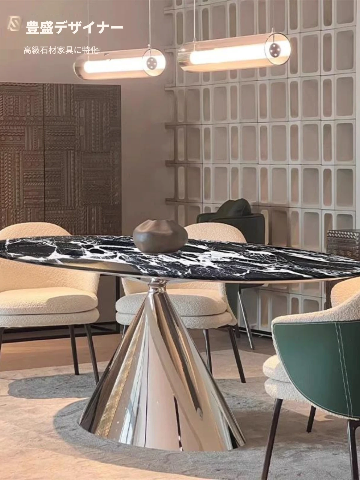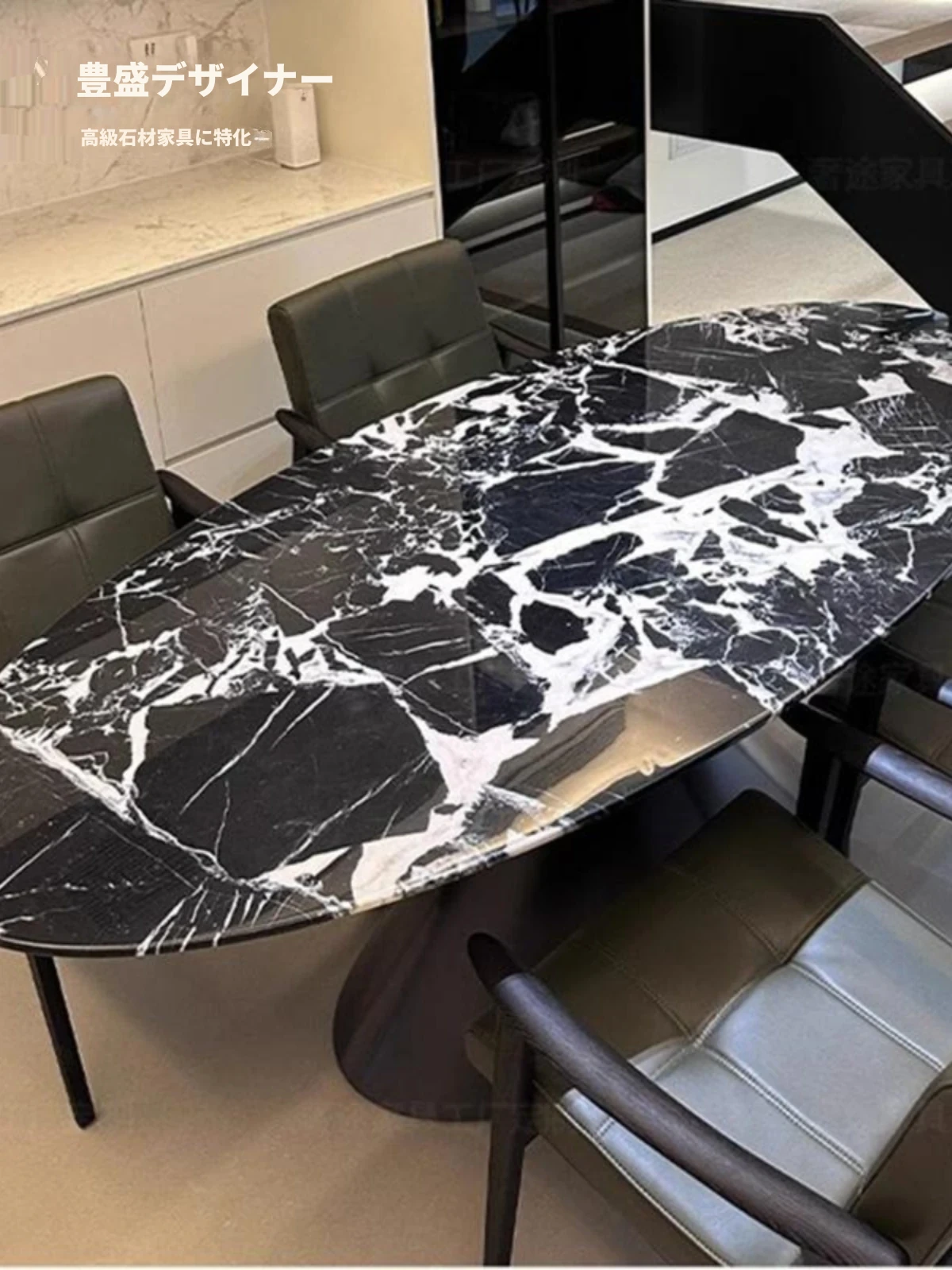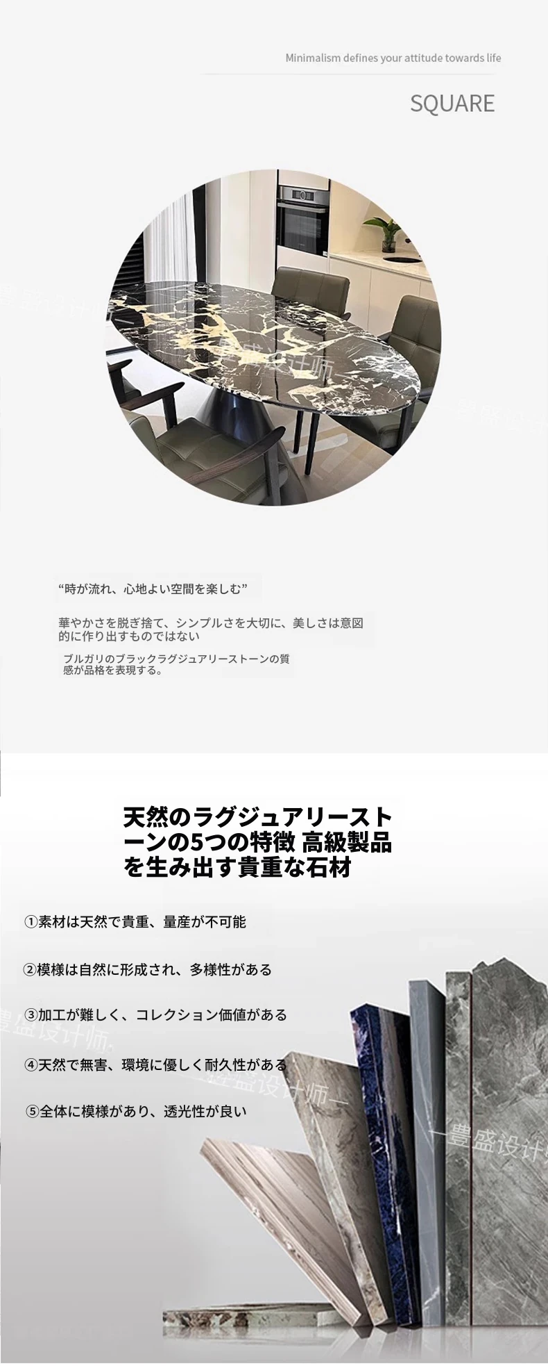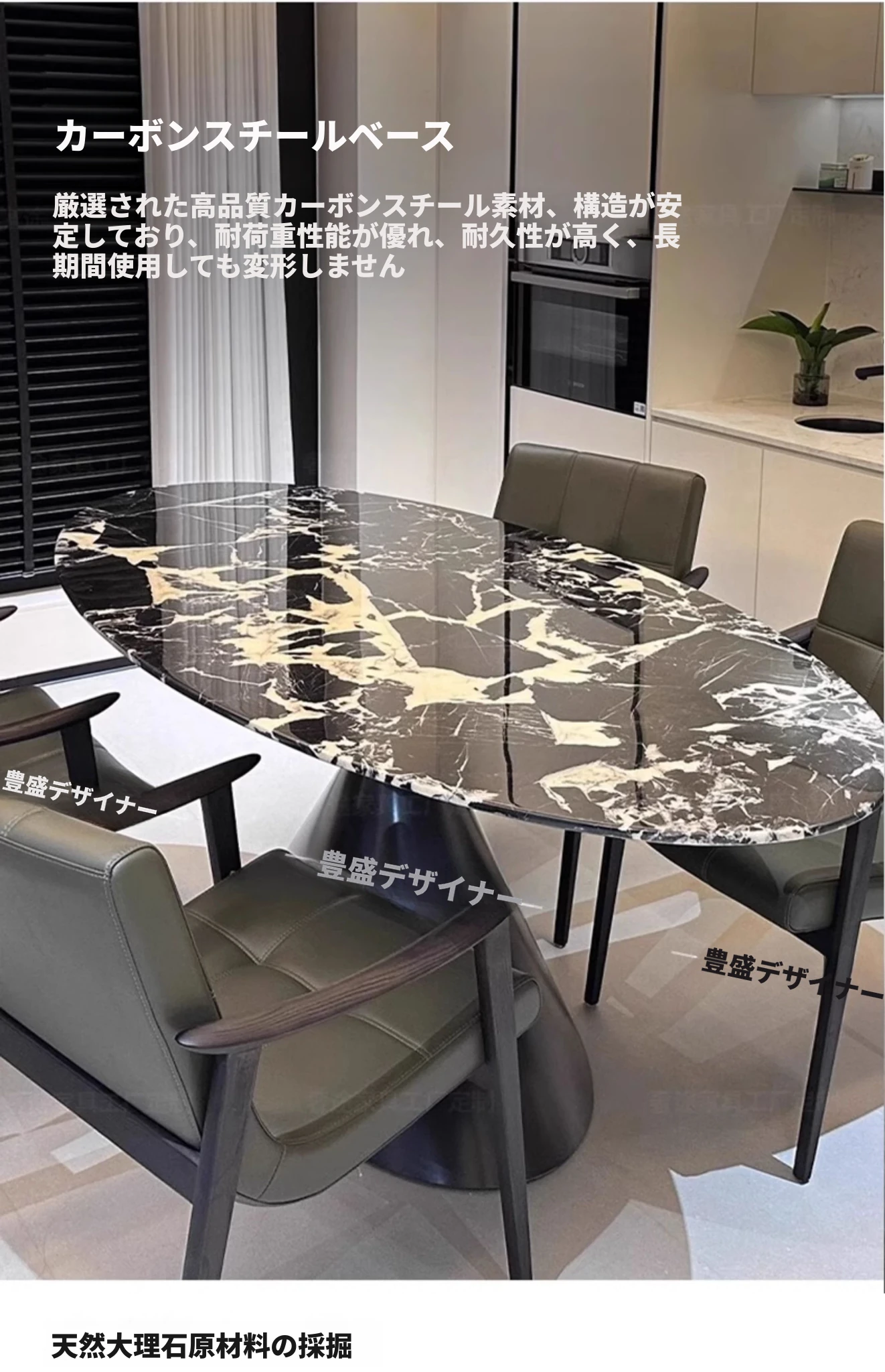 イタリアンミニマルデザイン 天然大理石製オーバルダイニングテーブル 輸入高級ストーン 豪華な住まいにぴったりのスタイリッシュな大理石テーブル