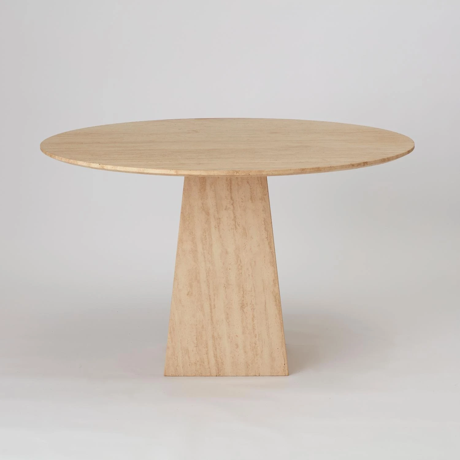 イタリアンミニマリズムの天然洞石大理石ダイニングテーブル|現代的なシンプルスタイルの別荘モデルハウスに最適!ラウンド型で、洗練された西洋レストランの雰囲気を演出します。