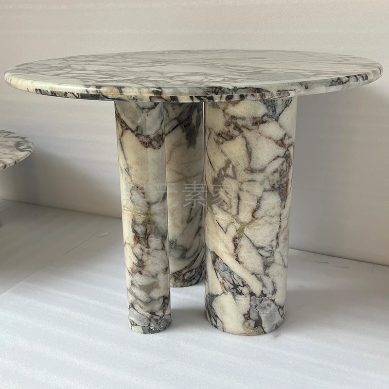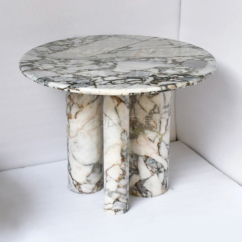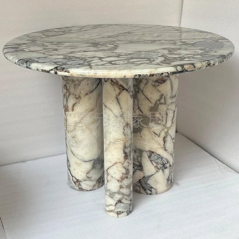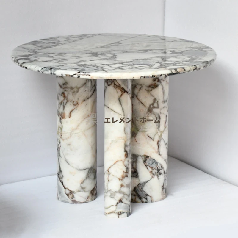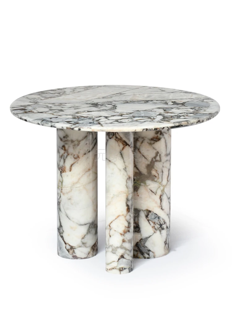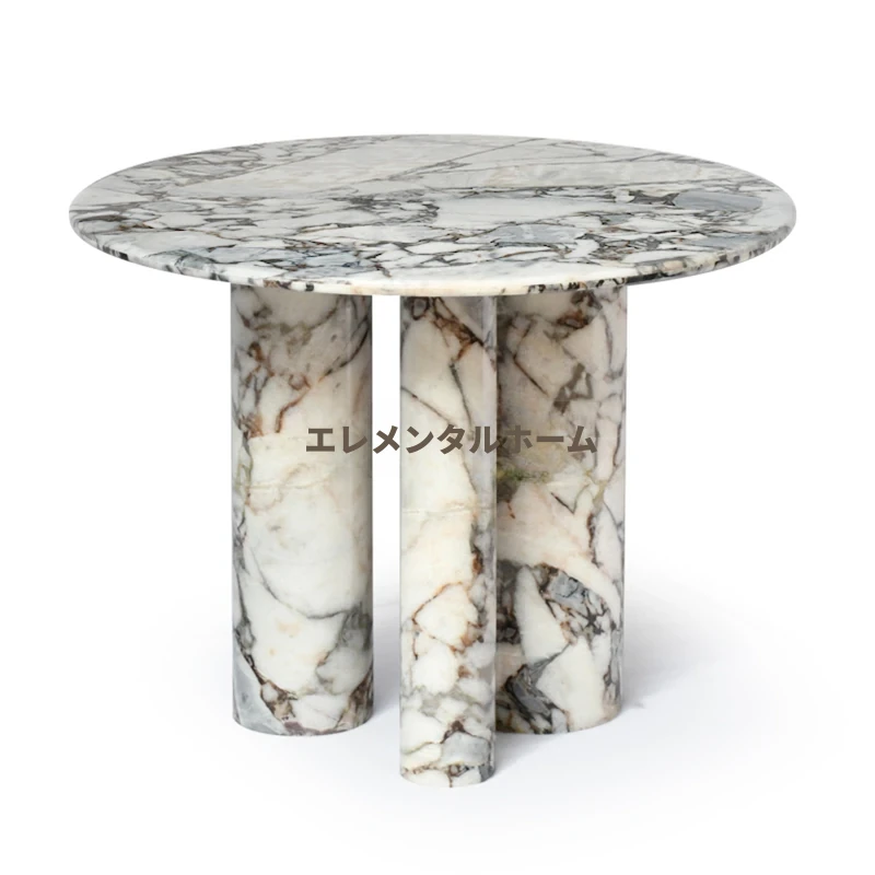 イタリアンミニマルデザインのオーシャンストーム大理石ダイニングテーブル - モダンでスタイリッシュなラウンドテーブル、小さなスペースにもぴったりの高級感あふれるインテリアを実現!