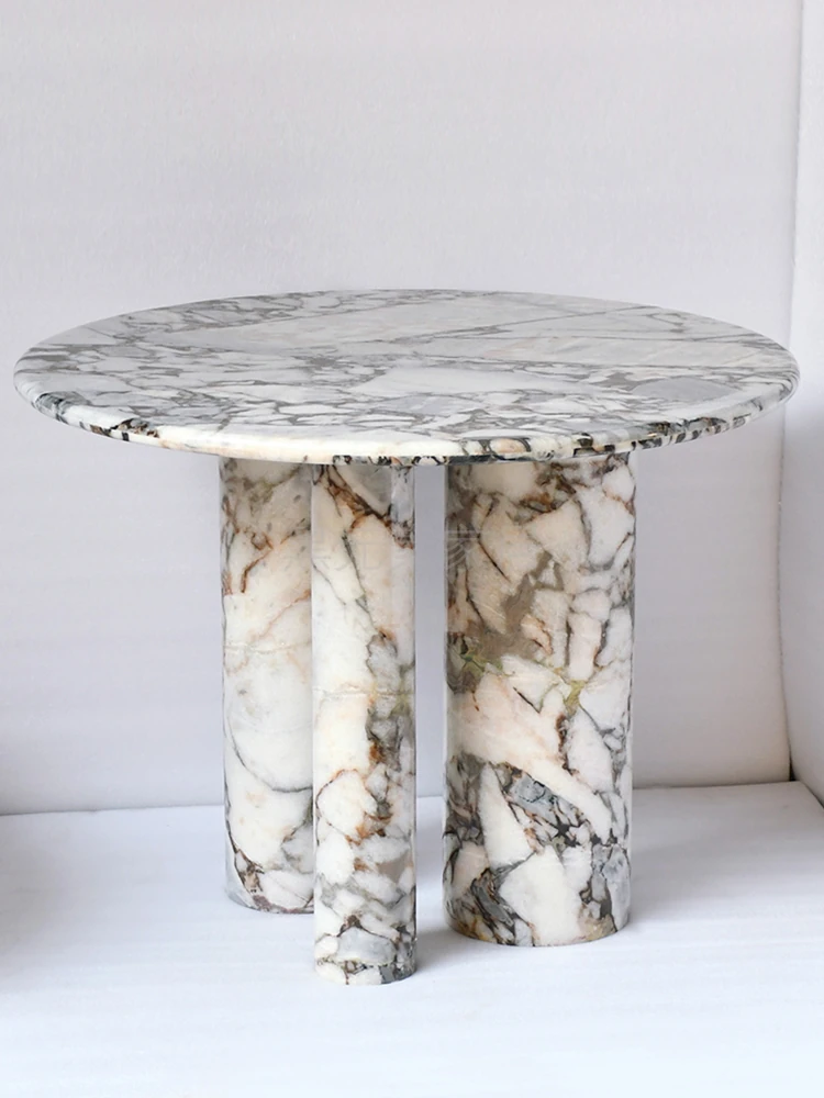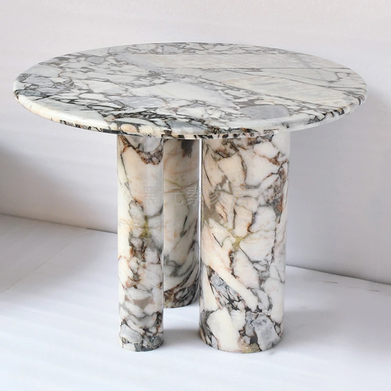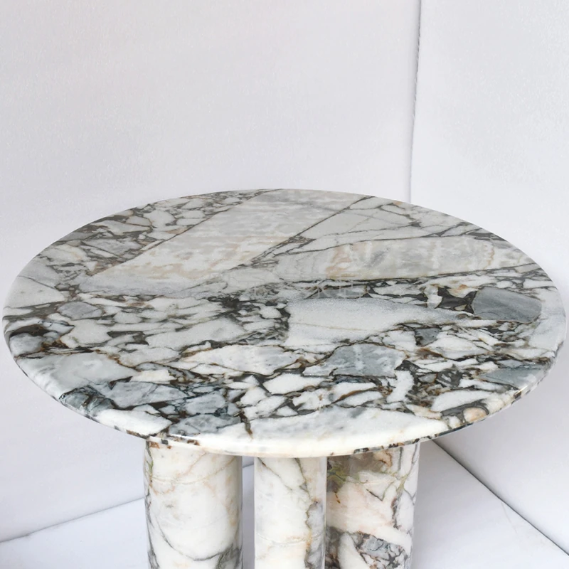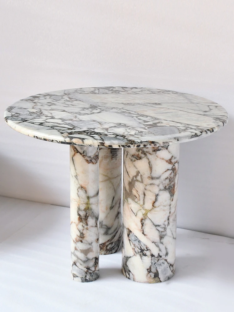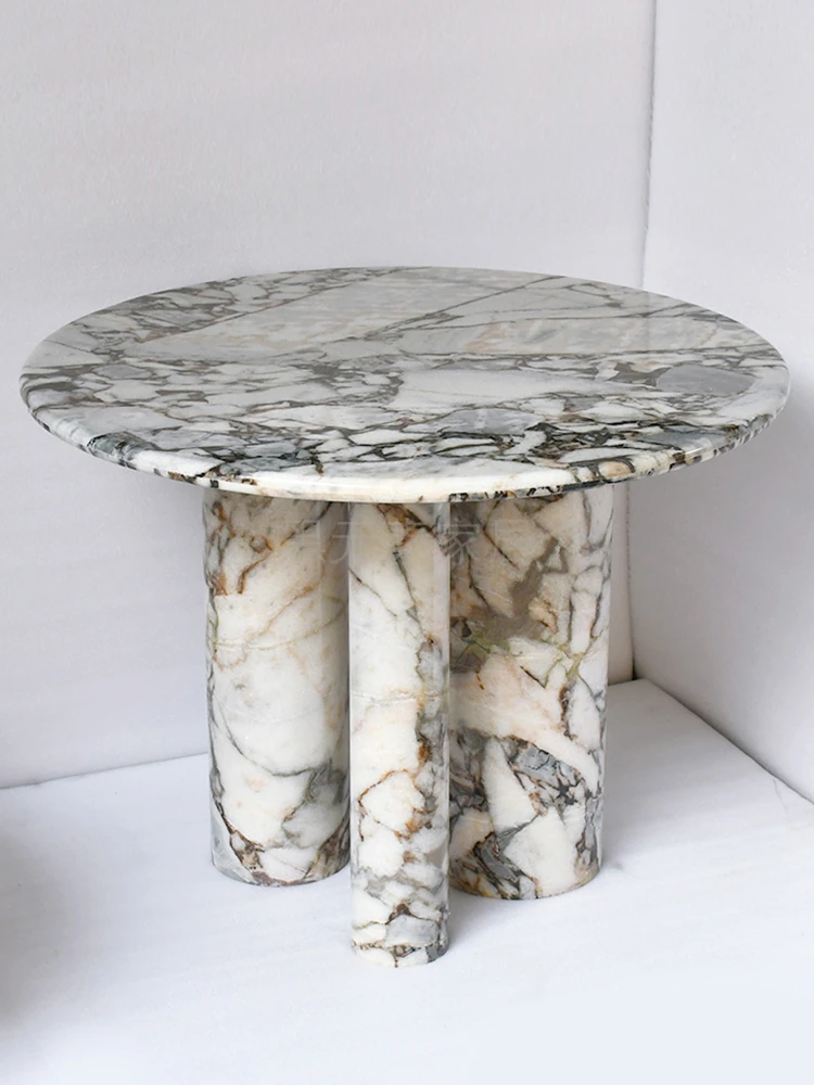 イタリアンミニマルデザインのオーシャンストーム大理石ダイニングテーブル - モダンでスタイリッシュなラウンドテーブル、小さなスペースにもぴったりの高級感あふれるインテリアを実現!
