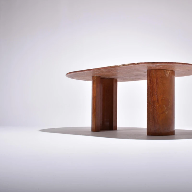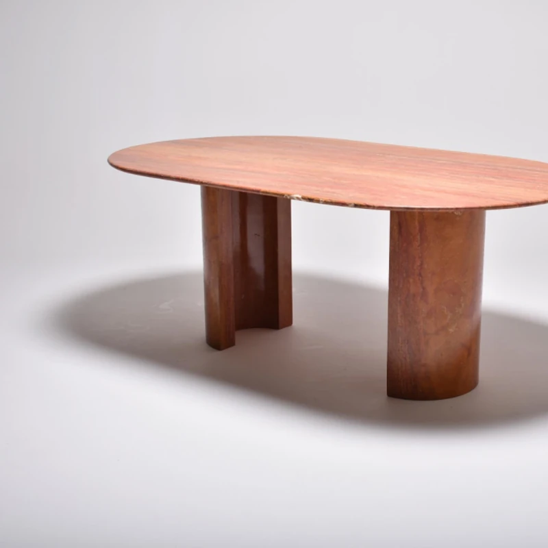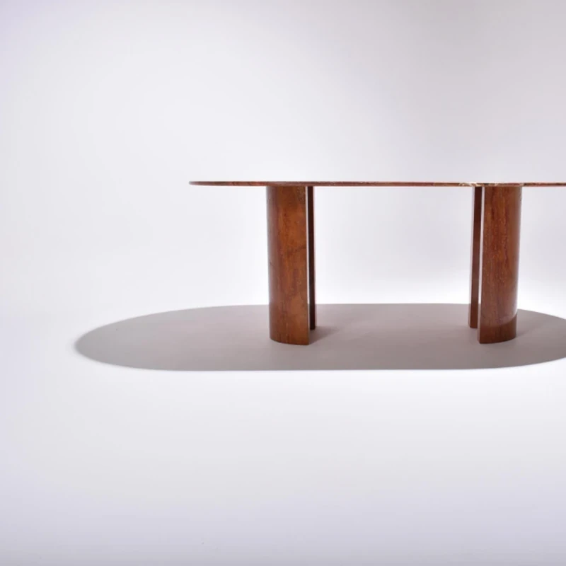イタリア産天然レッドオブシディアンのダイニングテーブル - ラグジュアリーなリビング・ダイニングにぴったり!北欧風のエレガントなオーバルデザインで、シンプルでありながら大気を醸し出します。ホテルのような上質な空間を演出!
