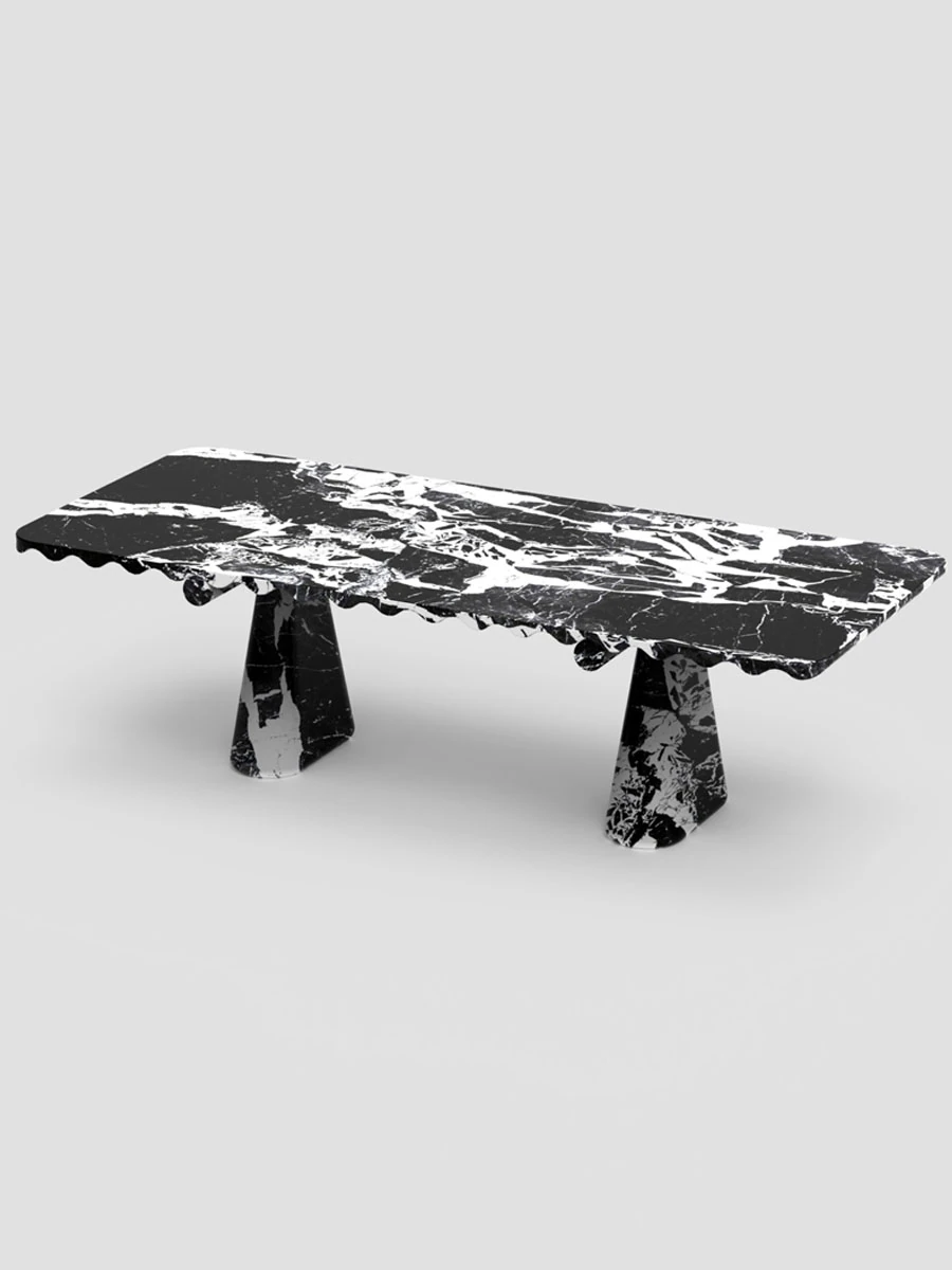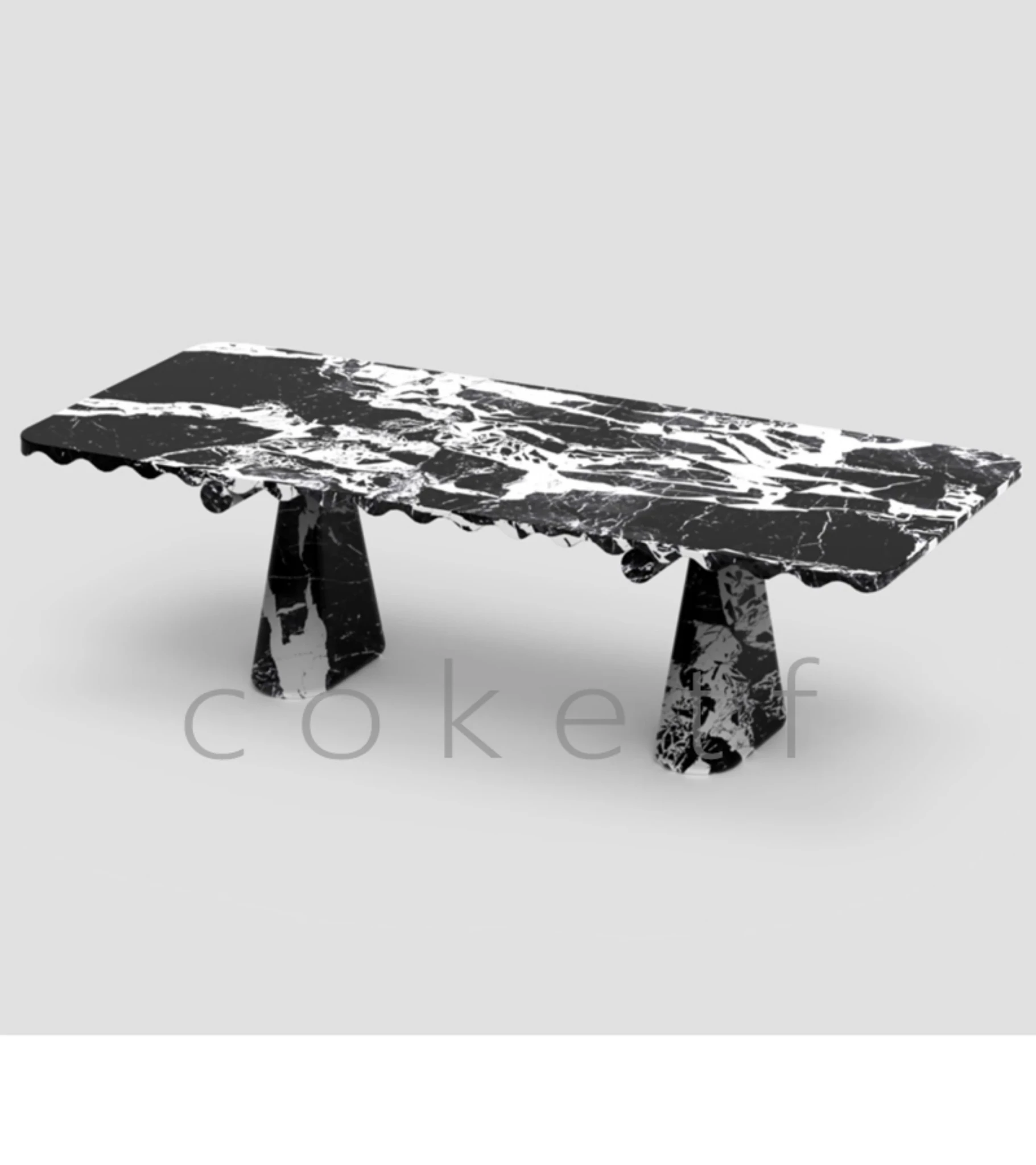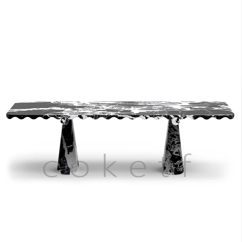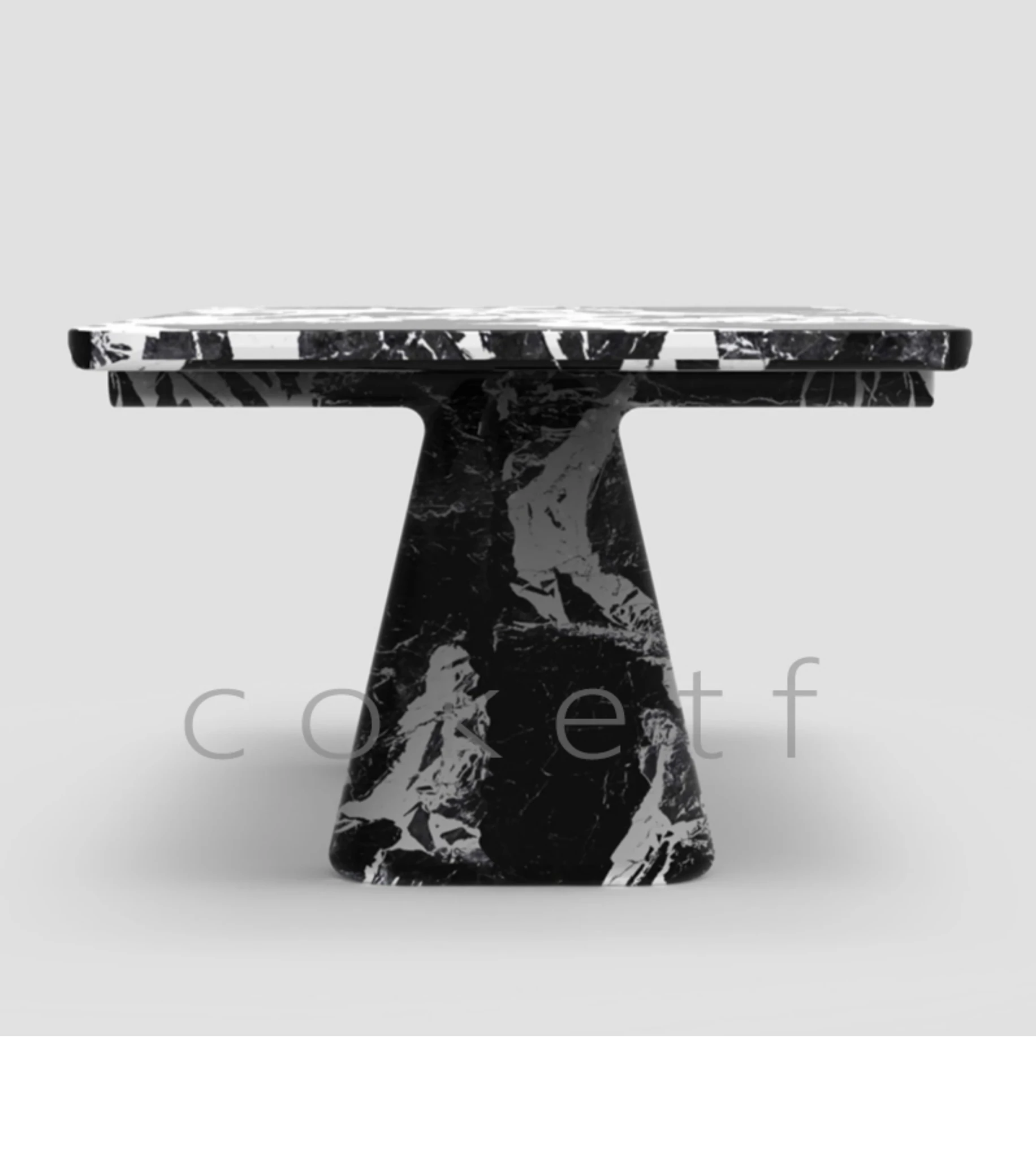 高級感あふれる大理石デザインの長方形ダイニングテーブル - 宝格丽スタイルの黒い天然石材を使用した、エレガントでスタイリッシュな家庭用食卓。あなたの食卓を特別な空間に変えます!