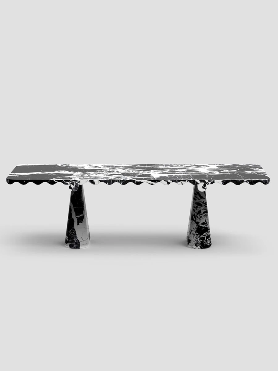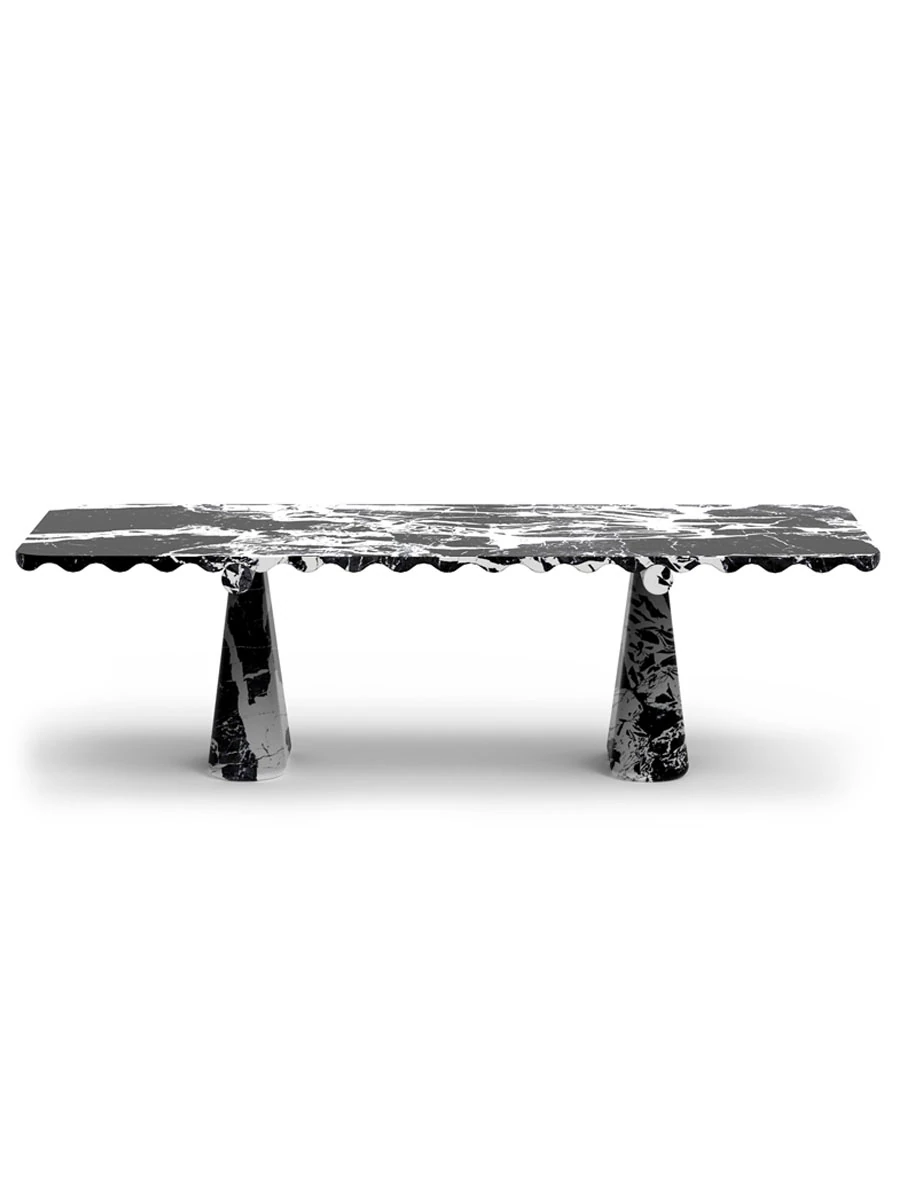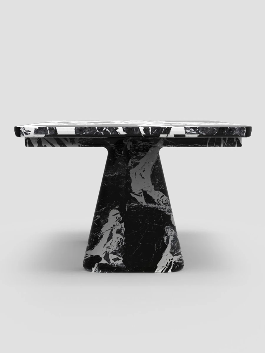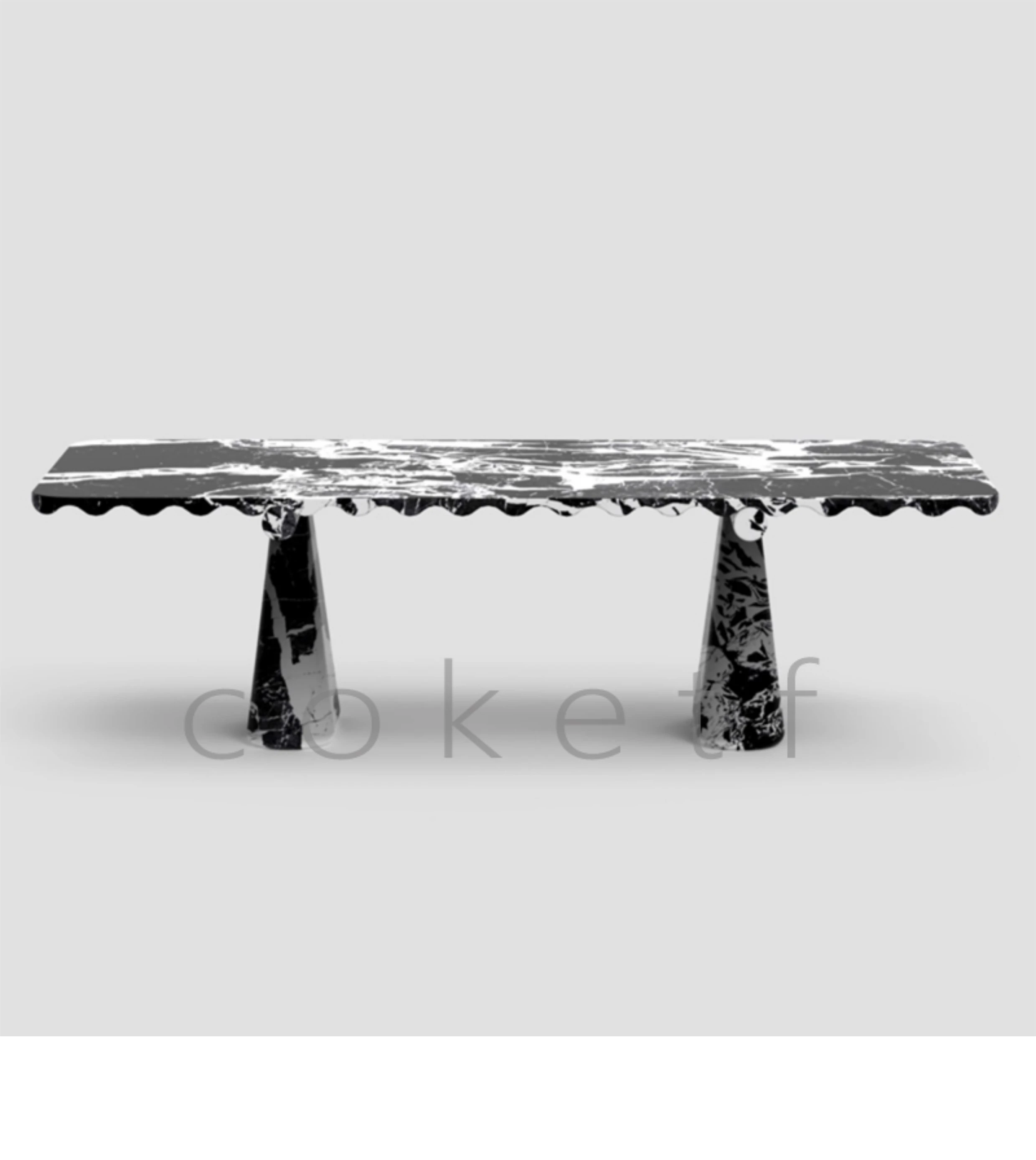 高級感あふれる大理石デザインの長方形ダイニングテーブル - 宝格丽スタイルの黒い天然石材を使用した、エレガントでスタイリッシュな家庭用食卓。あなたの食卓を特別な空間に変えます!