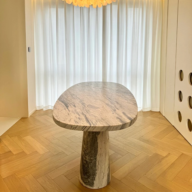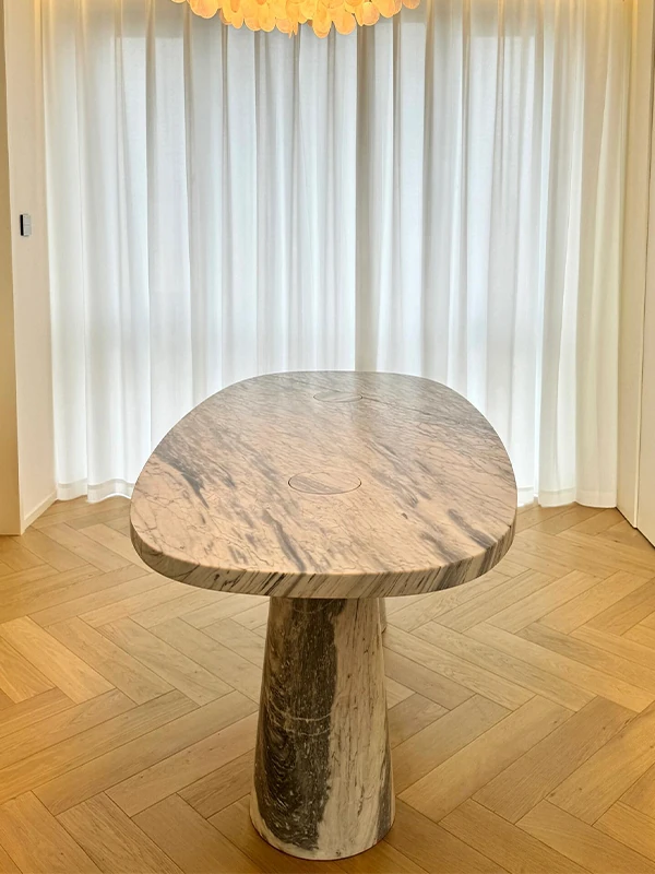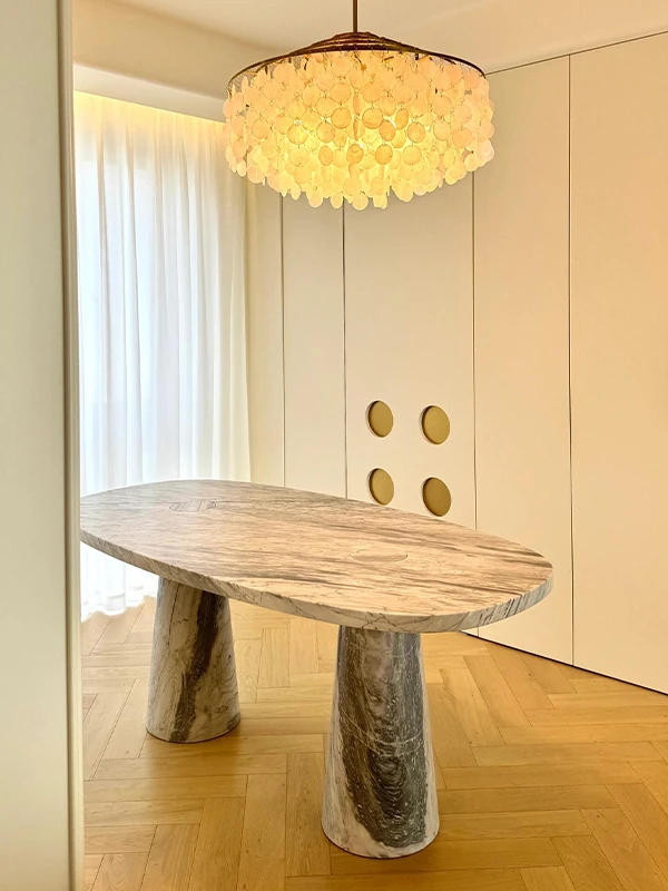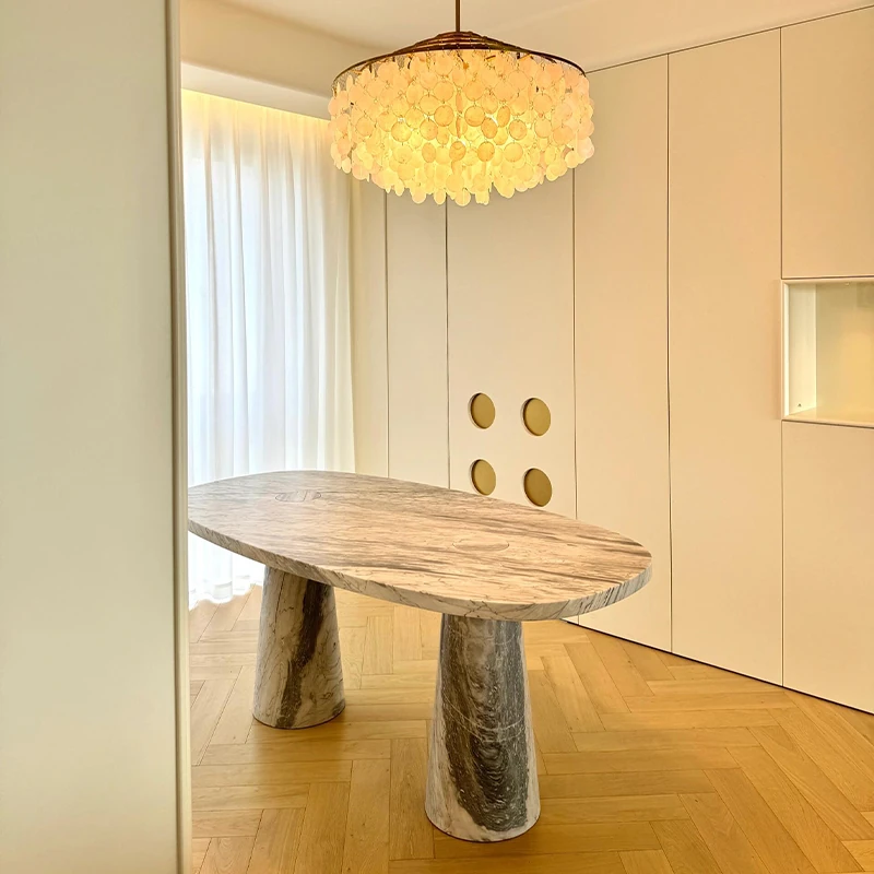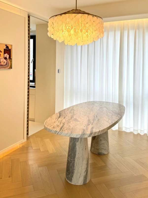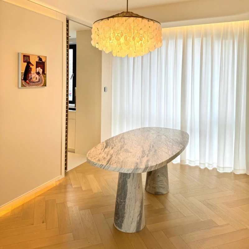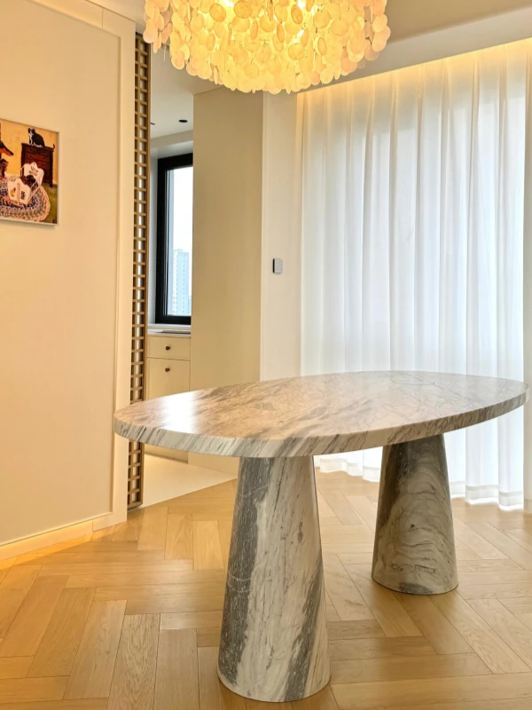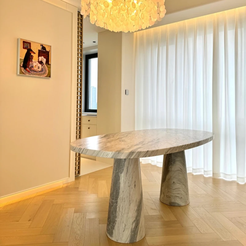 天然オーバル大理石ダイニングテーブル | イタリアンデザインのラグジュアリーな長方形テーブル | モダンでシンプルなスタイルで、食卓を華やかに演出します!