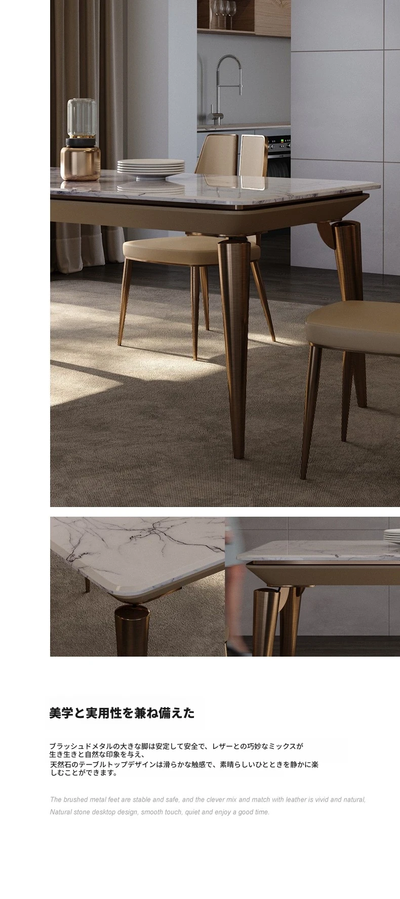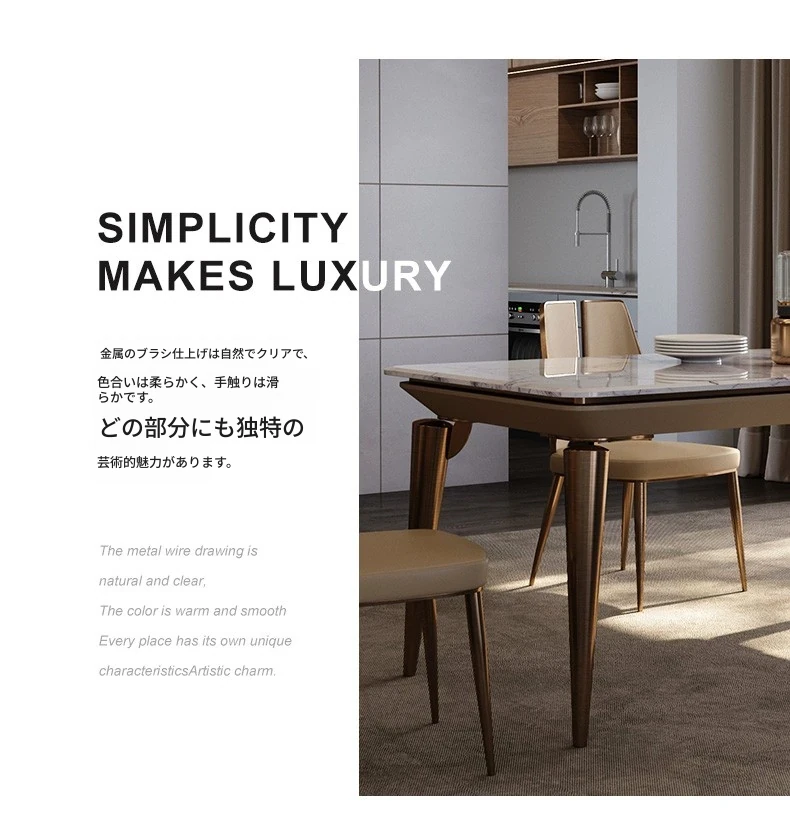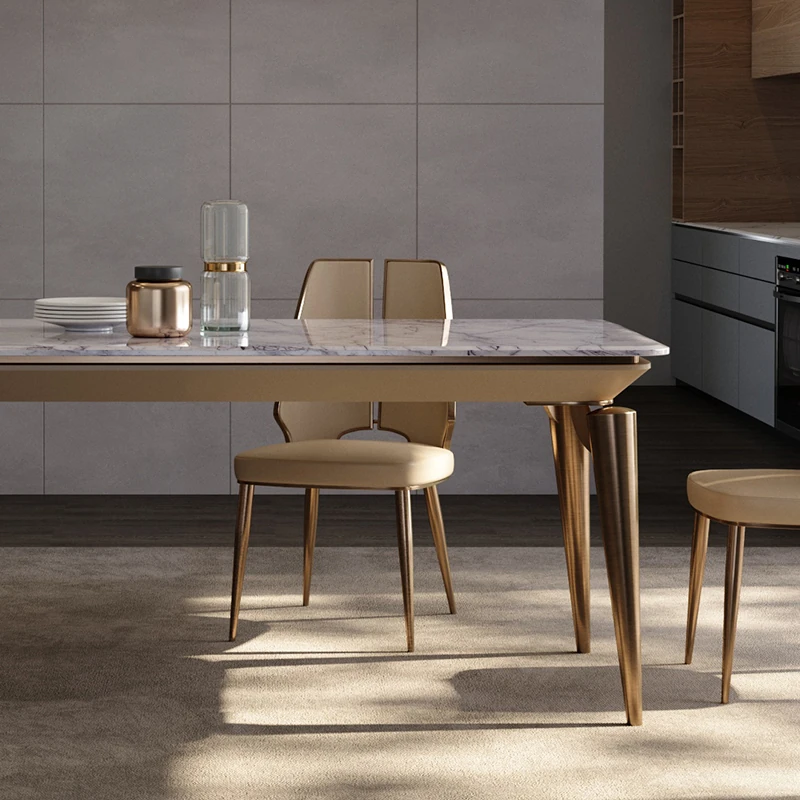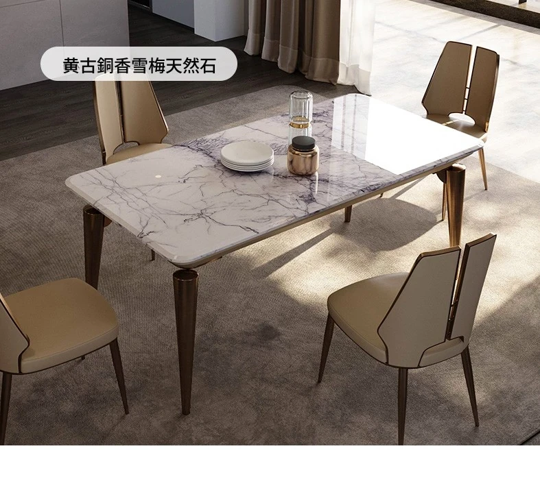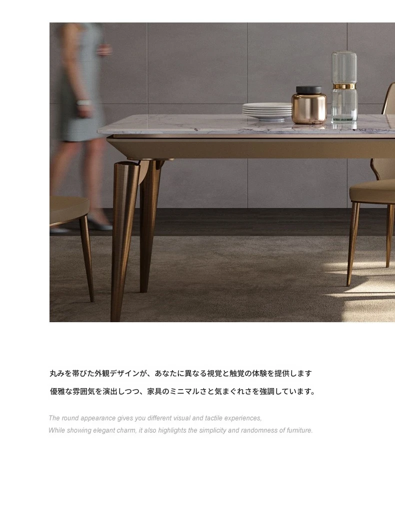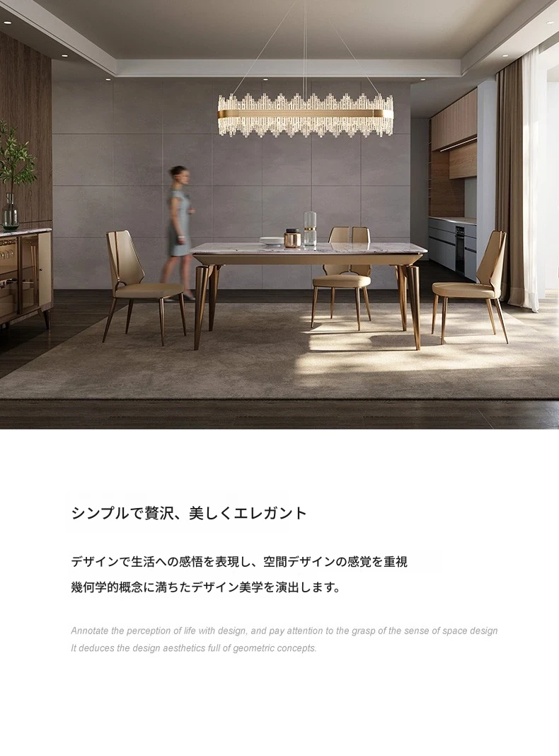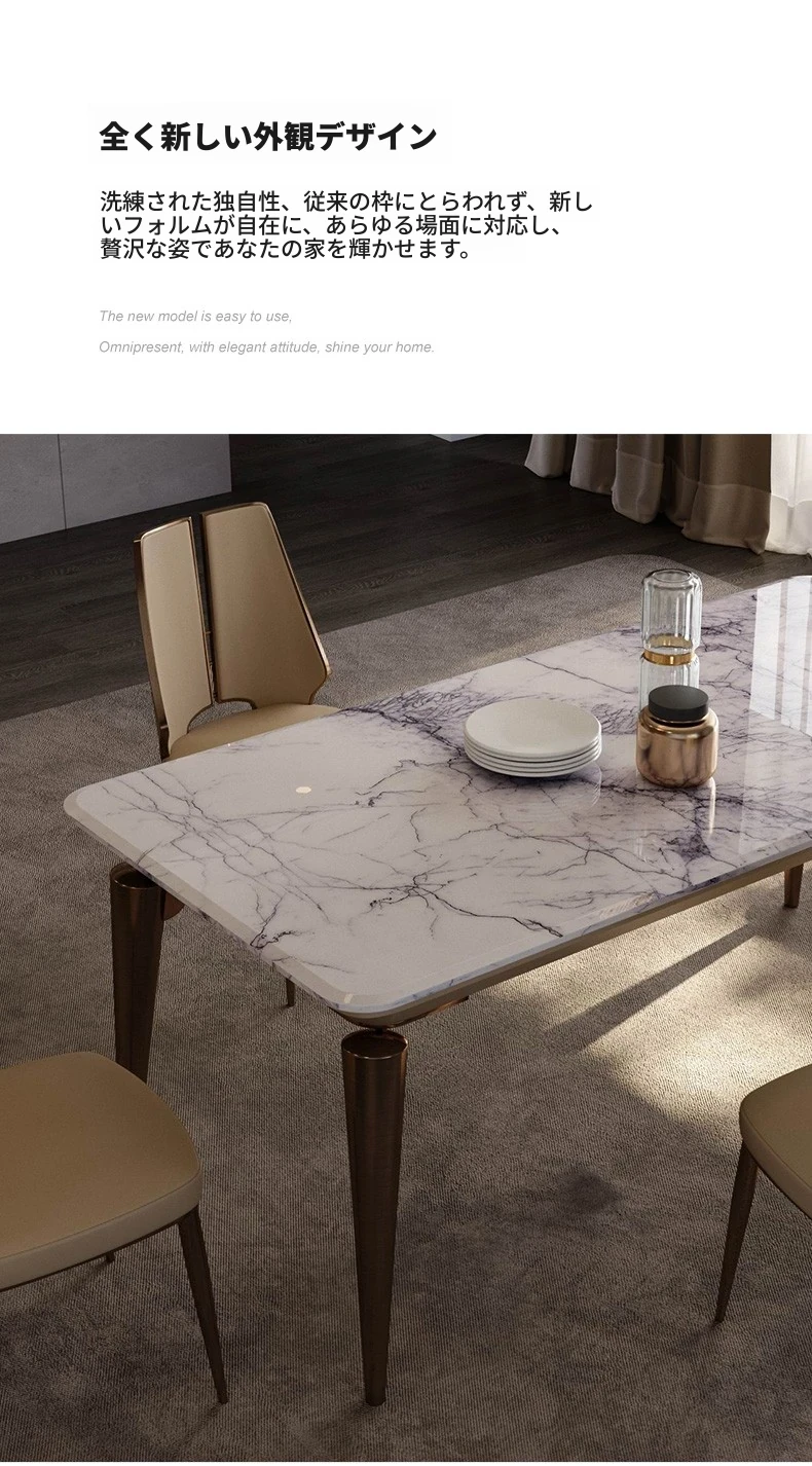 ラグジュアリー大理石ダイニングテーブル - ヴィラ向け高級デザインのロングテーブル&チェアセット!新作イタリアンミニマルスタイルで、洗練された食事空間を演出します。