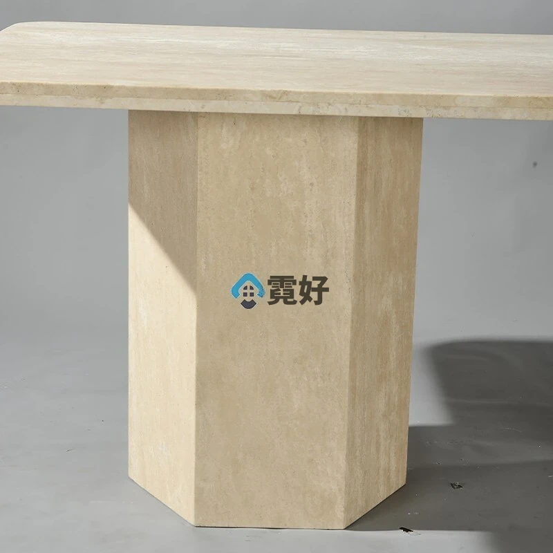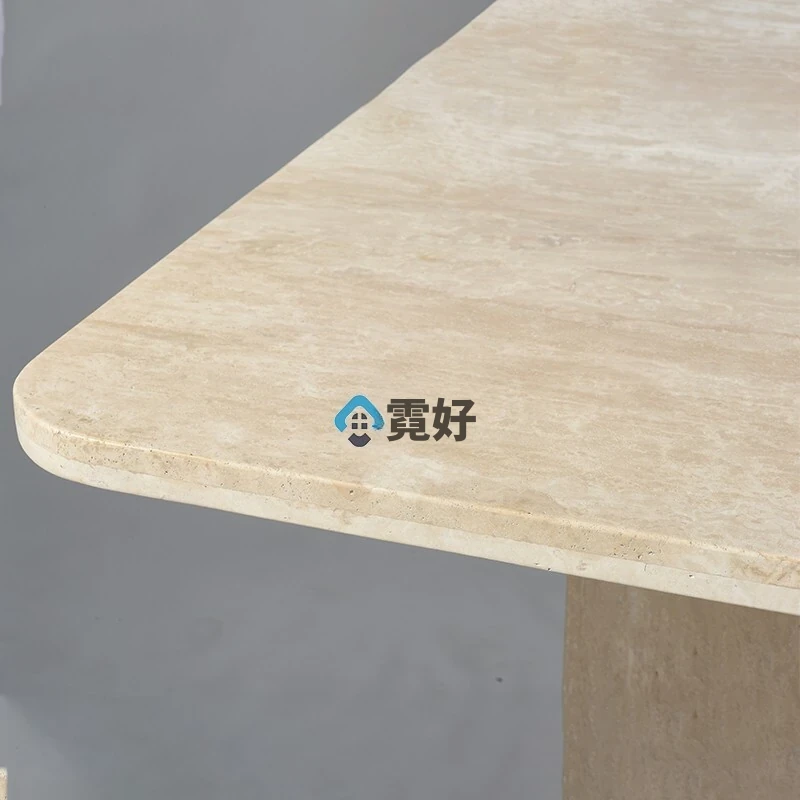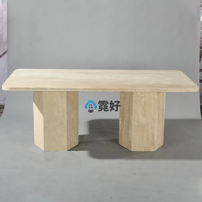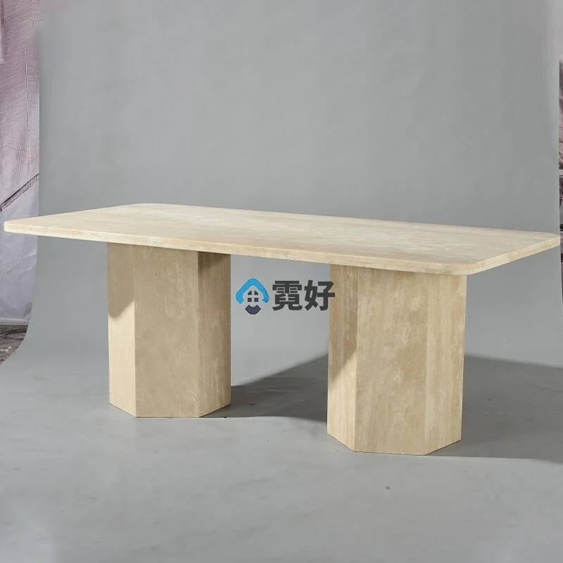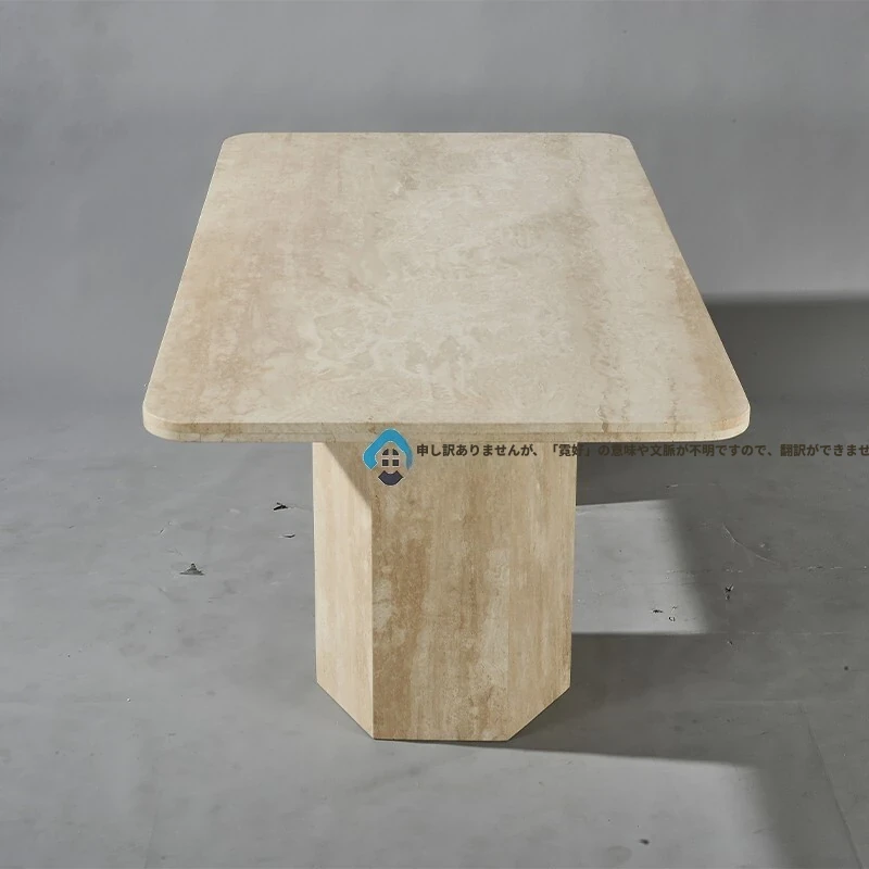 高級大理石ダイニングテーブル|天然洞石使用の長方形テーブル|侘び寂びスタイル|家庭用に最適なクリームカラーの食卓|エレガントな空間を演出します!