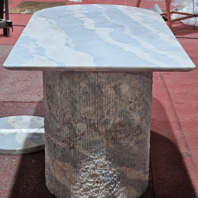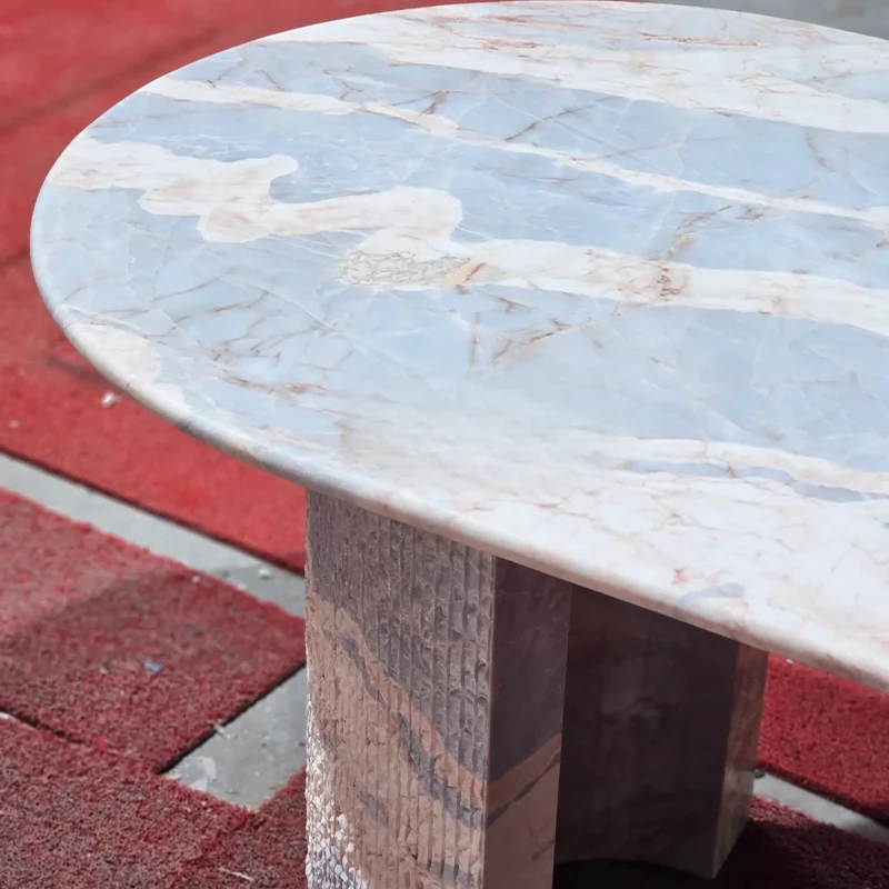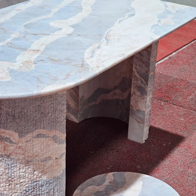大理石の半楕円形モダンカジュアルダイニングテーブル - 壁に寄せて置ける北欧風の軽やかなラグジュアリー。食事をスタイリッシュに楽しむ新しい空間を演出します!