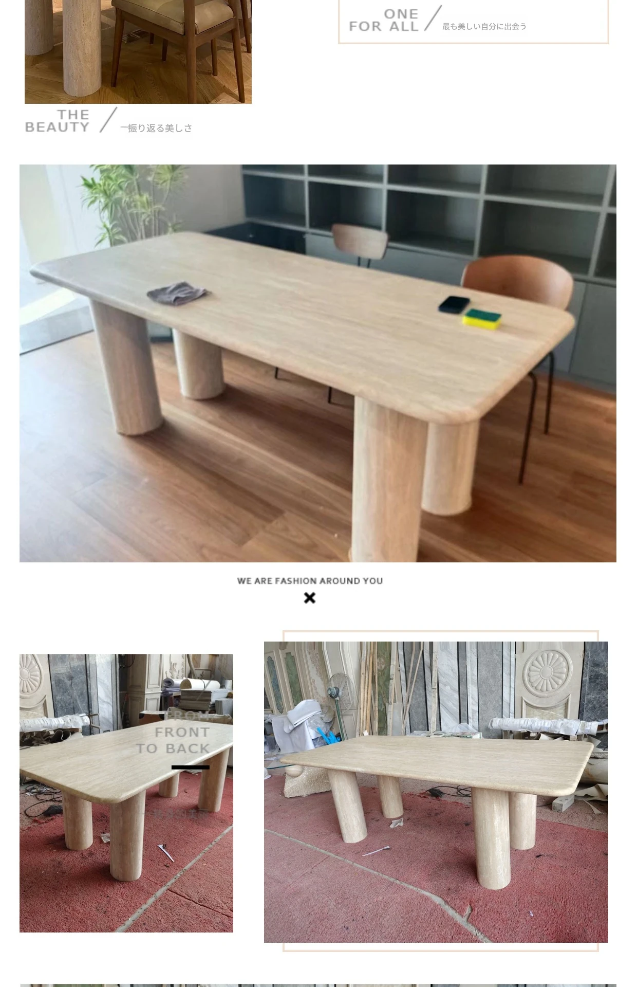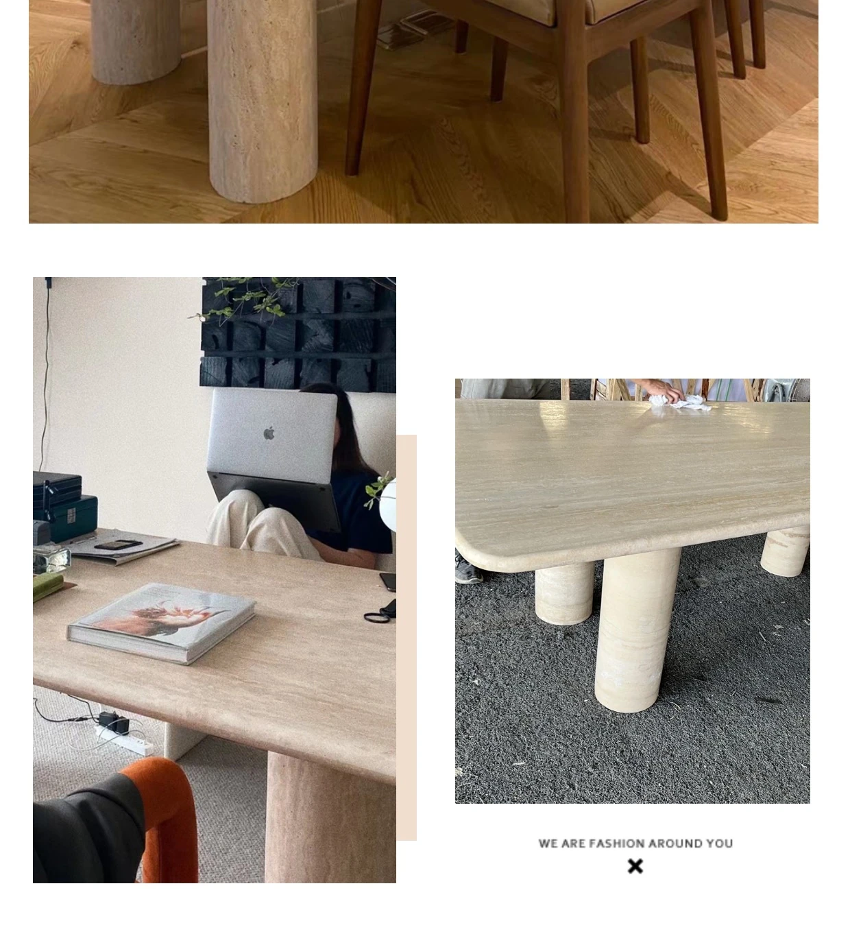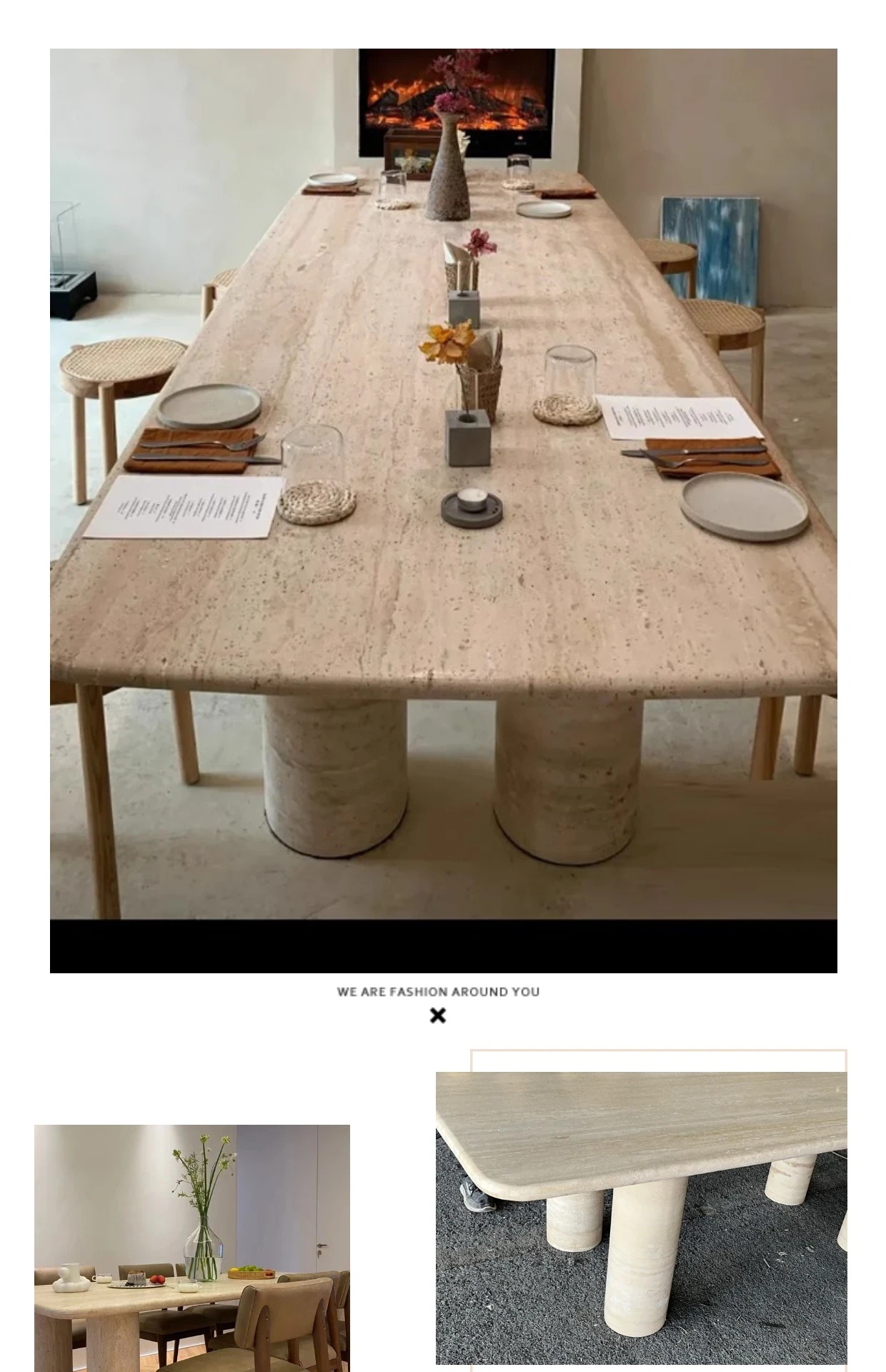 天然洞石のダイニングテーブル - イタリアンミニマリズムの洗練されたデザイン、別荘やホテルにぴったり!インフルエンサー必見のスタイリッシュなロングテーブルで、シンプルながらも高級感あふれる空間を演出します。