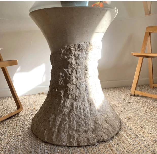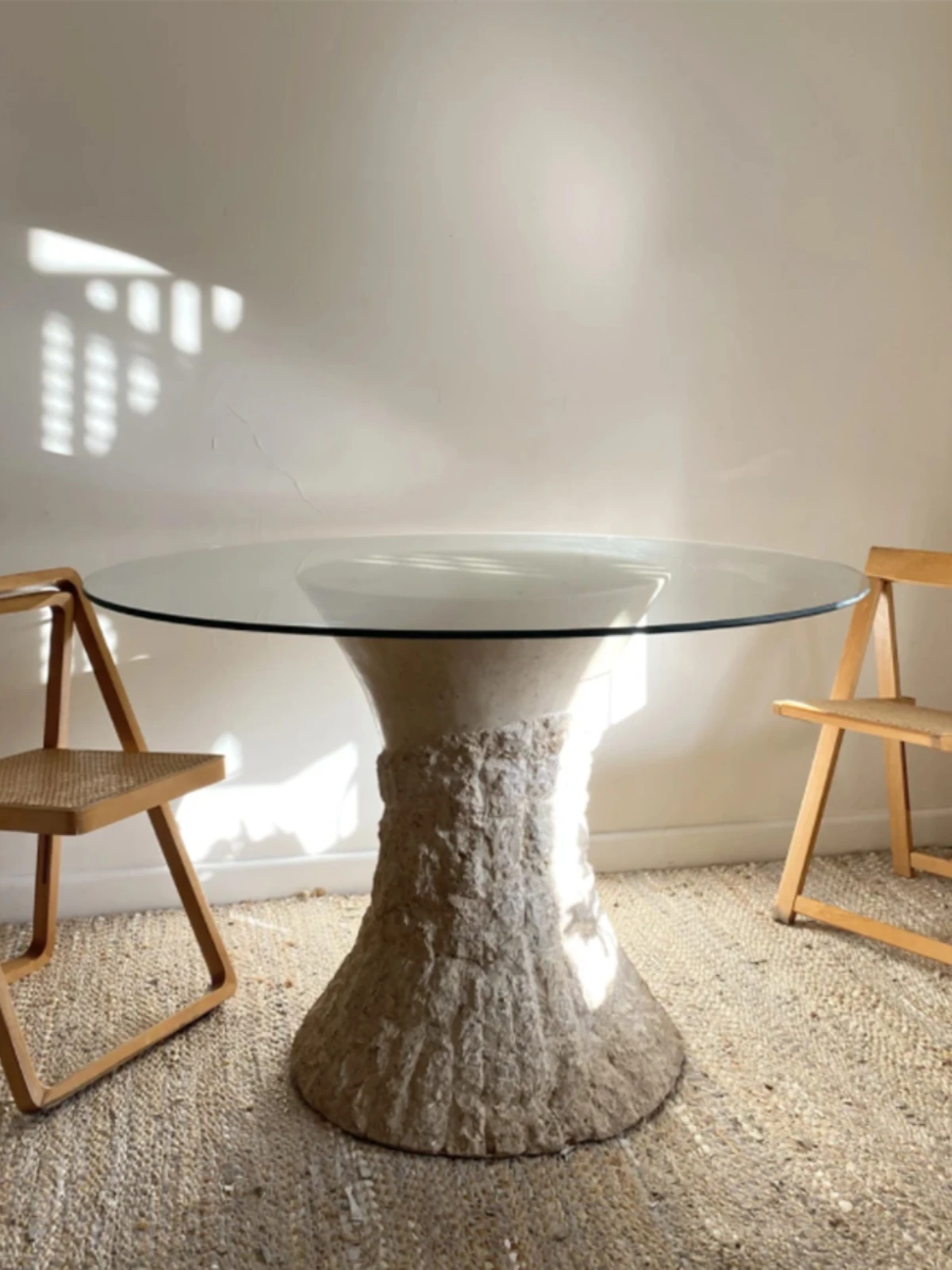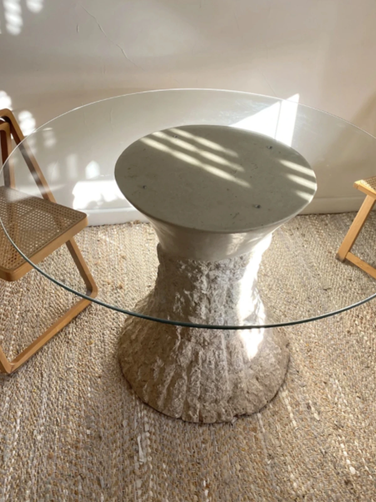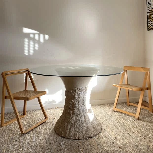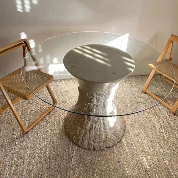 天然石の洗練されたラウンドダイニングテーブル|モダンでシンプルなデザイン|強化ガラスと北欧スタイルの大理石を使用|軽奢な雰囲気でおしゃれな食卓を演出!