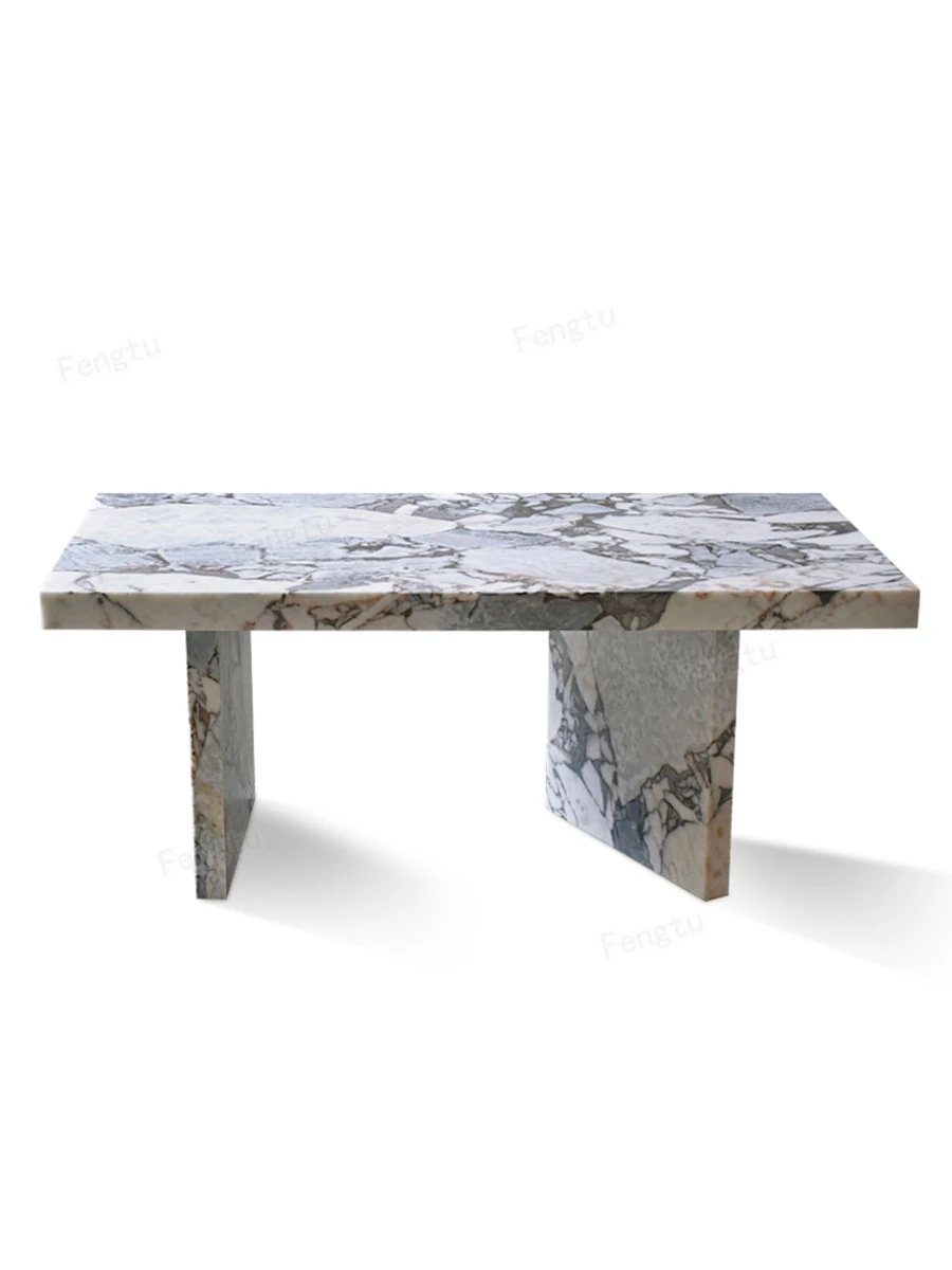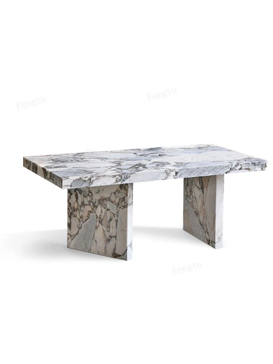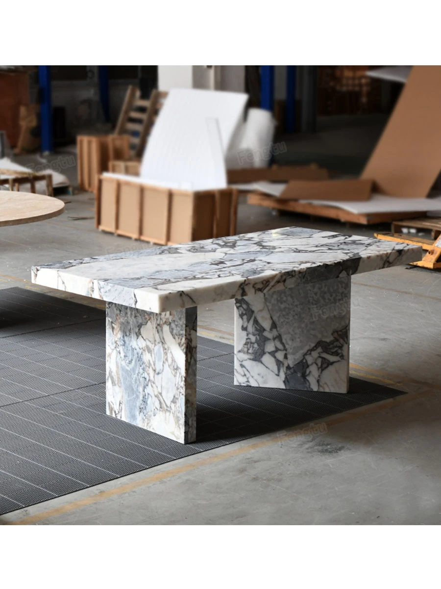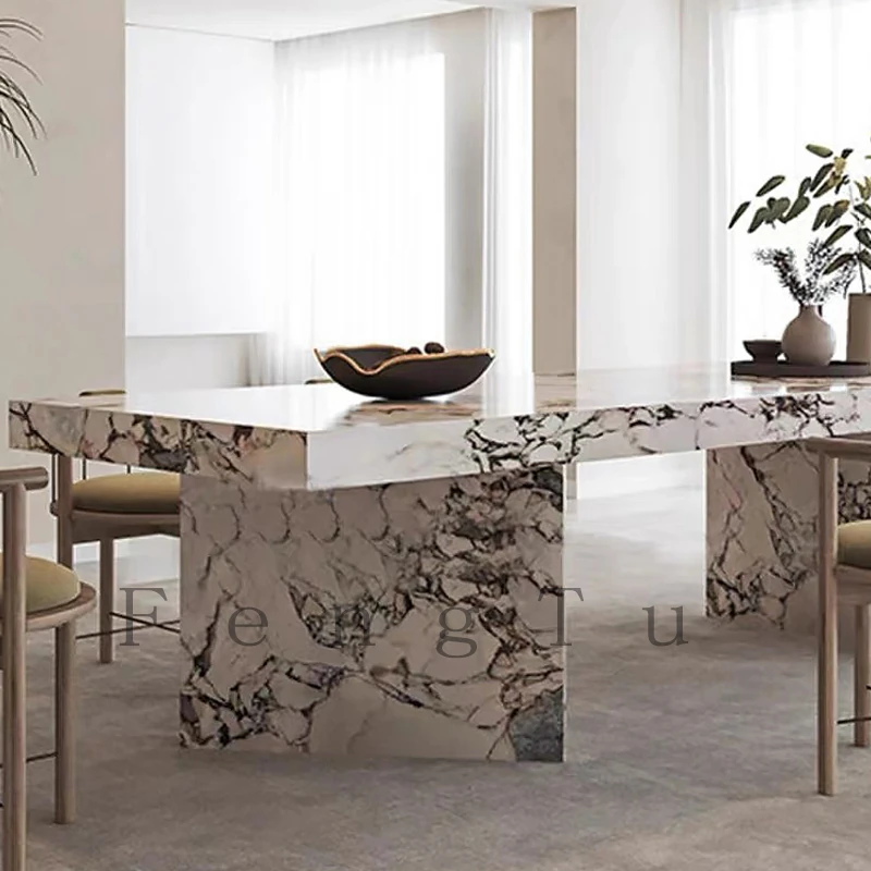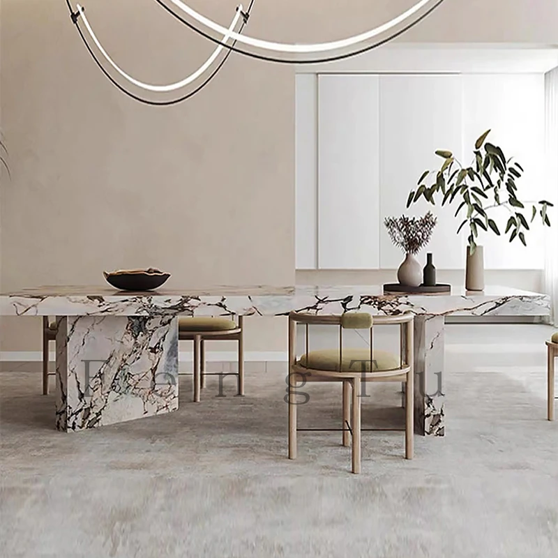 北欧スタイルの洗練された天然大理石ダイニングテーブル - モダンミニマリズム設計、小型住宅に最適な長方形テーブル!おしゃれな食卓で、毎日の食事を特別なひとときに。