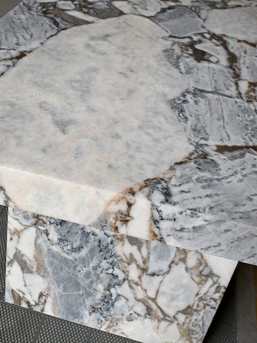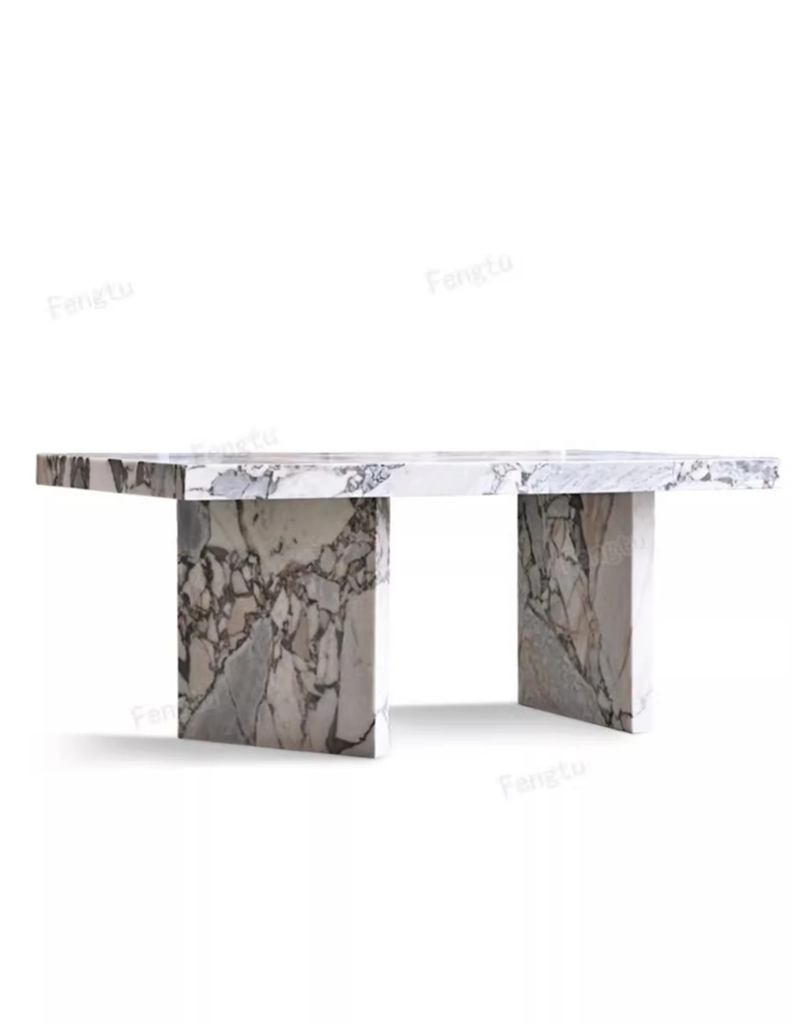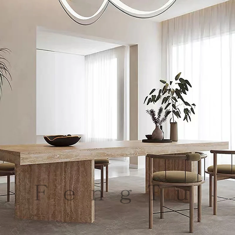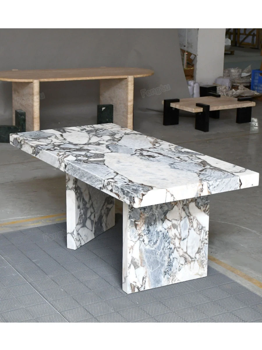 北欧スタイルの洗練された天然大理石ダイニングテーブル - モダンミニマリズム設計、小型住宅に最適な長方形テーブル!おしゃれな食卓で、毎日の食事を特別なひとときに。