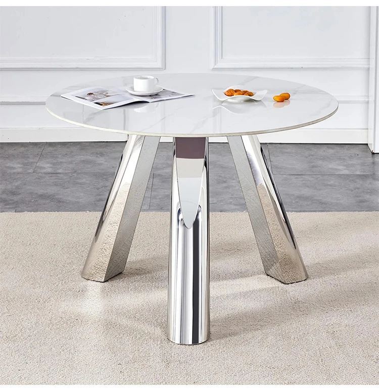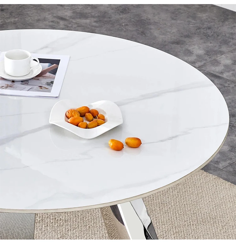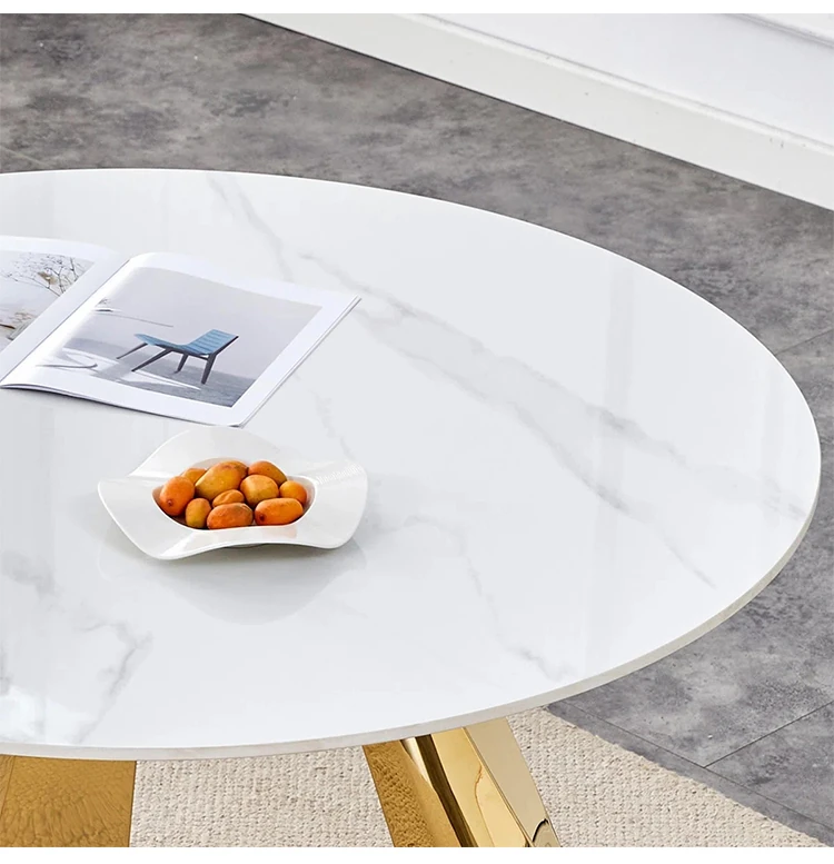 北欧スタイルの天然大理石ダイニングテーブル|現代的でシンプルなデザイン|ラグジュアリーな高級感|アートな丸型テーブルで、あなたの食卓を特別な空間に演出!