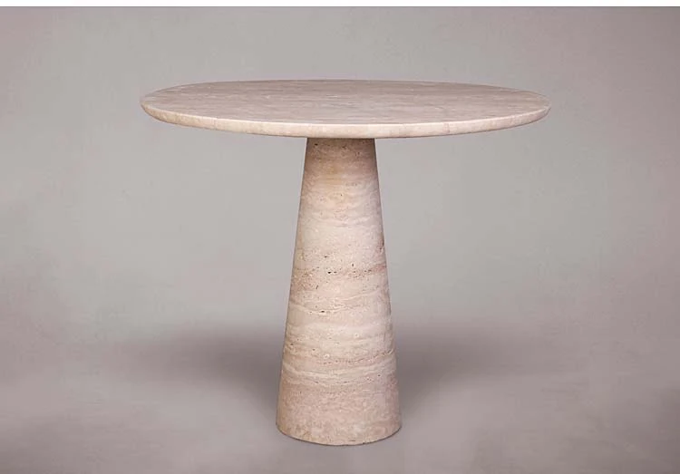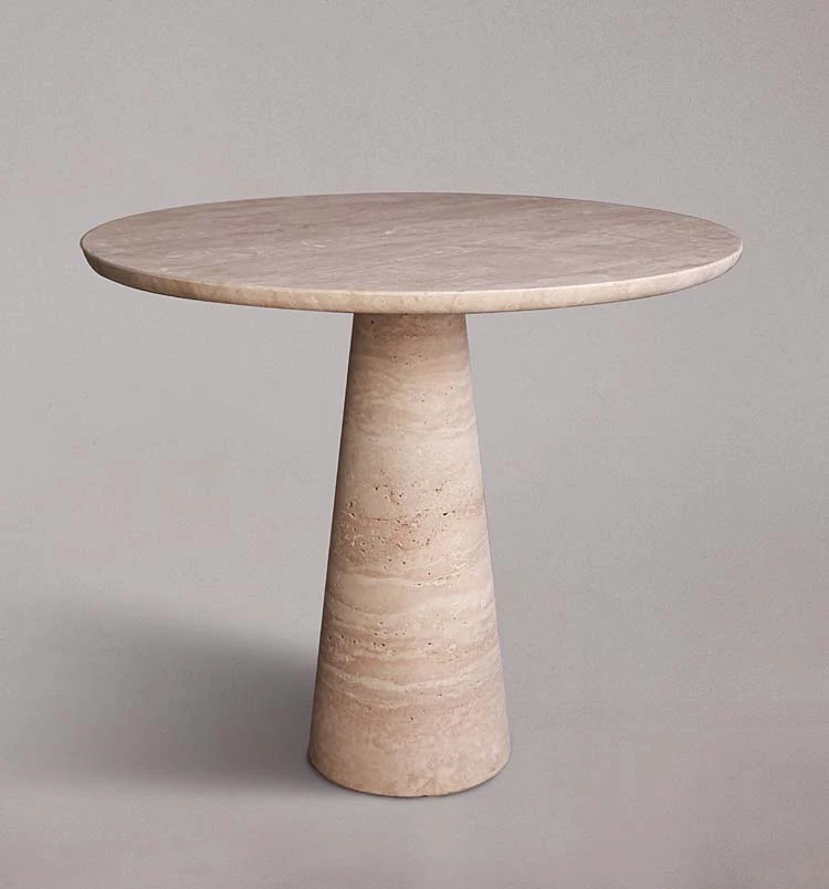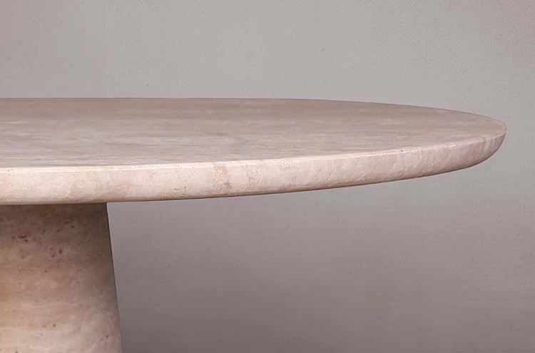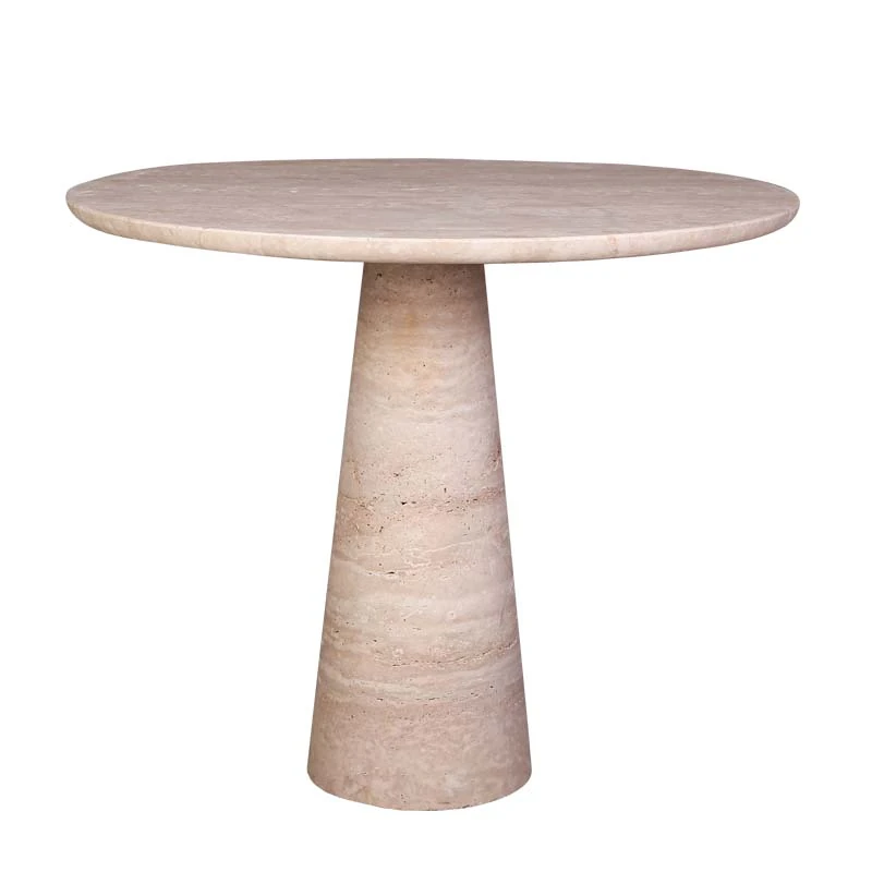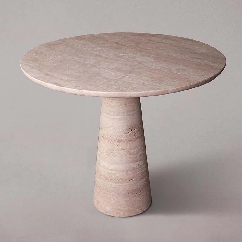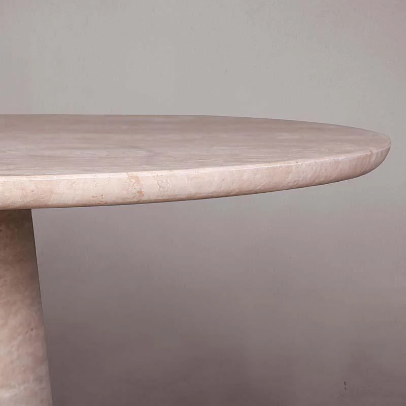 北欧スタイルの天然洞石ダイニングテーブル - 丸型大理石、クリエイティブで軽やかな高級感、モダンでシンプルなデザイン、広々とした豪邸にぴったりの家用ラウンドテーブル!