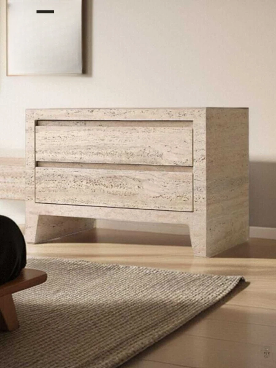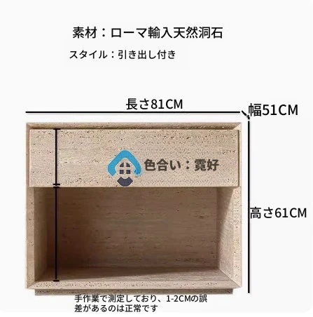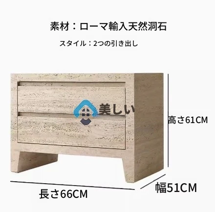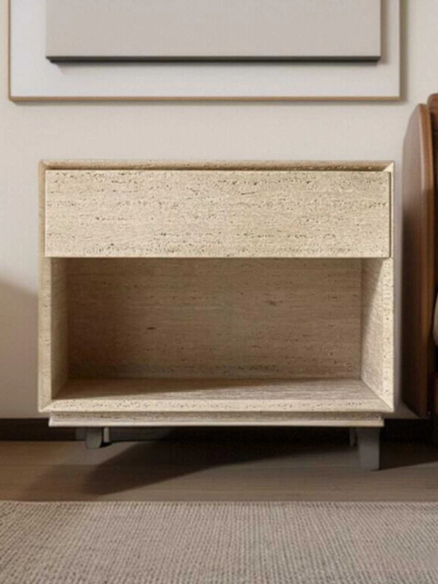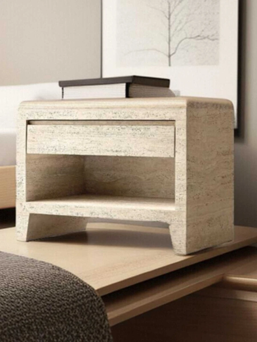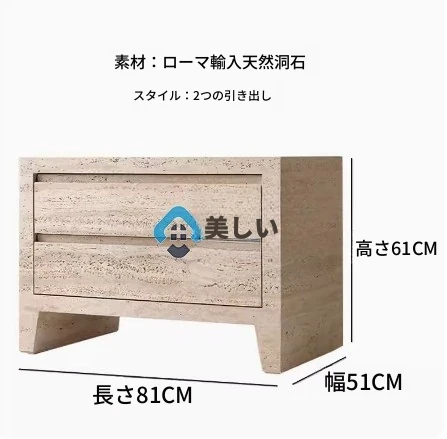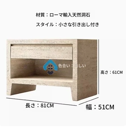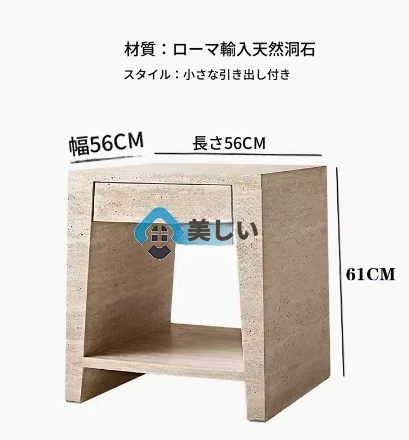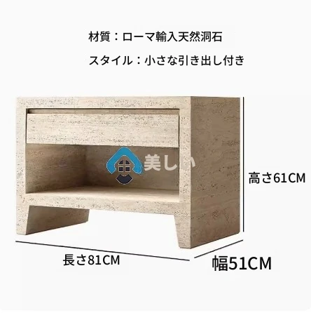 北欧風の天然洞石を使用した引き出し付きナイトテーブル|リビングにぴったりなクリエイティブアートソファサイドテーブル|寝室に最適な大理石コーナーテーブル