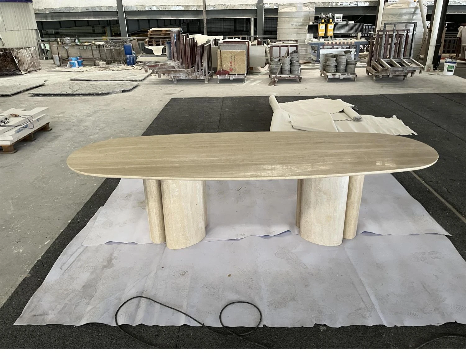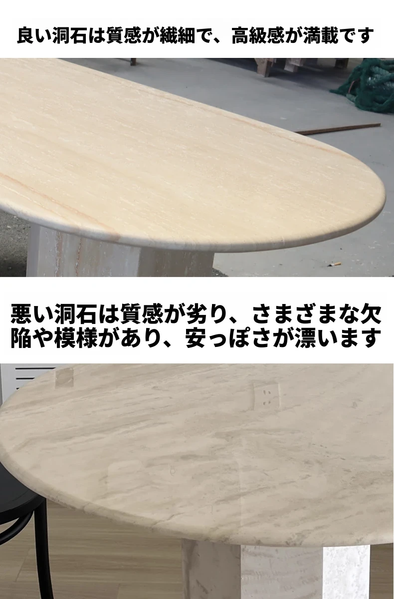 【大石】侘寂風の天然洞石大理石テーブル - モダンな別荘やサンプルルームにぴったりのロングダイニングテーブル。洗練されたデザインで、贅沢な食事体験を演出します。